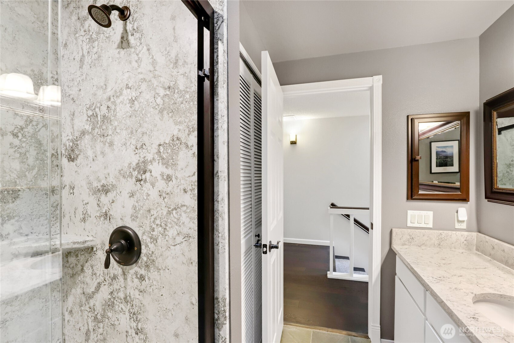 Light and bright, this 2-bedroom condo lives large with stunning Puget Sound views and an inviting, open layout. The spacious living area is anchored by a cozy electric fireplace and flows seamlessly into the kitchen, featuring granite countertops, stainless steel appliances, and ample prep space. Large windows bring in natural light, enhancing the warm and welcoming feel throughout. Step out onto the private balcony to relax and take in the views. An individual garage provides secure parking and extra storage. Ideally located near parks, scenic trails, and everyday amenities, this home offers a perfect blend of comfort, convenience, and Northwest charm.