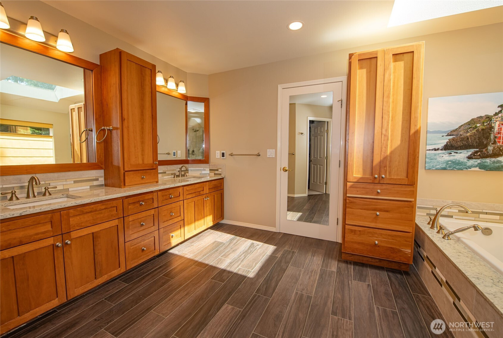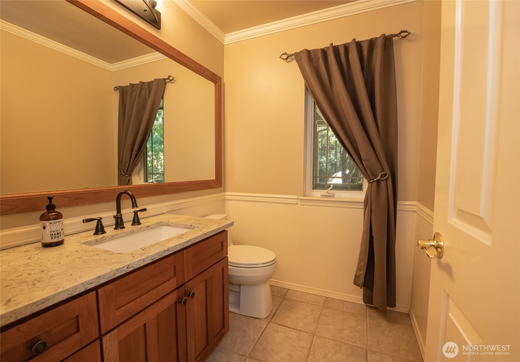 Where form meets function. Beautiful Chaffey built home nestled on a shy three acre parcel with private greenspace and territorial views. Comforting design offers a practical flow from formal living room w/vaulted ceilings, a formal dining room with wainscoting, kitchen w/full stainless appliance package and solid cherry cabinets, cozy family room w/gas fireplace, and more! A lower level office adds a touch of character w/exposed wood paneling. There is ample room upstairs w/three bedrooms and a generous-sized bonus room. Fully updated bathrooms w/duel vanities, heated floors, bidets, as well as a large, custom designed master closet. New roof and skylights replaced in 2024 round out the freshly painted exterior. Pride in ownership defined.