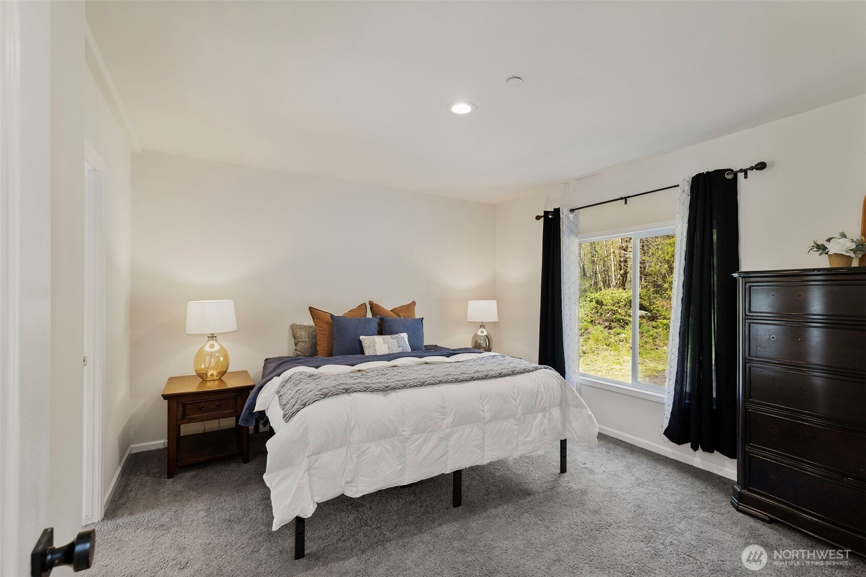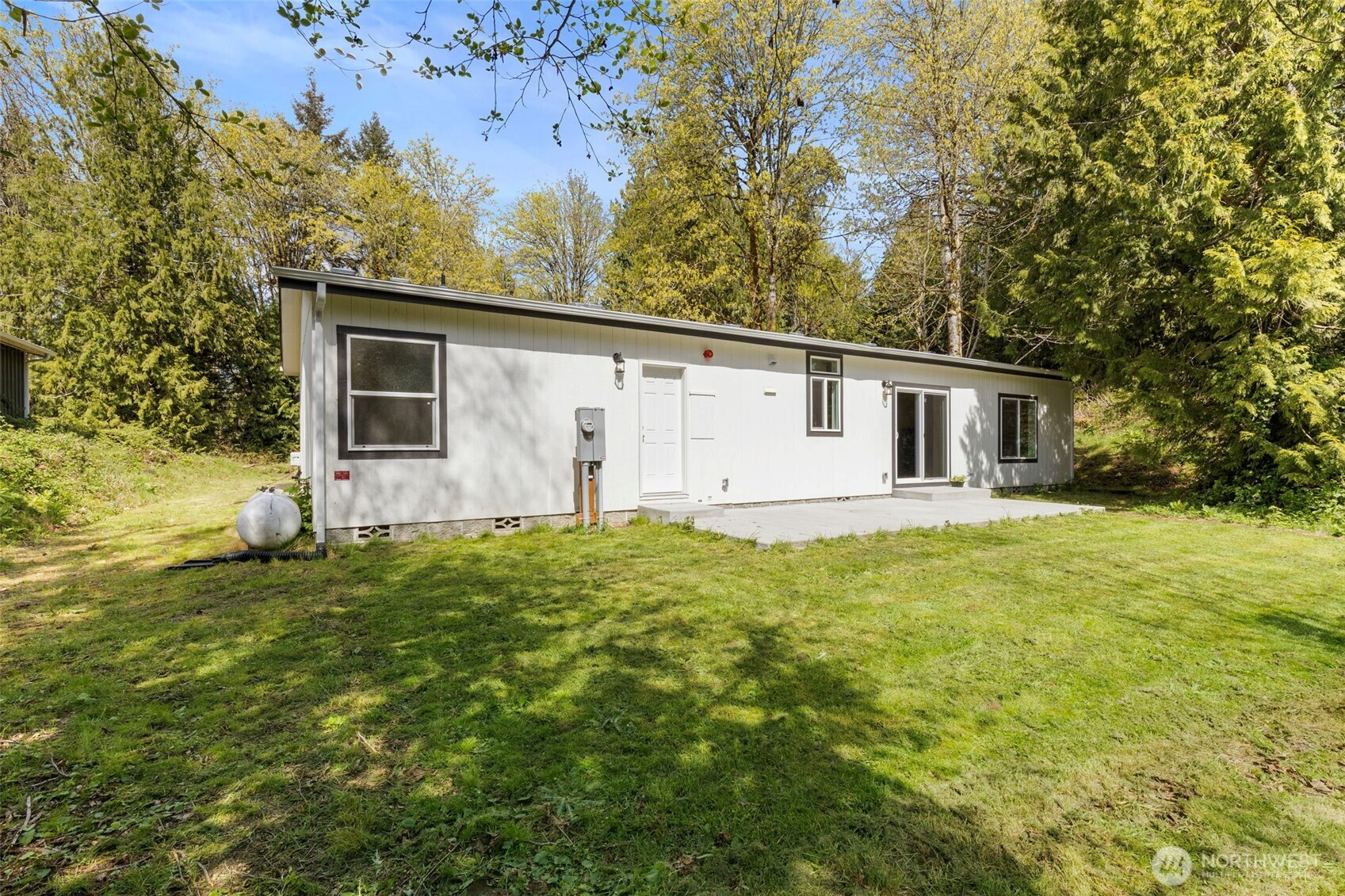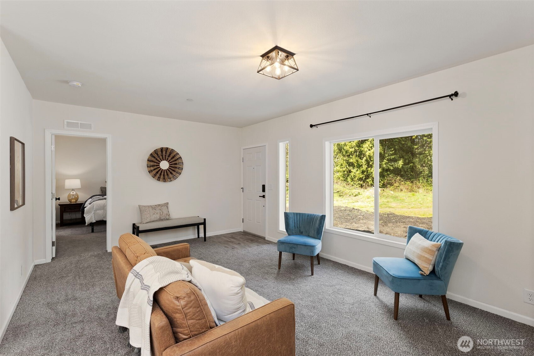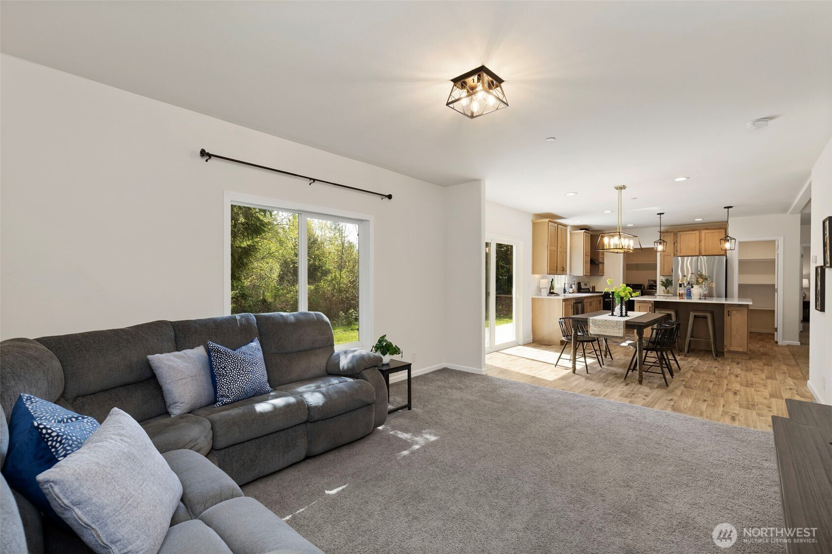 Nearly-new 1,566 sq ft home set on 2.5 peaceful acres, offering space, privacy, and modern finishes just minutes from Kingston. This 3-bedroom, 1.75-bath home features an open layout with elevated finishes including stainless steel appliances, quartz countertops, contemporary lighting, and a huge pantry for exceptional storage. Two separate living areas provide flexibility for relaxing, entertaining, or working from home. The primary suite is privately situated on the opposite side of the home from the two guest bedrooms, offering added separation and comfort. The property is well-suited for those needing space for hobbies or equipment, highlighted by a 36x36, 1,296 sq ft insulated and powered 3-car garage or workshop with 200 amp service, plus a 12x12 shed and ample RV or boat parking. Enjoy the balance of a quiet, rural setting with convenient access to Kingston ferries including the fast ferry to Seattle, schools, restaurants, beaches, and trails. No HOA. A versatile property with room to live, work, and play!