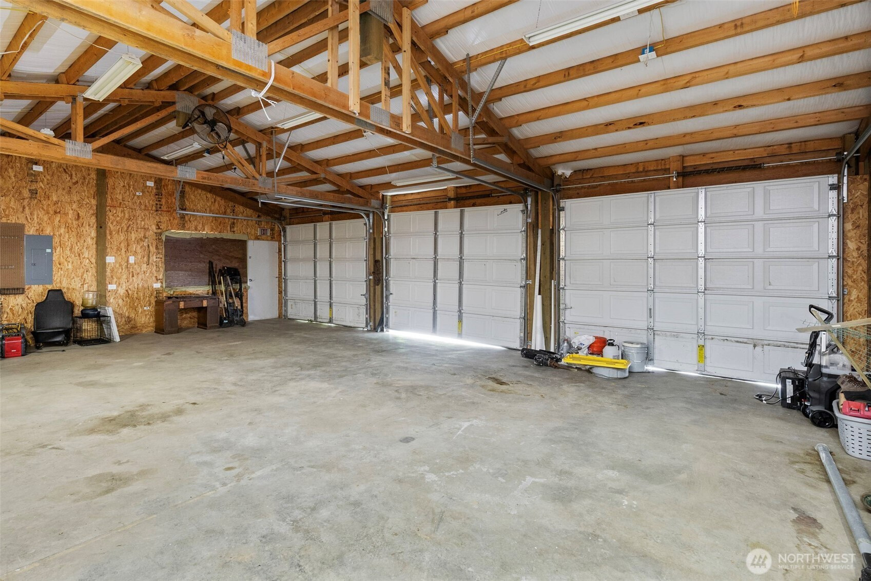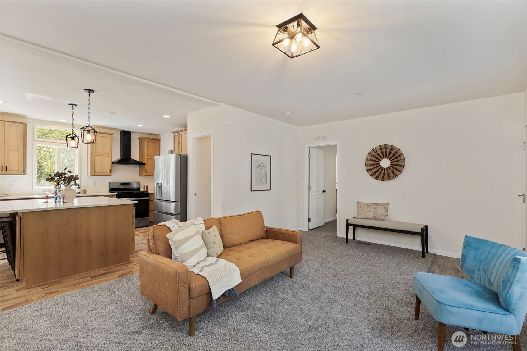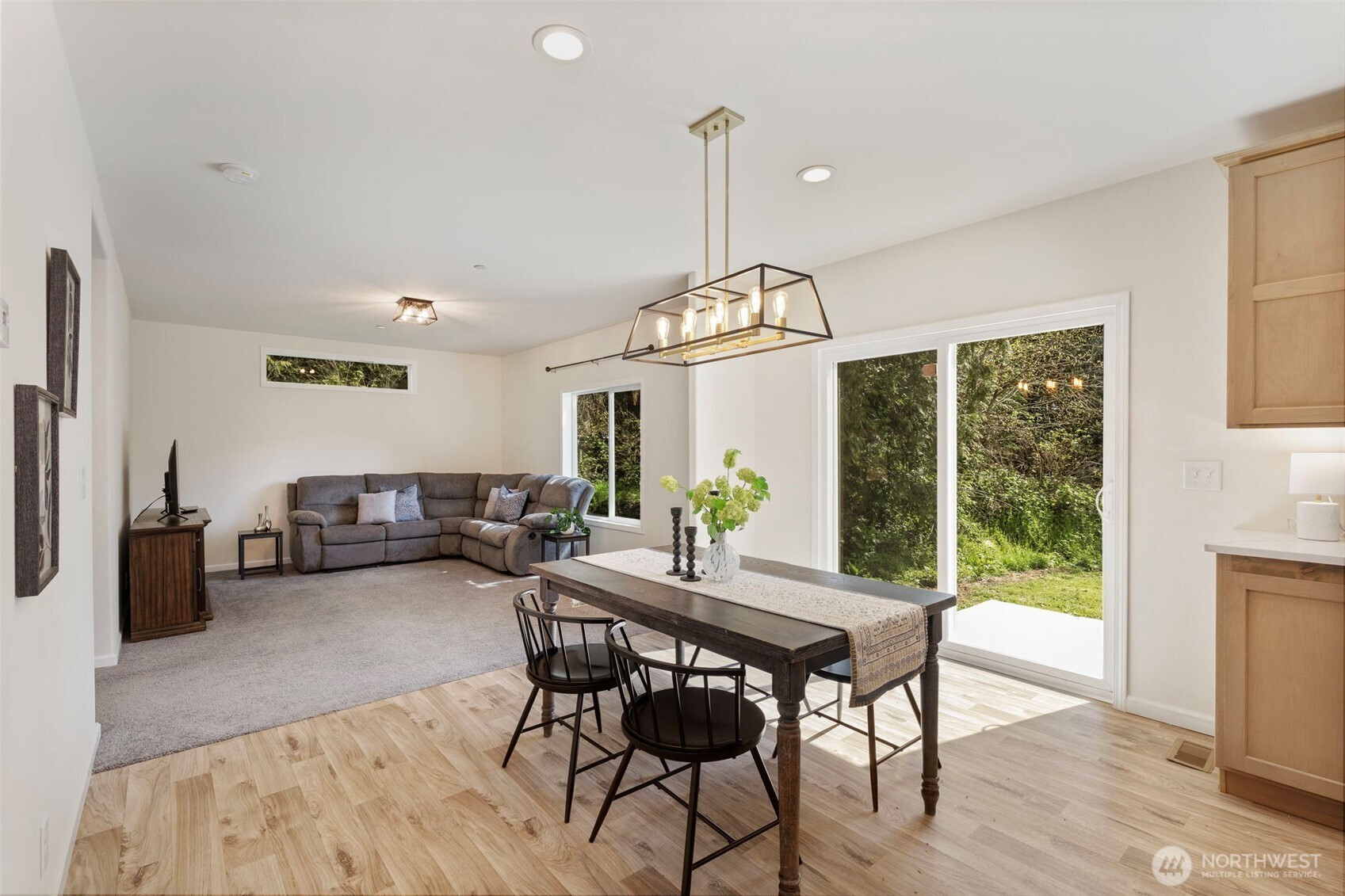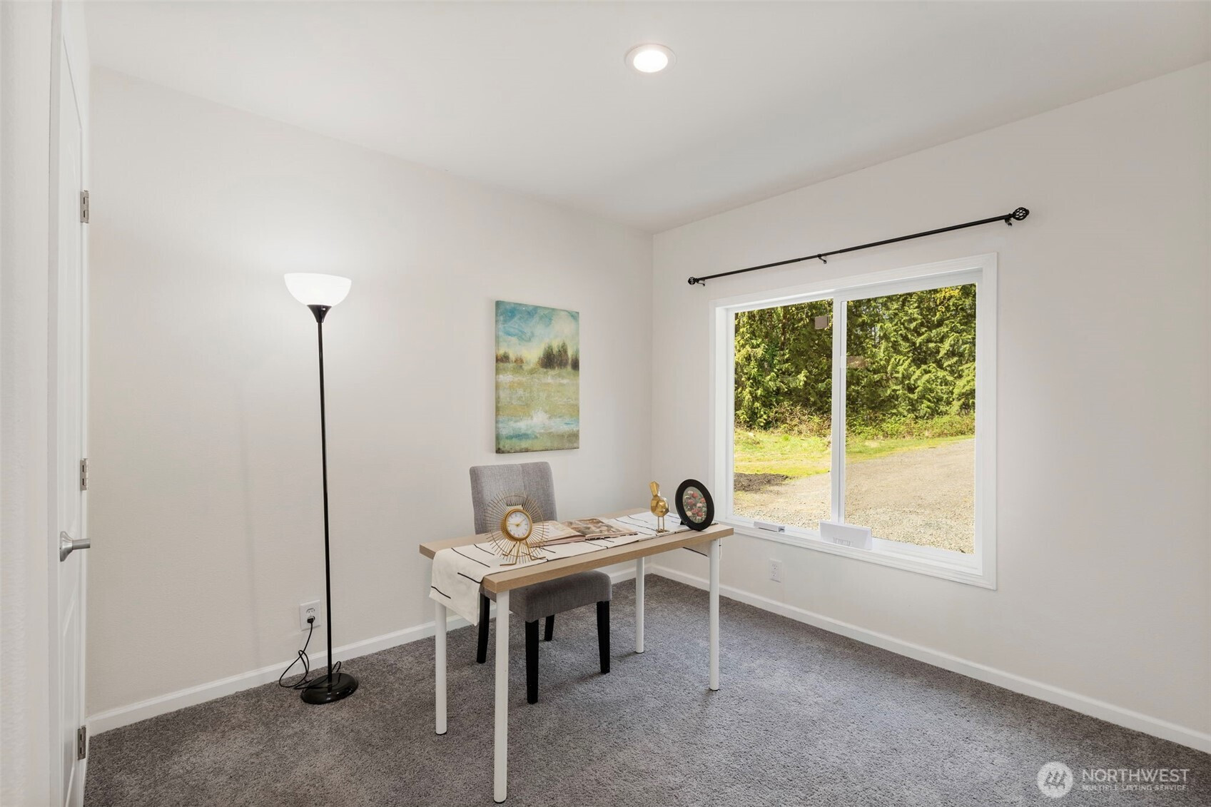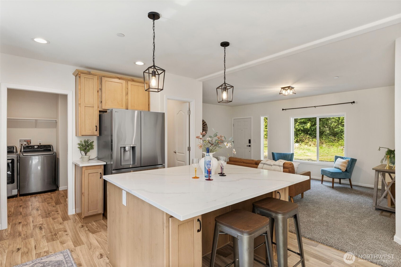 Nearly-new 1,566 sq ft home set on 2.5 peaceful acres, offering space, privacy, and modern finishes just minutes from Kingston. This 3-bedroom, 1.75-bath home features an open layout with elevated finishes including stainless steel appliances, quartz countertops, contemporary lighting, and a huge pantry for exceptional storage. Two separate living areas provide flexibility for relaxing, entertaining, or working from home. The primary suite is privately situated on the opposite side of the home from the two guest bedrooms, offering added separation and comfort. The property is well-suited for those needing space for hobbies or equipment, highlighted by a 36x36, 1,296 sq ft insulated and powered 3-car garage or workshop with 200 amp service, plus a 12x12 shed and ample RV or boat parking. Enjoy the balance of a quiet, rural setting with convenient access to Kingston ferries including the fast ferry to Seattle, schools, restaurants, beaches, and trails. No HOA. A versatile property with room to live, work, and play!