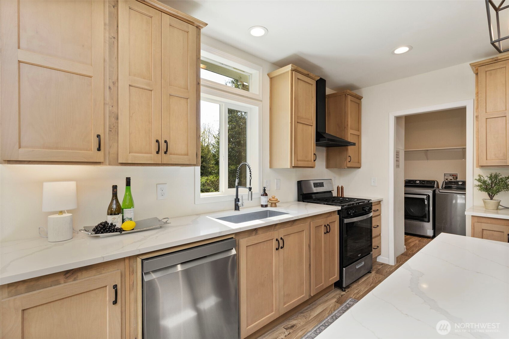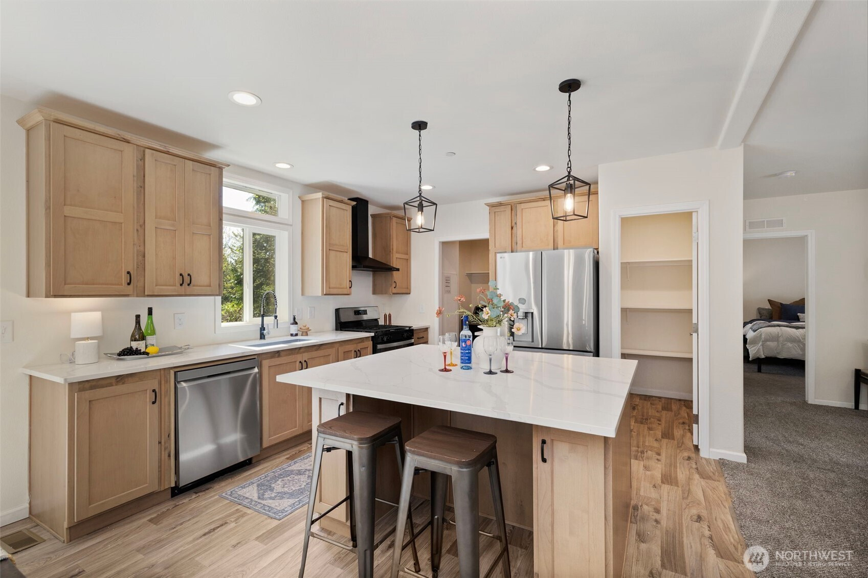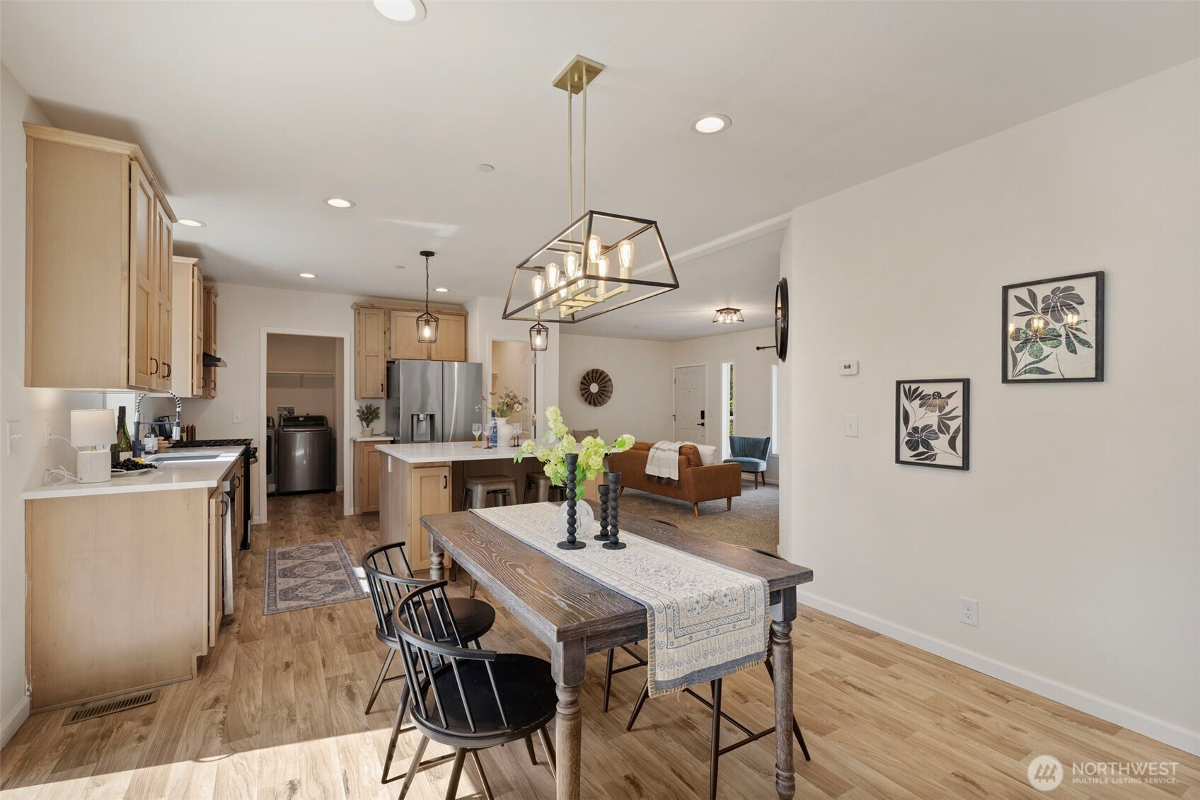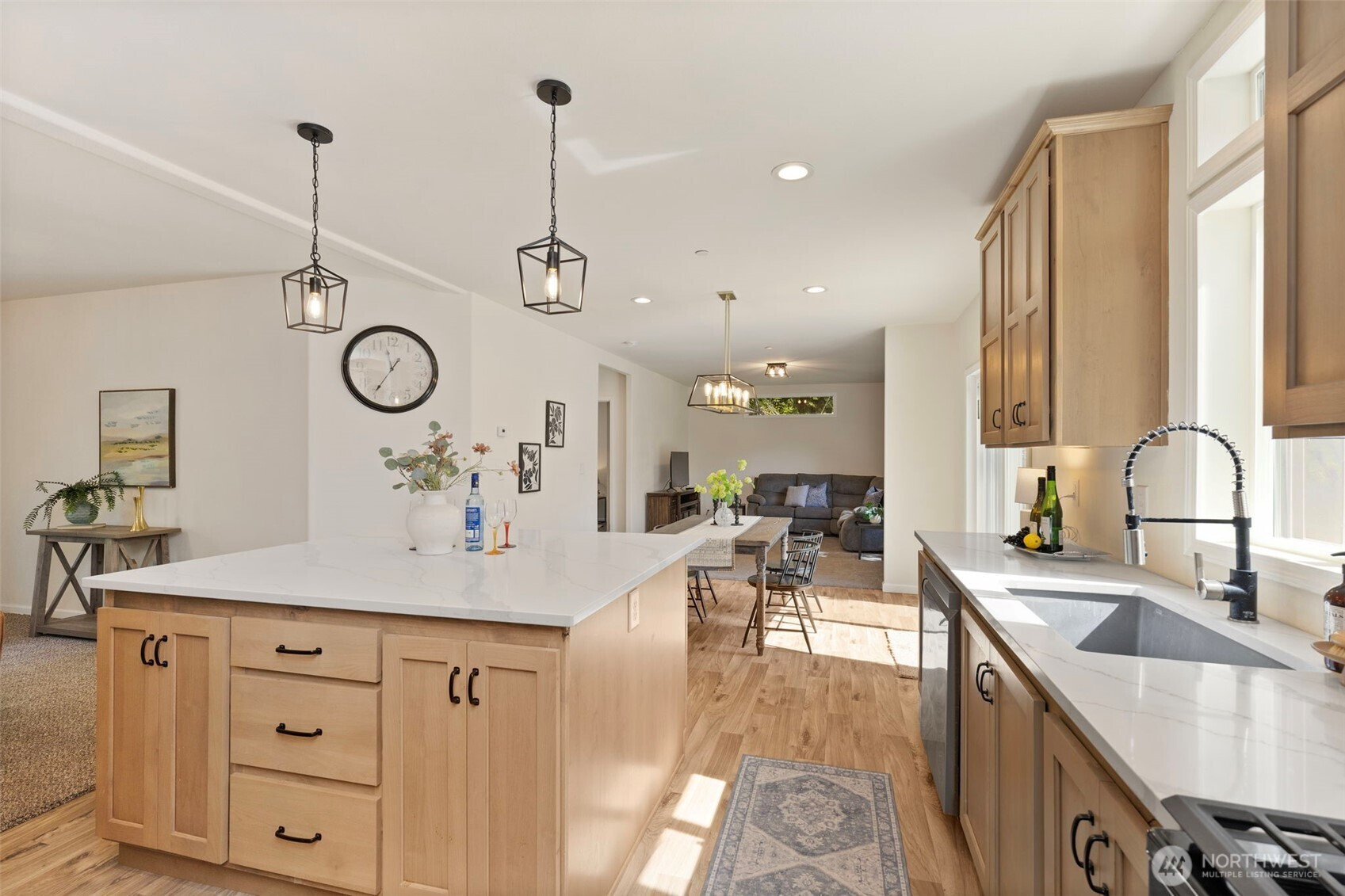 Nearly-new 1,566 sq ft home set on 2.5 peaceful acres, offering space, privacy, and modern finishes just minutes from Kingston. This 3-bedroom, 1.75-bath home features an open layout with elevated finishes including stainless steel appliances, quartz countertops, contemporary lighting, and a huge pantry for exceptional storage. Two separate living areas provide flexibility for relaxing, entertaining, or working from home. The primary suite is privately situated on the opposite side of the home from the two guest bedrooms, offering added separation and comfort. The property is well-suited for those needing space for hobbies or equipment, highlighted by a 36x36, 1,296 sq ft insulated and powered 3-car garage or workshop with 200 amp service, plus a 12x12 shed and ample RV or boat parking. Enjoy the balance of a quiet, rural setting with convenient access to Kingston ferries including the fast ferry to Seattle, schools, restaurants, beaches, and trails. No HOA. A versatile property with room to live, work, and play!