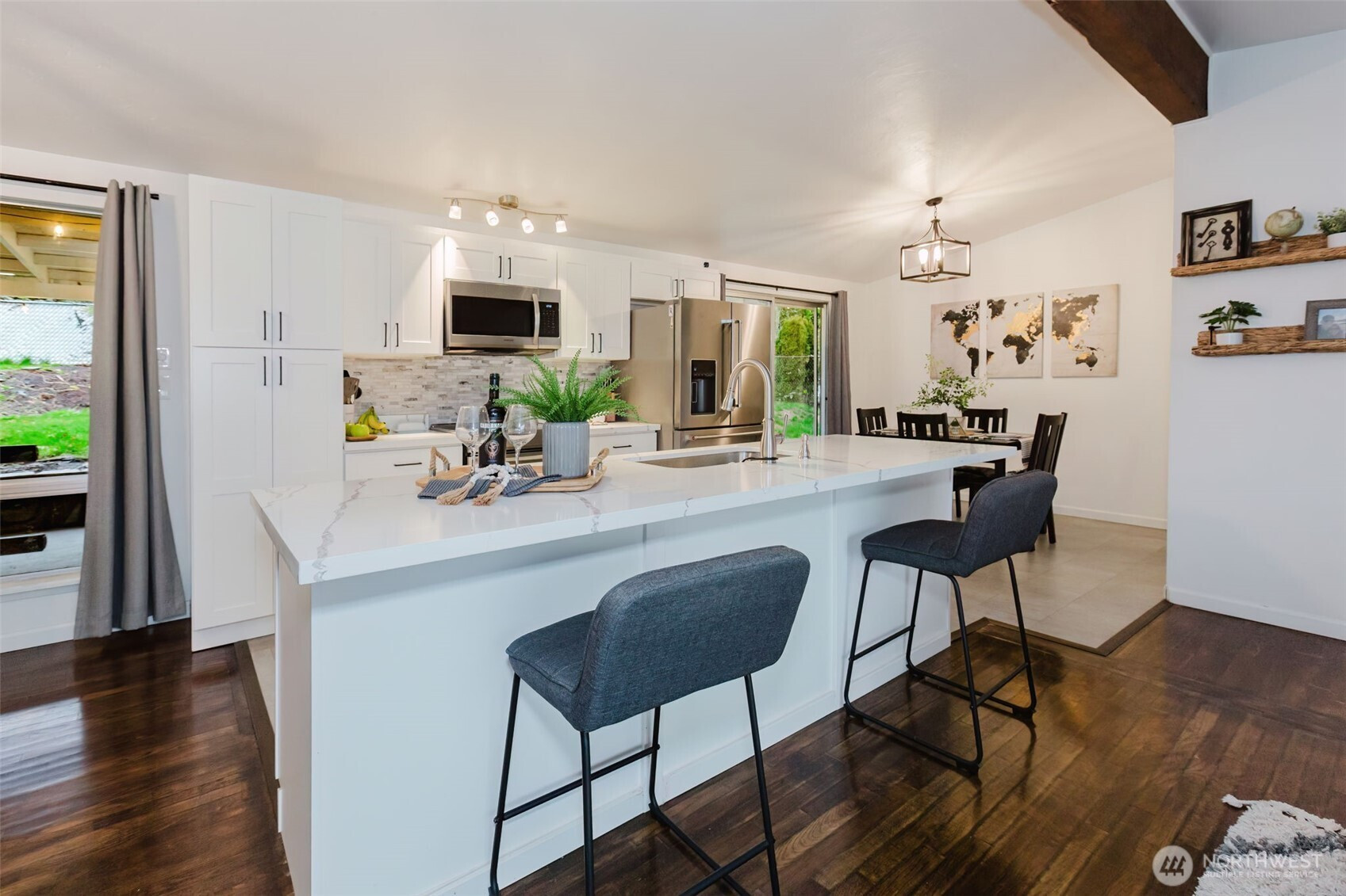 Welcome home to inviting single-story living in this updated 3-bedroom, 1-bath Bremerton gem, tucked into a quiet neighborhood with an attached garage. Vaulted ceilings and an open-concept living area welcome you with a bright, airy feel. Recent improvements include a new roof, vapor barrier in the crawl space, stylishly renovated kitchen with new cabinets, quartz counter tops, stainless steel appliances, plus a beautifully updated spacious bathroom. Step outside to a large covered patio and a fully-fenced, freshly landscaped yard, ideal for year-round entertaining. Conveniently located near Lions Park, dog walking trails, softball fields, PSNS, and the waterfront, this move-in-ready home truly shows pride of ownership. A must-see!