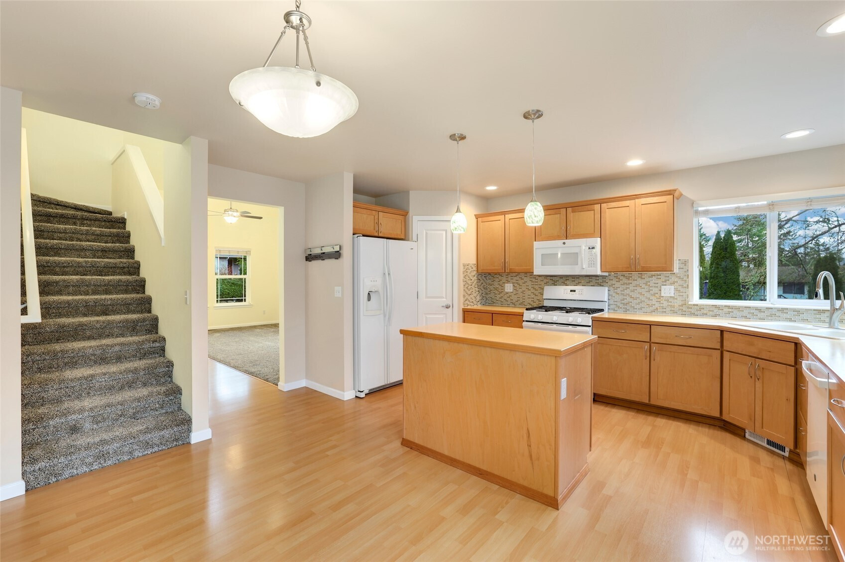 Impeccably maintained & truly move-in ready, this traditional home radiates pride of ownership. A charming front porch welcomes you while the back deck overlooks nearly 3.5 acres of private, serene grounds. Inside a dramatic floor-to-ceiling living room with soaring windows fills the home with abundant natural light. Fresh interior paint & brand-new carpet. The kitchen offers ample cabinetry & flows seamlessly into the family room, anchored by a cozy river rock fireplace. 3 bedrooms are located upstairs, a spacious primary retreat featuries a generous walk-in closet & five-piece ensuite bath. Centrally located near golf course, parks, schools, shopping & ferry access, an easy commute to the freeway, PSNS & Bangor! Plus -New roof in 2024!