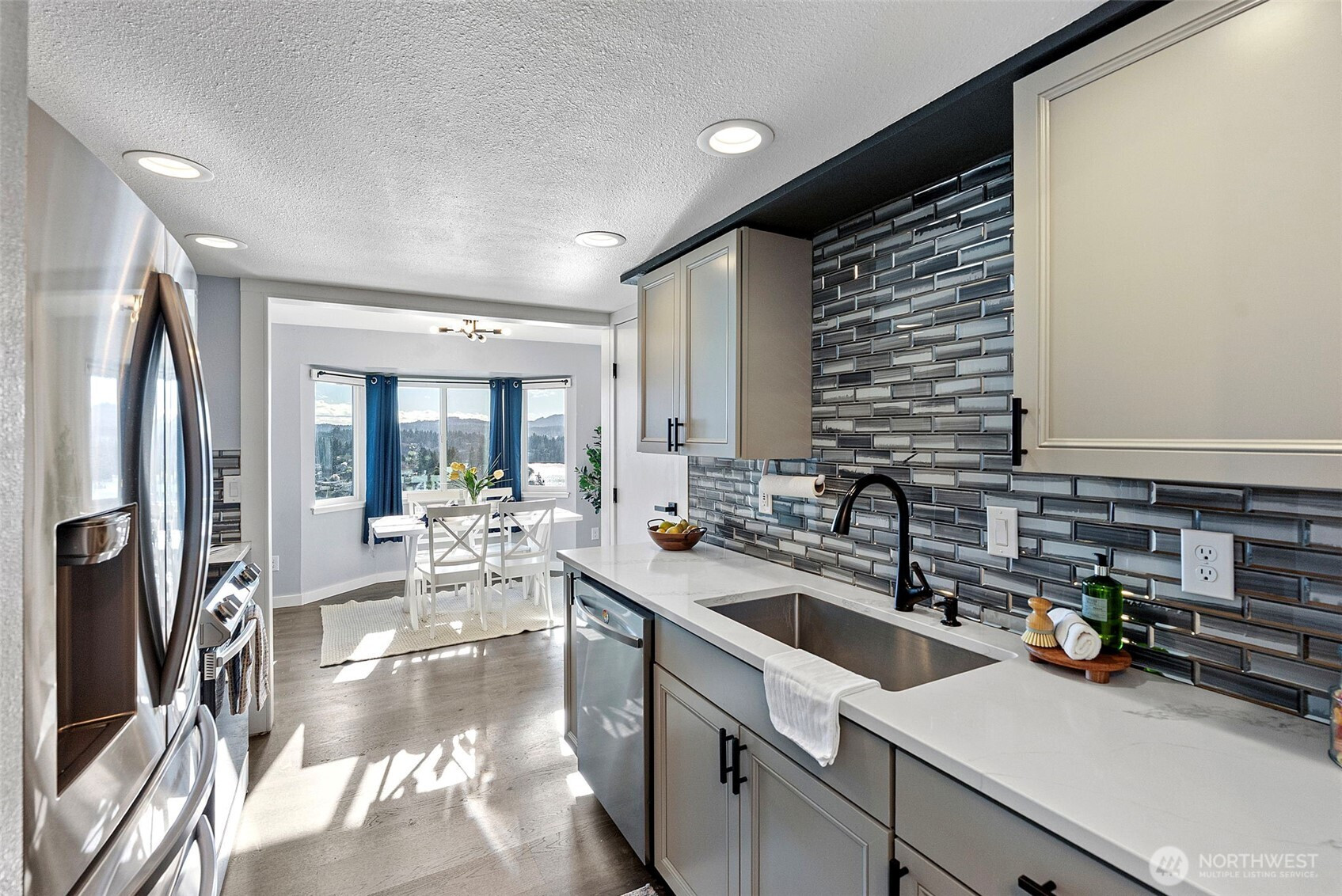 Looking for a beautifully renovated condo offering privacy and breathtaking views for under $300k? This is the one! On a clear day, enjoy sweeping vistas from Mount Rainier to Hood Canal, with ever-changing scenery that includes soaring eagles, wandering deer, occasional whale sightings, stunning sunsets, and dramatic Olympic Mountain storm views.Beyond the incredible setting, this home was thoughtfully updated in 2021 with all new cabinets, countertops, appliances, flooring, and paint. The result is a fresh, modern interior featuring a gorgeous kitchen, dining area with charming bay windows, a spacious living room, and a dedicated laundry room with extra storage.The primary suite offers a walk-in closet and a convenient ¾ bath, while the second bedroom includes a generously sized closet and easy access to the full guest bath. A separate storage unit in Building 3390 adds even more functionality. Don’t miss your chance to experience these views in person — schedule today.