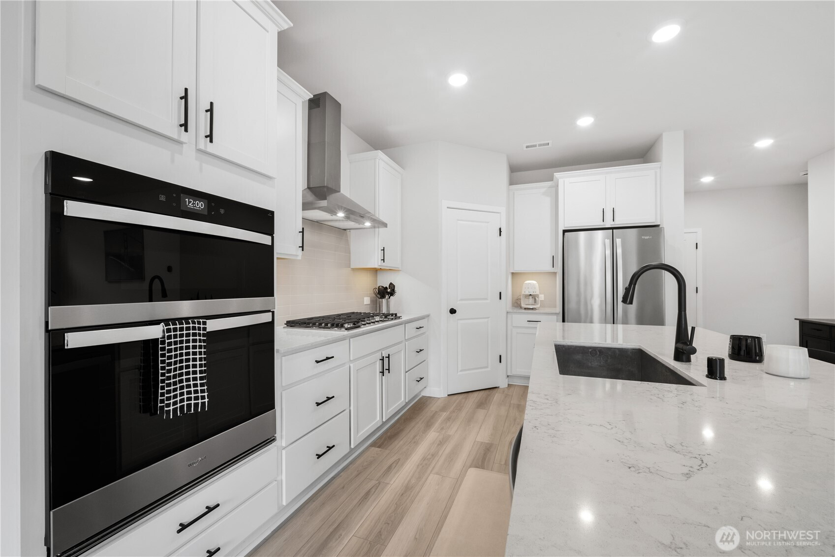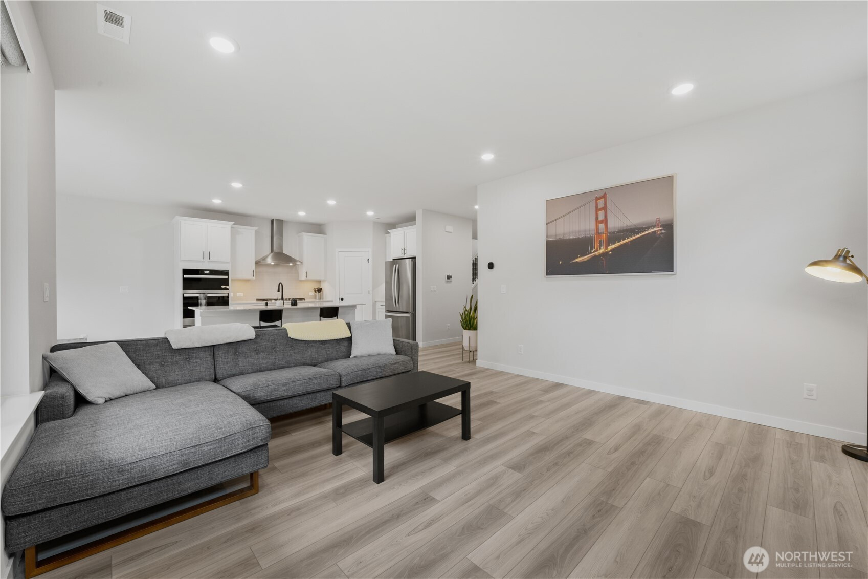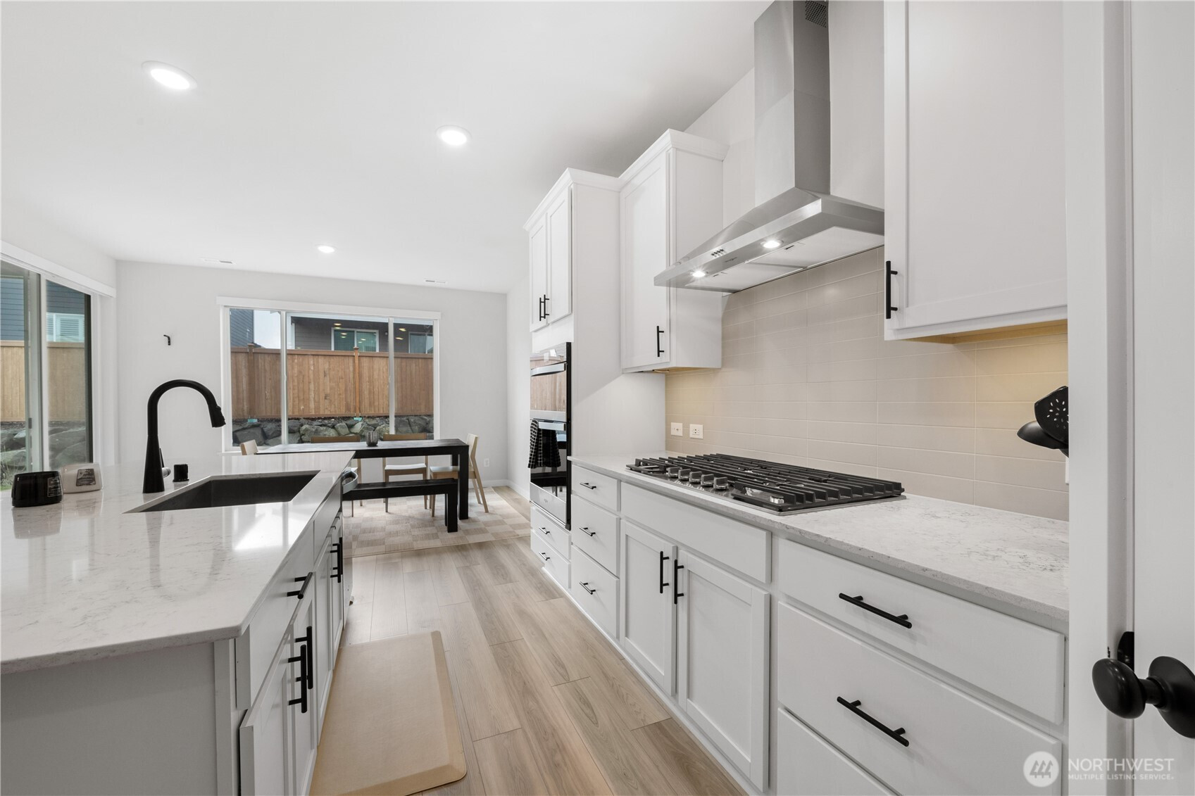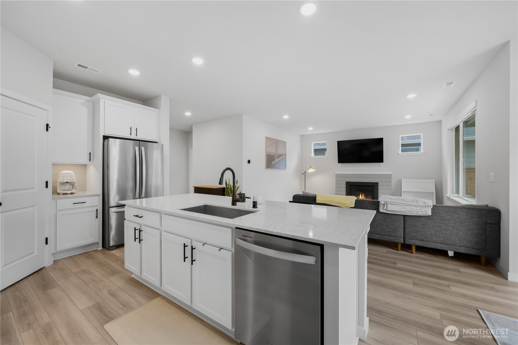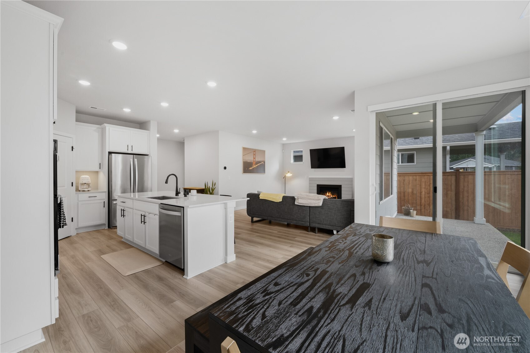 Discover the perfect blend of modern luxury and Pacific Northwest charm in the highly sought-after McCormick community of Port Orchard, WA. This stunning 2024-built 5-bedroom, 2.5-bath home offers approximately 2,587 sq ft of thoughtfully designed living space, featuring soaring 9-foot ceilings, an inviting great room with a cozy shiplap-accented gas fireplace, and a gourmet island kitchen boasting quartz countertops, stainless steel appliances (including a 5-burner gas cooktop), and elegant 42" soft-close cabinetry. The luxurious primary suite includes a spa-like ensuite with dual sinks, soaking tub, tile shower, and generous walk-in closet, while a bonus room and extra bedroom on the main level provide flexible space for an office, guest suite, or play area. Step outside to a private, fully fenced backyard with a spacious covered patio—ideal for year-round entertaining, relaxing on lush grass, or enjoying your serene retreat. Nestled in vibrant McCormick, enjoy miles of scenic trails, nearby parks, and the renowned McCormick Woods Golf Course just moments away. This move-in-ready gem delivers effortless comfort in one of Port Orchard’s most desirable neighborhoods. Your dream Pacific Northwest retreat awaits!