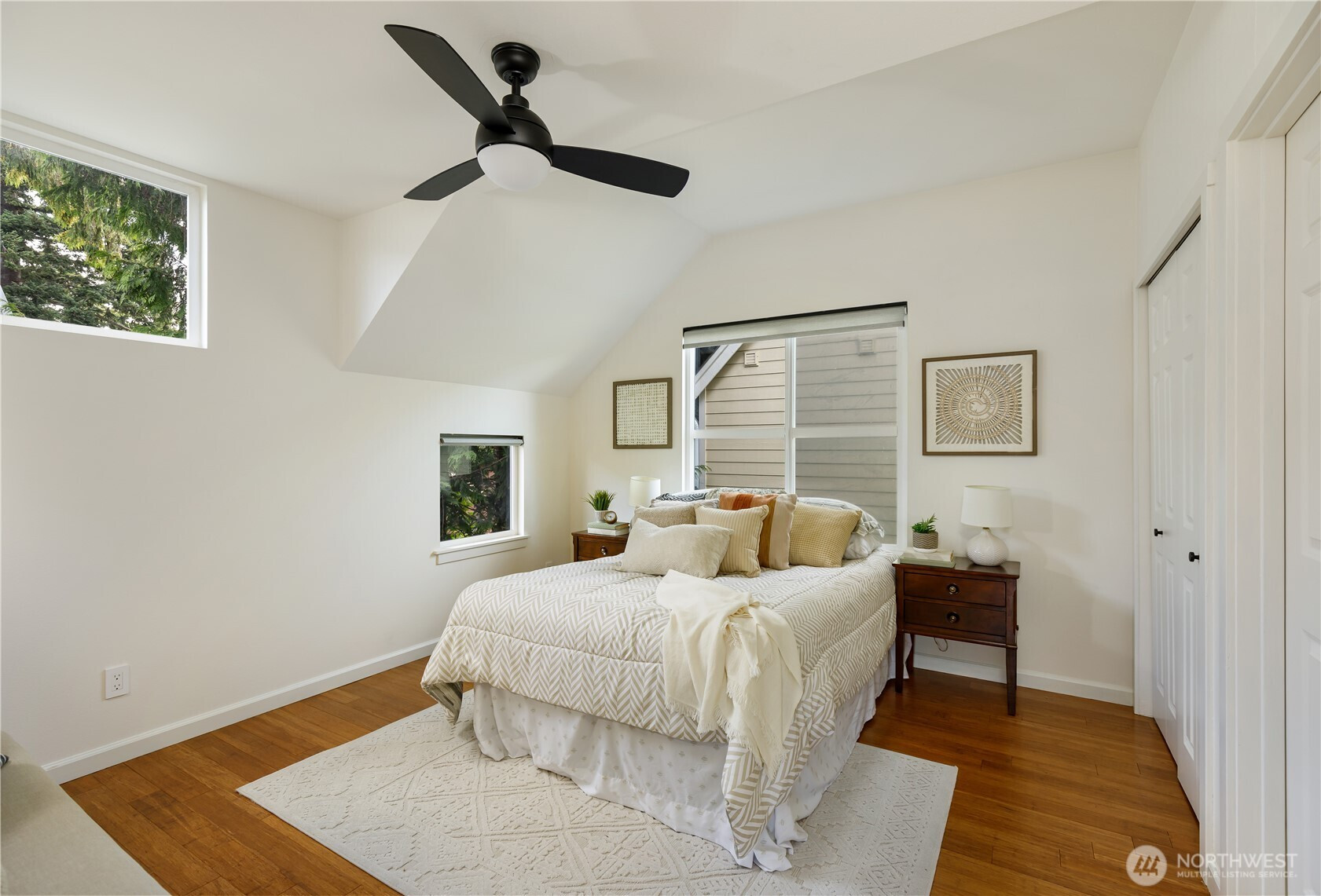 Walk to the Seattle Ferry from this ultimate commuter location in the heart of Winslow. Just blocks from the ferry terminal, this beautifully updated end-unit townhome offers low-maintenance island living with effortless Seattle access, which is perfect for today’s hybrid work lifestyle. Enjoy peaceful Bainbridge surroundings with a seamless trip into the city and unbeatable walkability right outside your front door. Located in sought-after Winslow Mews, this light-filled residence features two Bedrooms plus a Dedicated Office, creating an ideal work-from-home layout. Vaulted ceilings, skylights, and expansive windows enhance the open design, while engineered hardwood floors add warmth and style throughout. The updated kitchen showcases quartz countertops, stainless steel appliances, modern cabinetry, and generous prep space, flowing seamlessly into the living and dining areas, ideal for everyday living and entertaining. Step outside to your private balcony for morning coffee or evening relaxation, and enjoy the community park within the Mews. An attached garage with new epoxy floors supports a true lock-and-leave lifestyle and offers flexibility for parking, storage, or a home gym. Just moments from downtown Winslow’s shops, restaurants, waterfront parks, farmers market, and the ferry terminal, this home truly defines walkable convenience. An exceptional opportunity to secure turnkey comfort in one of Bainbridge Island’s most commuter-friendly locations.