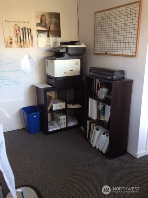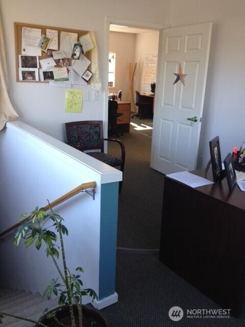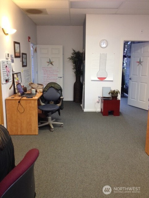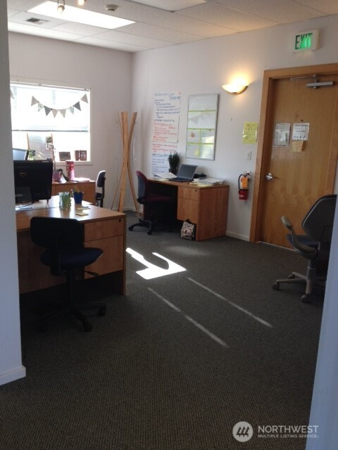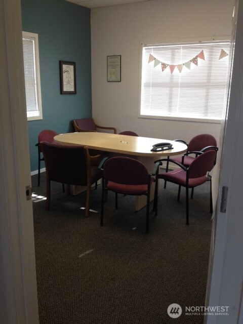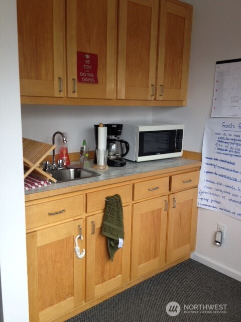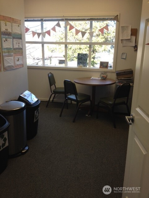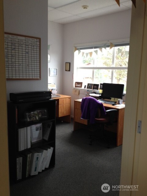 For lease 1,004 sf second level office suite with elevator and 14 stall off street parking located in Old Town Silverdale, the only walkable area of Silverdale, one block from the waterfront on a highly visible corner with views of Dyes Inlet and Mt Rainier. Surrounded by shops, eateries and service businesses in a safe, well lighted area. Located in an attractive, professional building with excellent quality interior materials. Large windows and a high ceiling give a bright, spacious feel. The suite includes a large reception area, four offices (one of which features a private exit/entrance), a break room counter/cabinet area with a sink and space for a mini-fridge and two storage areas. Elevator and ADA compliant rest rooms in the common areas on each floor. Lease is partial service, not NNN. Rate does not include gas, electricity or internet.