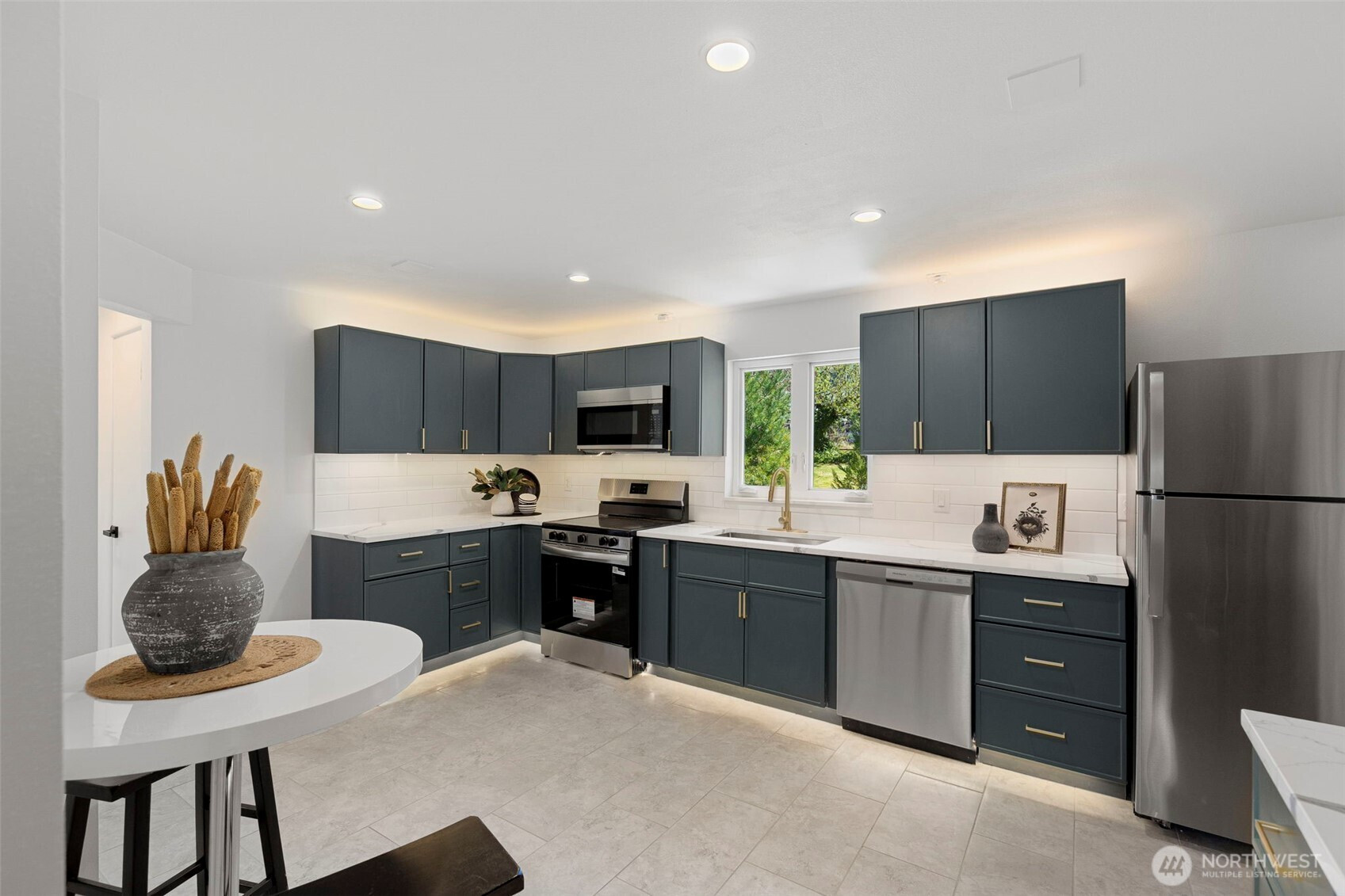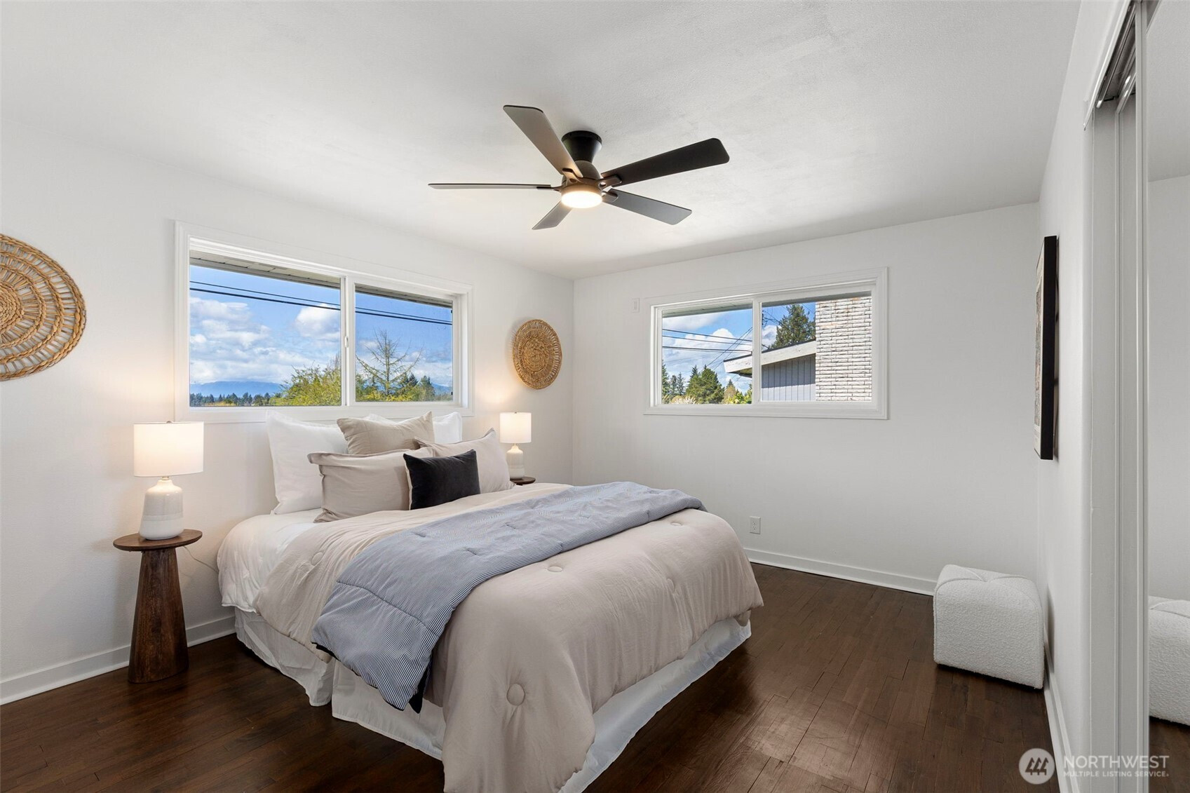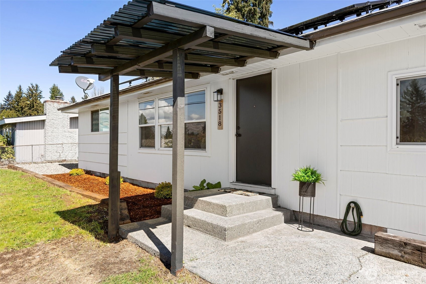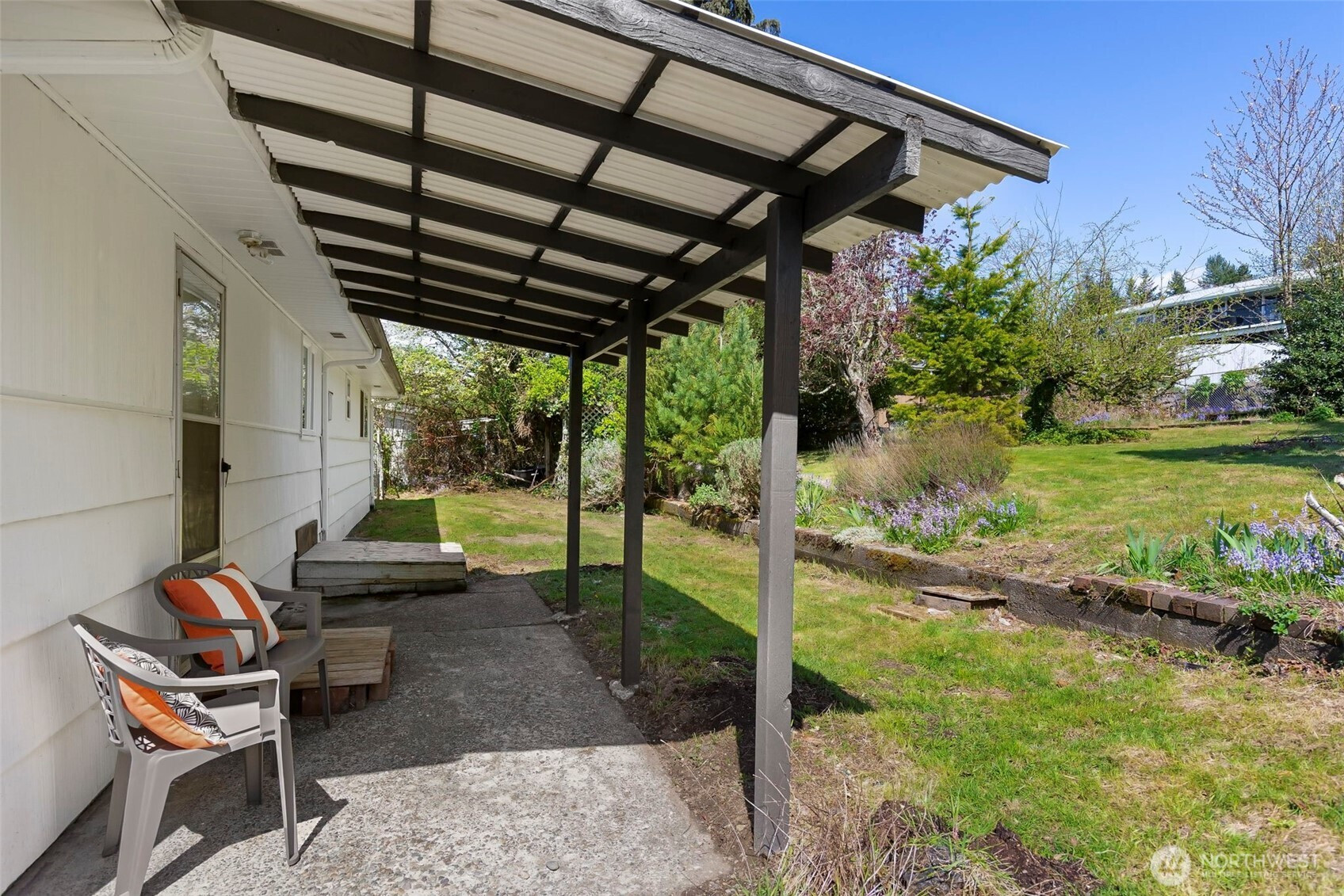 Completely reimagined and effortlessly stylish, this stunning single-level home offers modern living at its finest. The front yard hedges frame the Olympic Mountain range beautifully allowing you to capture stunning sunsets and year around views inside and out. From the moment you step inside, you're welcomed by refinished natural hardwood flooring that flows throughout paired with new stone tile, creating a warm and cohesive feel. The beautifully updated kitchen is a true showpiece, featuring new cabinetry accented with striking gold hardware, gleaming stainless steel appliances, and elegant white marbled quartz countertops that bring both sophistication and function together. The bathroom has been thoughtfully updated with contemporary finishes andclean, modern touches. Step outside to a covered patio perfect for year-round entertaining or quiet relaxation, all surrounded by mature landscaping that provides both beauty and privacy. Enjoy the benefits of the solar panels offering peace of mind and energy efficieney for years to come. With its single-level layout, high-end finishes, and turn-keycondition, this home delivers the perfect blend of comfort, style, and smart living.