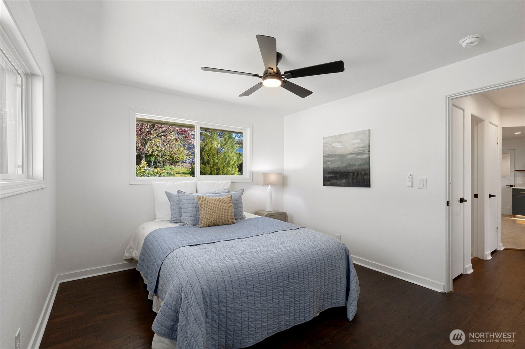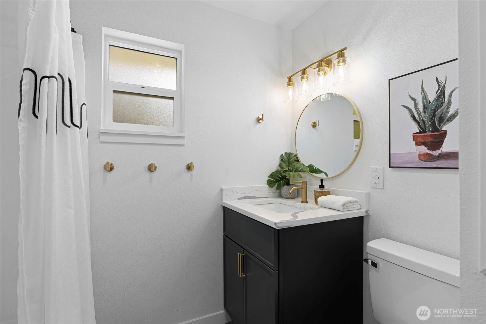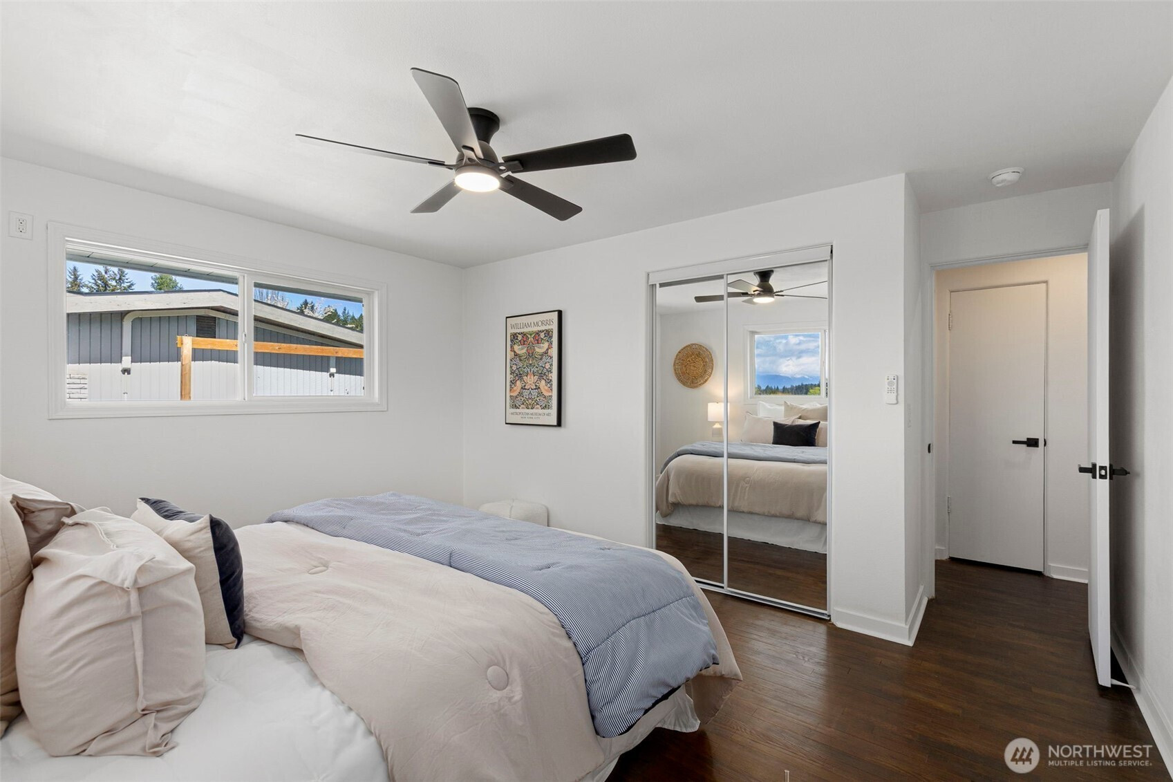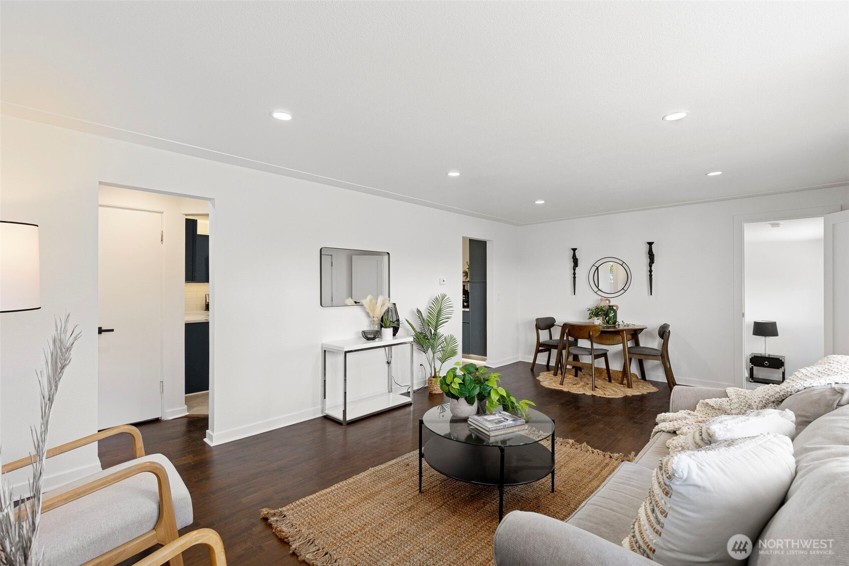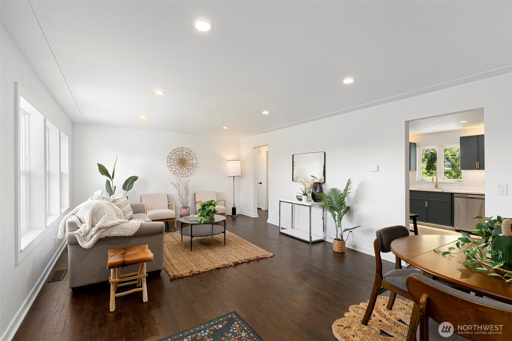 Completely reimagined and effortlessly stylish, this stunning single-level home offers modern living at its finest. The front yard hedges frame the Olympic Mountain range beautifully allowing you to capture stunning sunsets and year around views inside and out. From the moment you step inside, you're welcomed by refinished natural hardwood flooring that flows throughout paired with new stone tile, creating a warm and cohesive feel. The beautifully updated kitchen is a true showpiece, featuring new cabinetry accented with striking gold hardware, gleaming stainless steel appliances, and elegant white marbled quartz countertops that bring both sophistication and function together. The bathroom has been thoughtfully updated with contemporary finishes andclean, modern touches. Step outside to a covered patio perfect for year-round entertaining or quiet relaxation, all surrounded by mature landscaping that provides both beauty and privacy. Enjoy the benefits of the solar panels offering peace of mind and energy efficieney for years to come. With its single-level layout, high-end finishes, and turn-keycondition, this home delivers the perfect blend of comfort, style, and smart living.