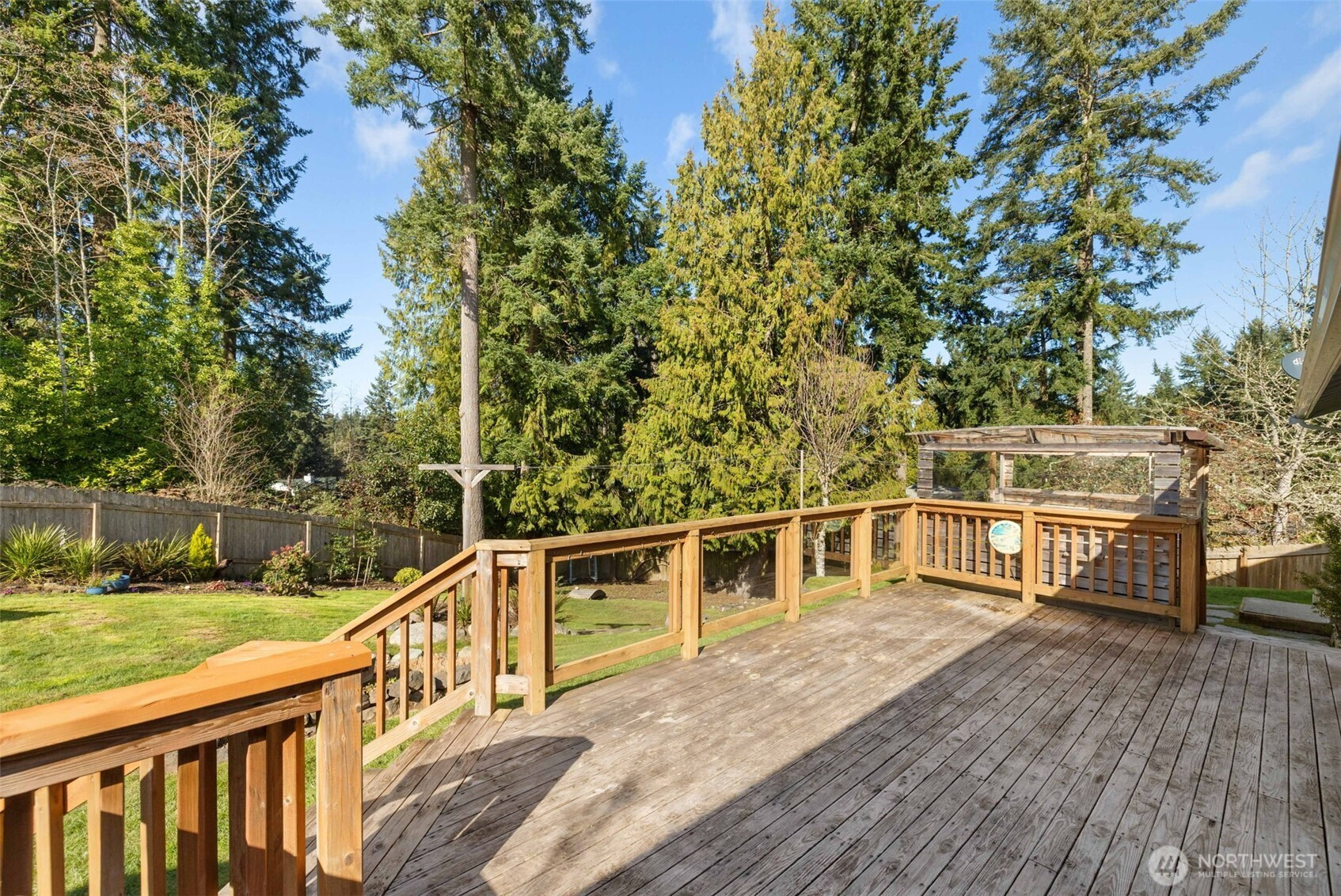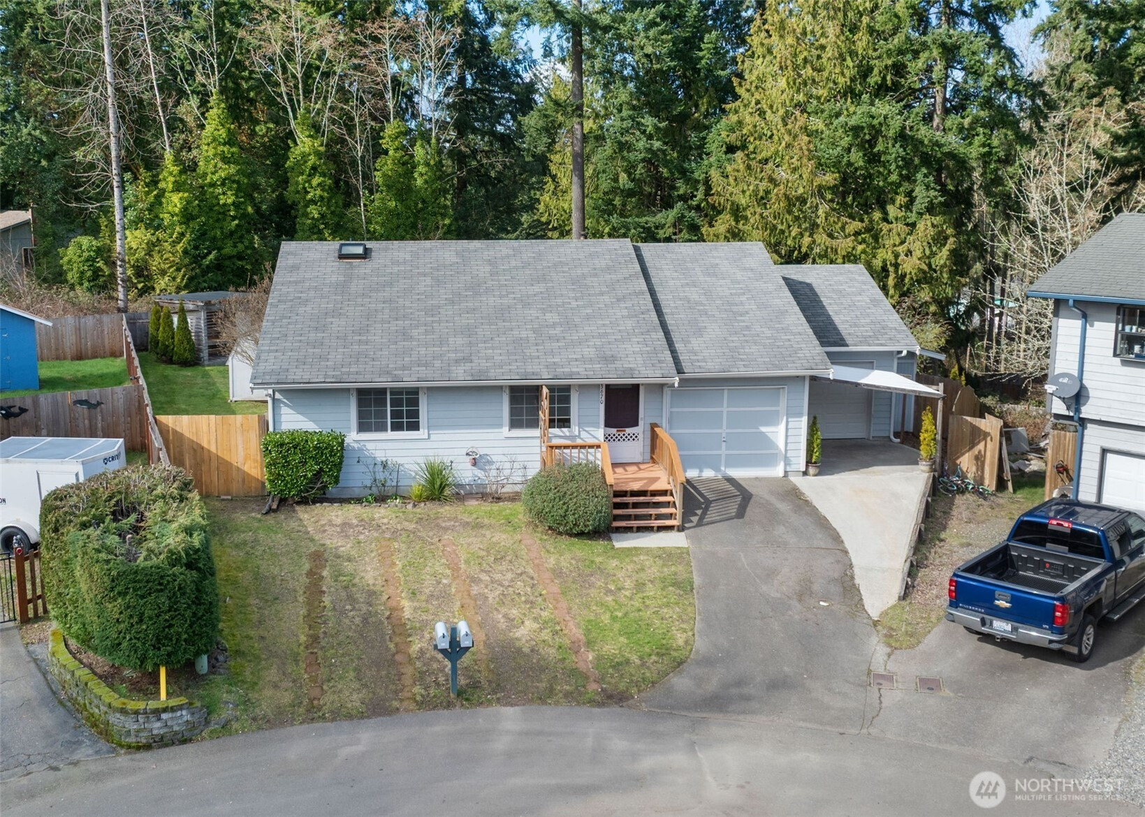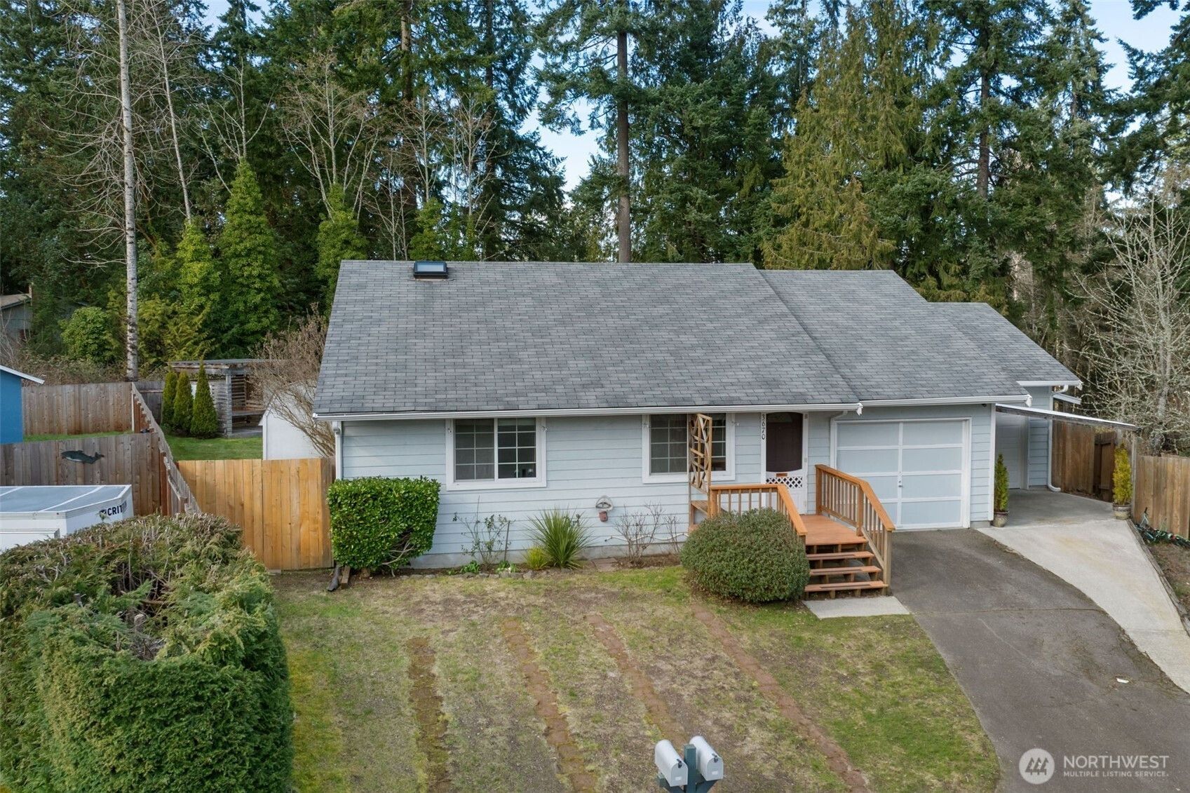 Tucked away on a quiet cul-de-sac, this move in ready 3bd, 1.75ba home offers 1,236 sq ft of comfortable living space on a generous .28ac lot. Inside, you’ll find a spacious living area, updated kitchen and bathrooms, and a primary suite with attached bath and ample closet space. A cozy wood stove keeps things warm and inviting through the colder months. Outside is where this property truly shines. The expansive backyard is designed for both relaxation and functionality, featuring a large deck, multiple fire pits, a swing lounger, hot tub, and raised garden beds. A large garage is ready for your workshop or hobbies; plus multiple outbuildings provide extra storage or project space.