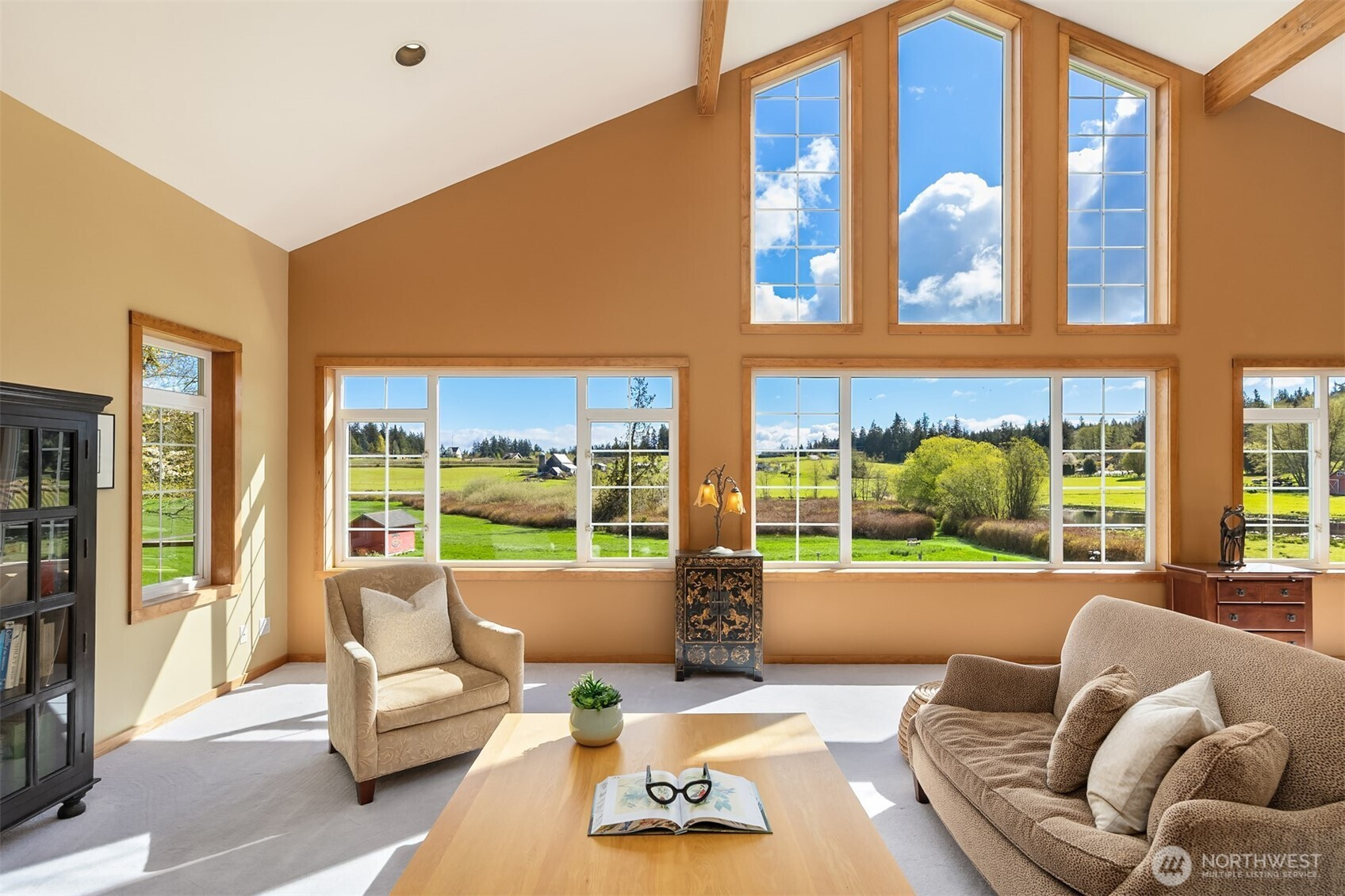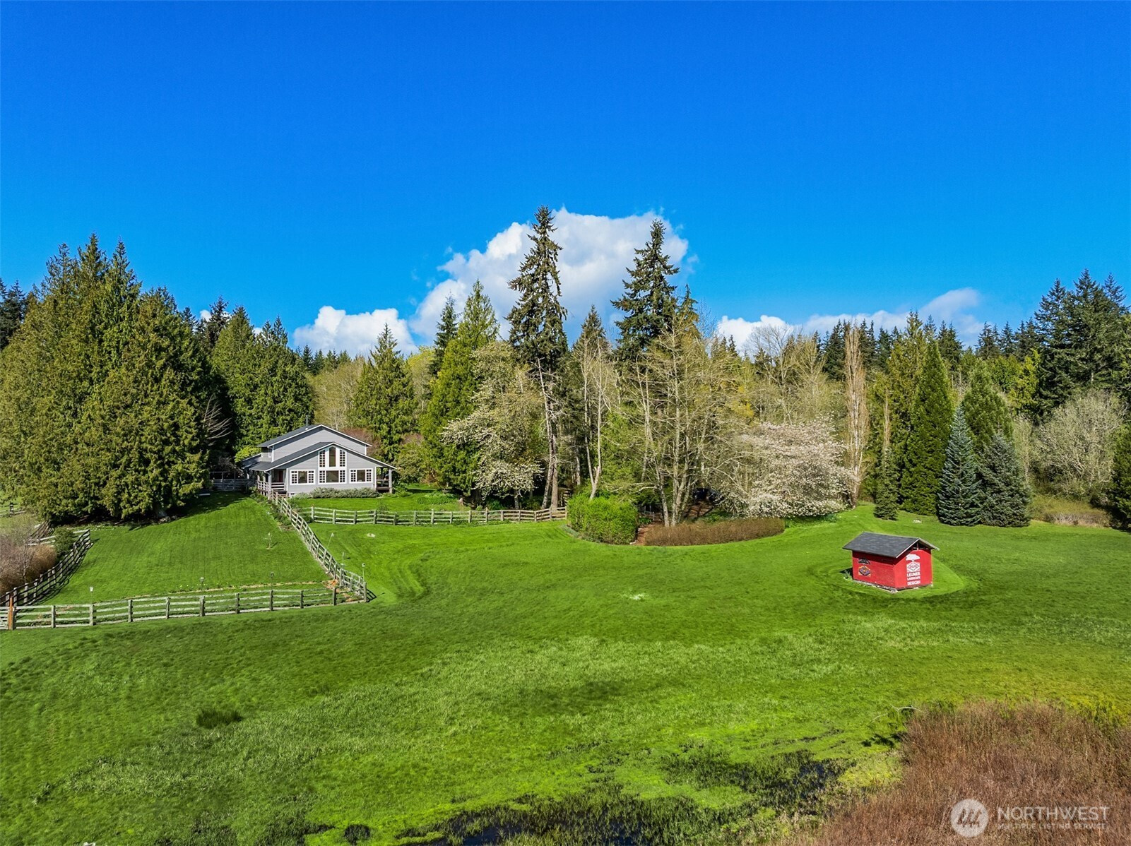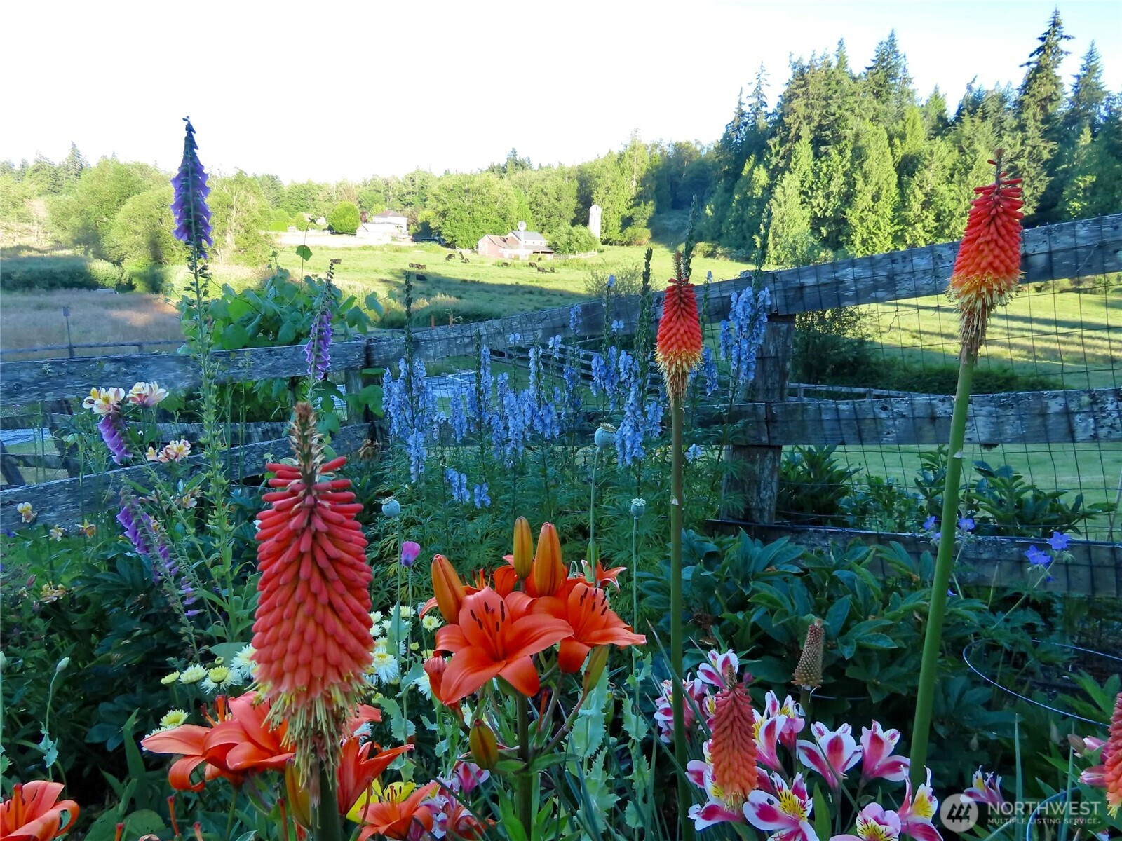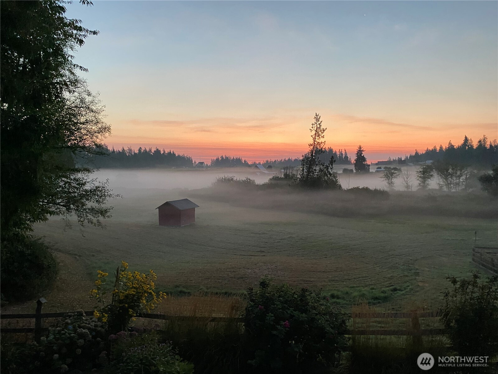 Set amid nine acres of rolling pastoral land, this dreamy retreat unfolds as a gardener's paradise—where ever-changing views stretch across open meadows and neighboring farms. Professionally landscaped, the grounds feel like your own private botanical garden, showcasing innumerable specimens of rhododendrons, Japanese maples, mature conifers, and perennial blooms. Each season reveals a new palette, creating a constantly evolving tapestry of color, texture, and light. The three-bedroom residence is thoughtfully designed to embrace its surroundings, with vaulted ceilings and expansive windows that flood the interiors with natural light. A covered deck invites morning coffee at sunrise and lingering evenings immersed in birdsong and tranquil views. Beautifully maintained with newer roof, heat pump, wood stove, exterior paint, HW heater. Two-car garage is complemented by a versatile annex—ideal for a private office, art studio, workshop, or quiet writer’s retreat. Tucked away at the end of a peaceful country lane, the property offers meandering trails through forest and open pasture, making it a notable destination for birding and nature study, known as Redtail Roost. Despite its seclusion, you’re just minutes from the iconic Point No Point Lighthouse and beach—perfect for spontaneous coastal strolls. Stop by the local bakery for coffee and a warm treat on your way, and savor the rare balance of privacy, beauty, and proximity. This is not simply a home—it’s a living work of art.
