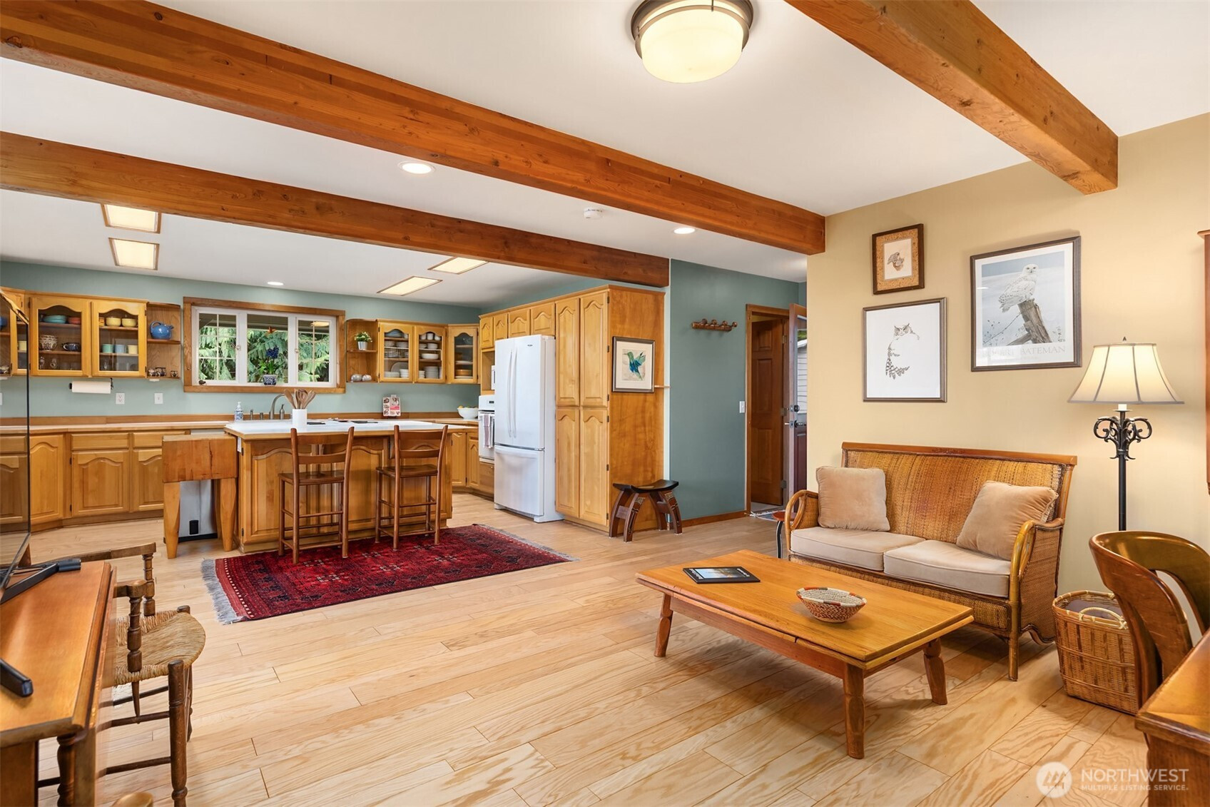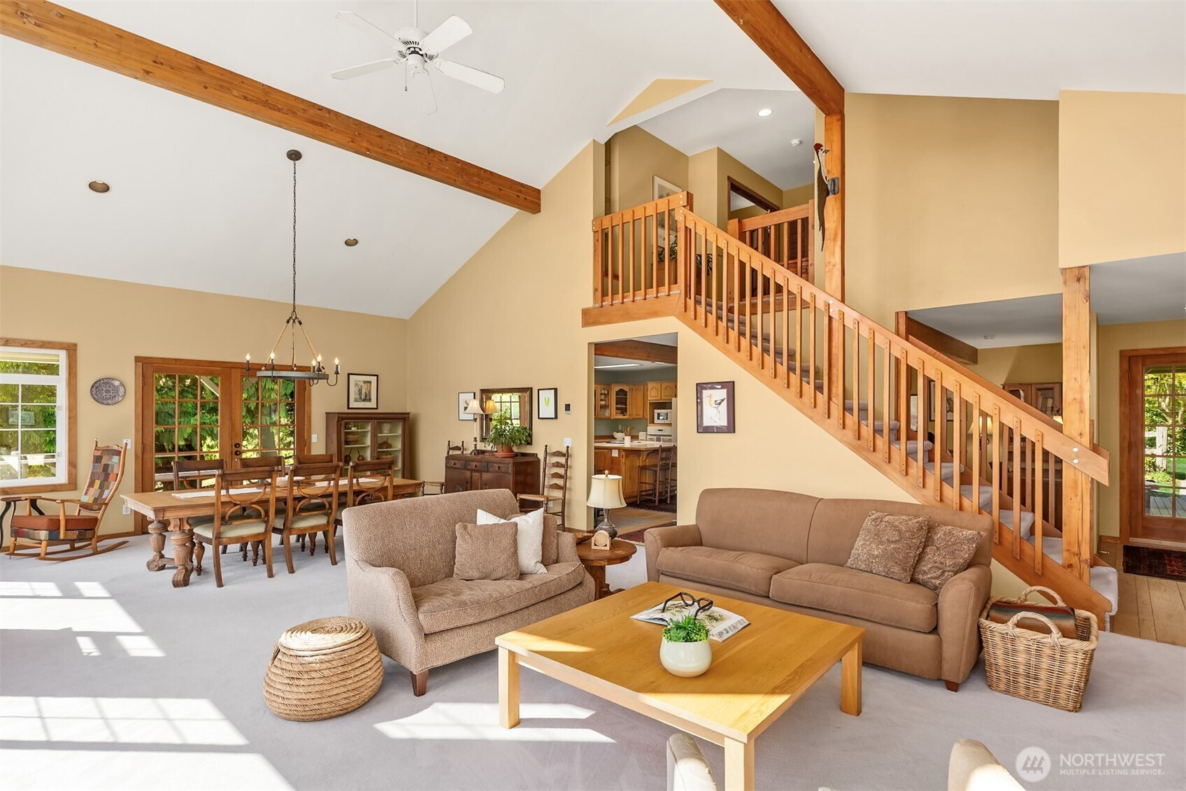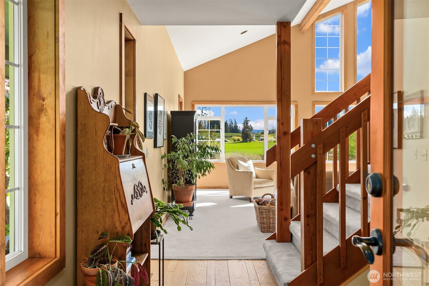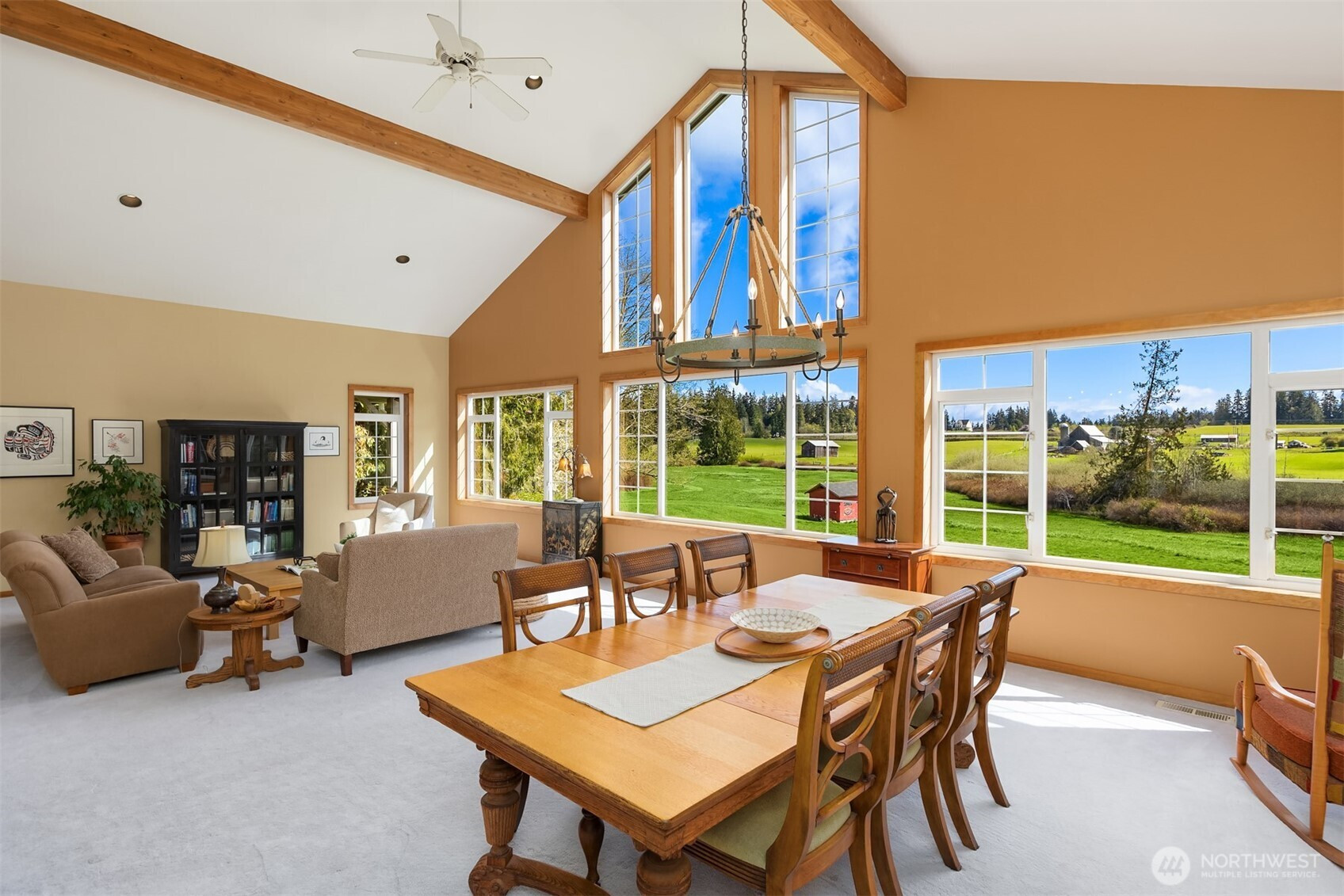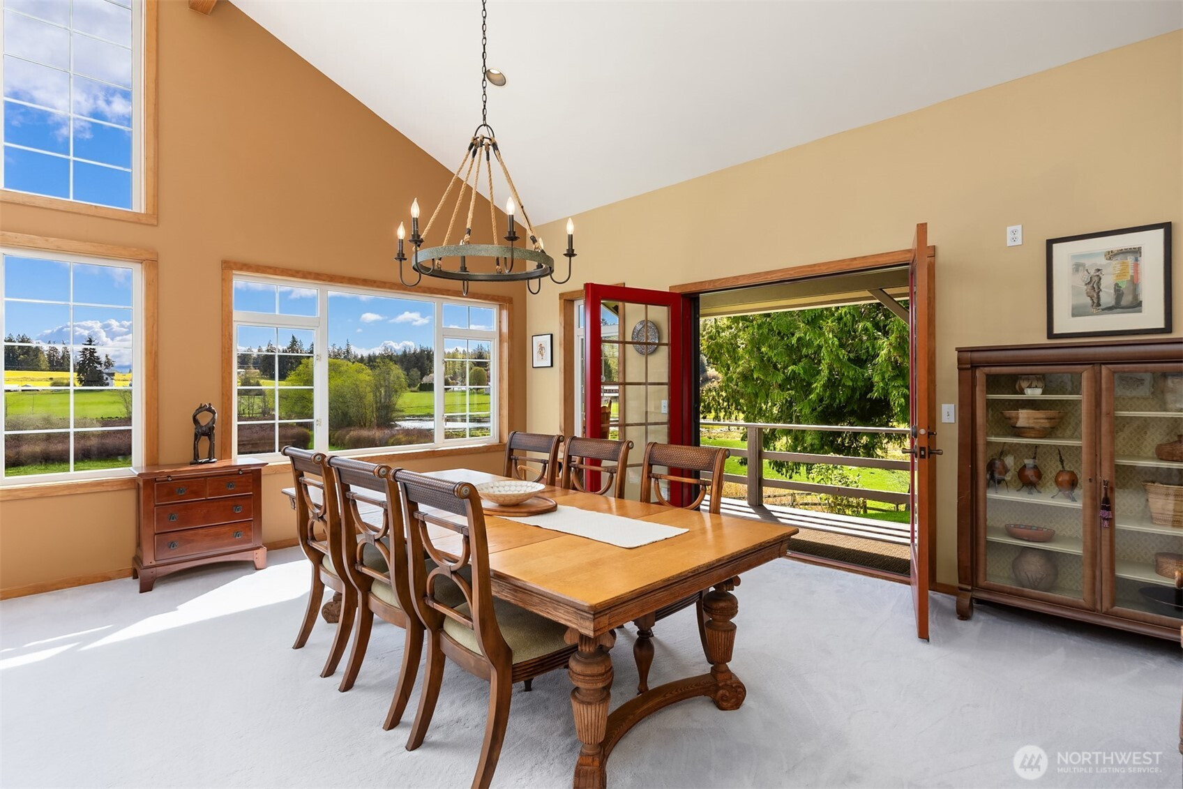 Set amid nine acres of rolling pastoral land, this dreamy retreat unfolds as a gardener's paradise—where ever-changing views stretch across open meadows and neighboring farms. Professionally landscaped, the grounds feel like your own private botanical garden, showcasing innumerable specimens of rhododendrons, Japanese maples, mature conifers, and perennial blooms. Each season reveals a new palette, creating a constantly evolving tapestry of color, texture, and light. The three-bedroom residence is thoughtfully designed to embrace its surroundings, with vaulted ceilings and expansive windows that flood the interiors with natural light. A covered deck invites morning coffee at sunrise and lingering evenings immersed in birdsong and tranquil views. Beautifully maintained with newer roof, heat pump, wood stove, exterior paint, HW heater. Two-car garage is complemented by a versatile annex—ideal for a private office, art studio, workshop, or quiet writer’s retreat. Tucked away at the end of a peaceful country lane, the property offers meandering trails through forest and open pasture, making it a notable destination for birding and nature study, known as Redtail Roost. Despite its seclusion, you’re just minutes from the iconic Point No Point Lighthouse and beach—perfect for spontaneous coastal strolls. Stop by the local bakery for coffee and a warm treat on your way, and savor the rare balance of privacy, beauty, and proximity. This is not simply a home—it’s a living work of art.