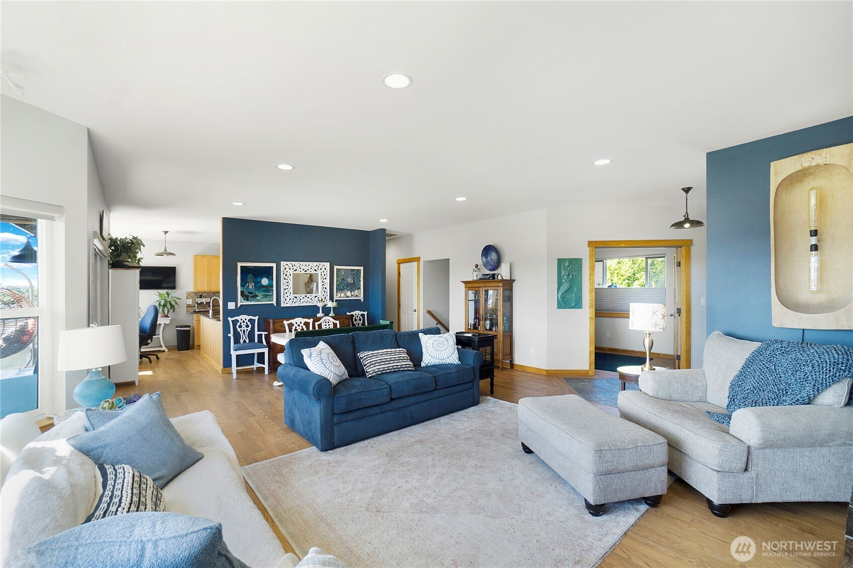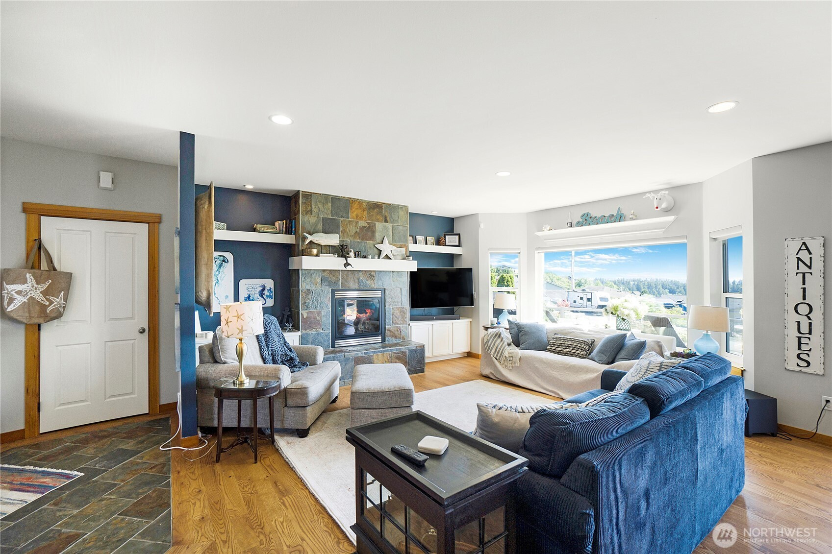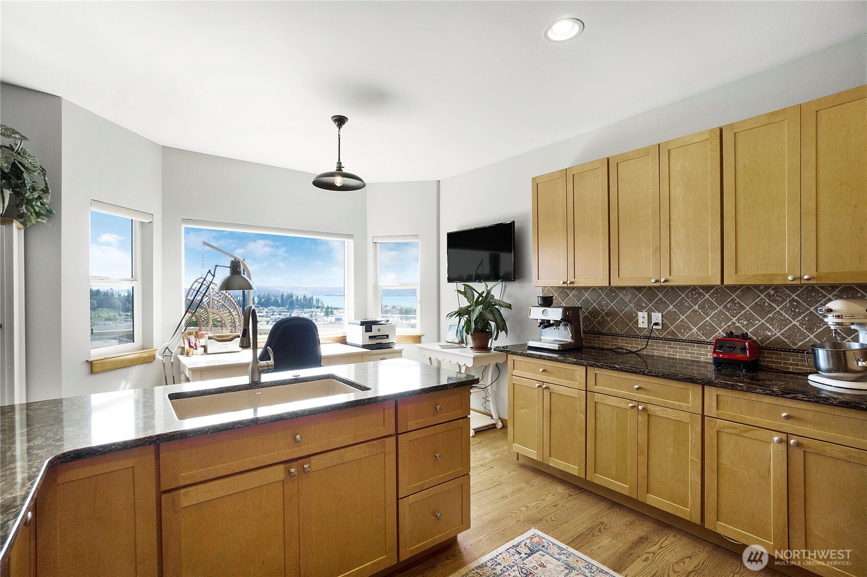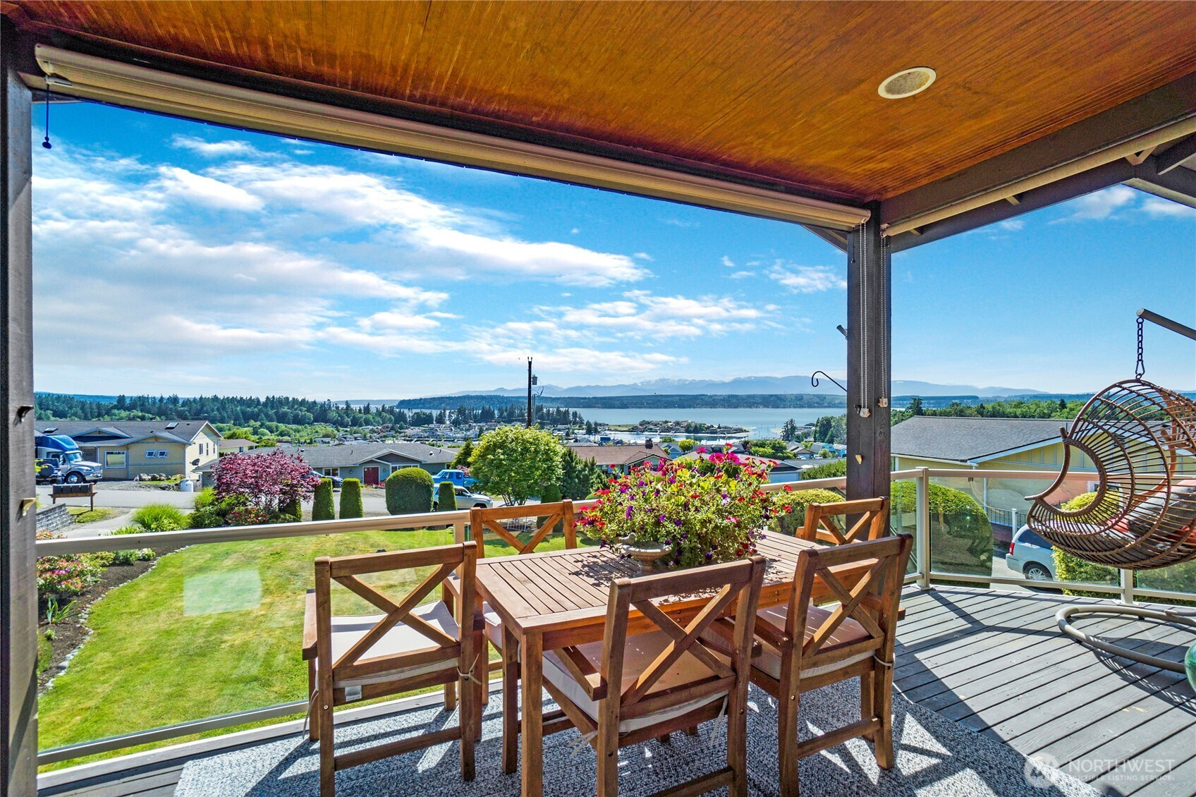 Enjoy breathtaking, unobstructed views of the Marina, Hood Canal, and Olympic Mountains—where sunsets are the highlight of each day! Designed to capture the scenery from every room, this home features 9-foot ceilings, expansive windows, and a spectacular partially covered deck for entertaining. Hardwood floors on the main with a great room, cozy gas fireplace and dining area. Spacious kitchen with great cabinet space, granite counters, and newer gas range/double oven. Cooking with this view will never get old! The main-floor primary suite offers a soaking tub, a walk-in closet, and fresh lighting. Convenient office on the main floor as well. The walkout daylight basement includes two bedrooms, a private laundry, and separate living spaces—ideal for multi-generational living or a caregiver. Unfinished basement space great for storage or workshop with exterior access. Driftwood Key amenities include a pool, clubhouse, dock, marina, and no-bank waterfront. Welcome to Hansville, where stunning views and waterfront living await!
