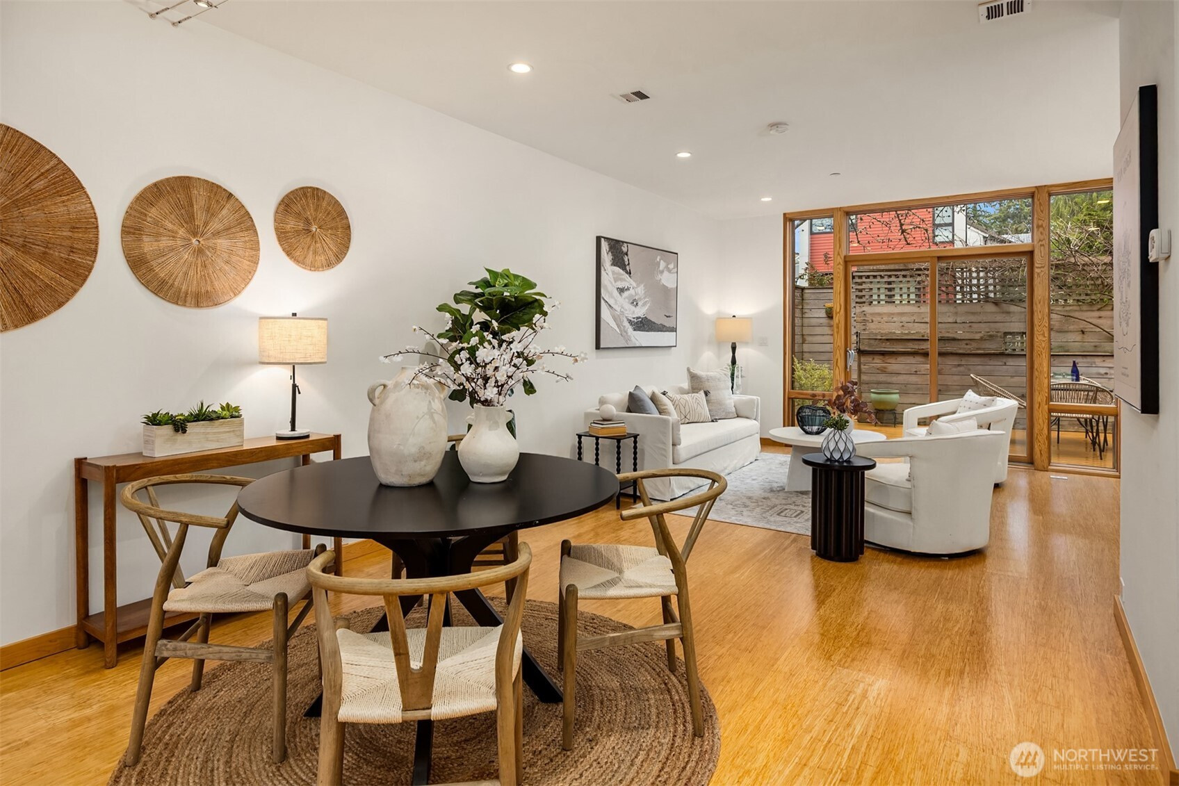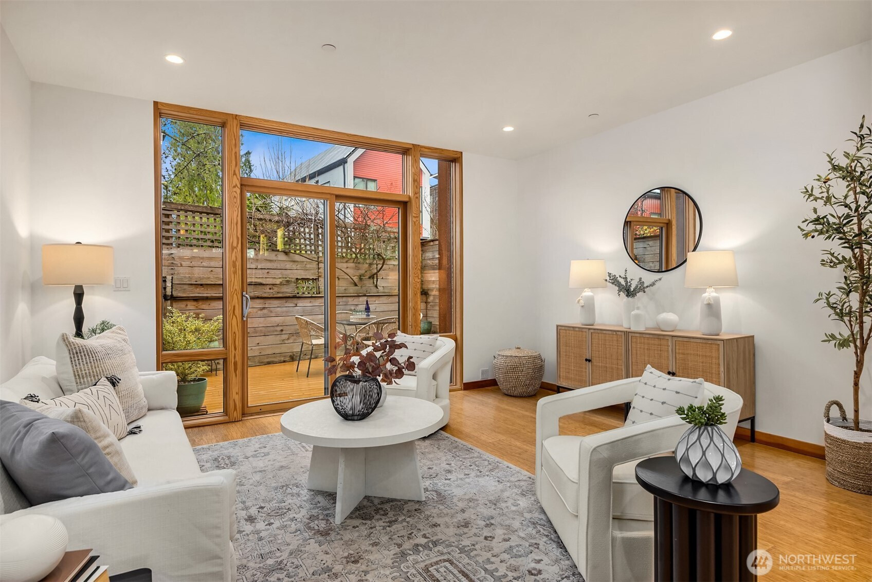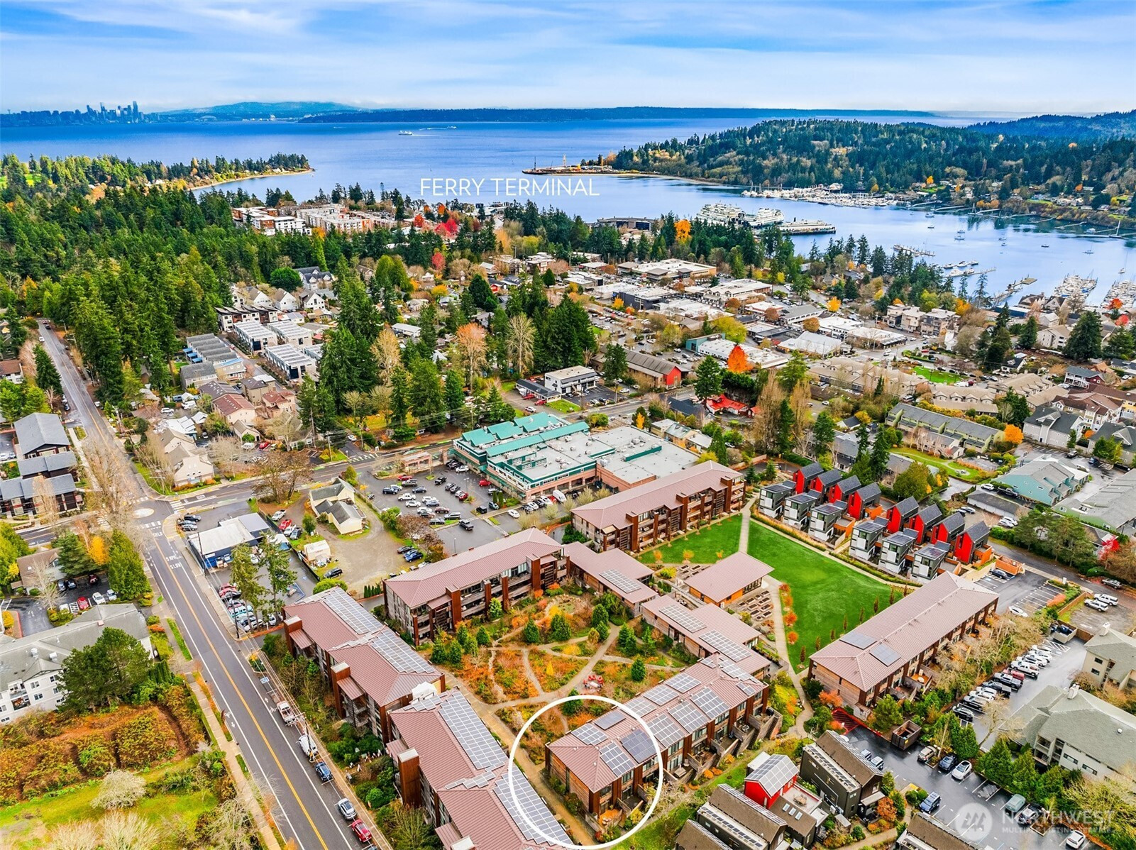 Wonderful two-bedroom, end unit townhome in Grow Community, designed and built with sustainability in mind. A covered front porch overlooks the Grove, landscaped with Northwest native plants. The home is light and bright with ample windows and thoughtful lighting design. Green features such as an induction range, bamboo flooring and wool carpeting complement the home. Two second floor bedrooms both have ensuite bathrooms and lovely views. Enjoy the west-facing, private deck for relaxation and container gardening. The underground, private parking connects directly to the home and contains a large storage closet. Grow Community is centrally located on the west end of town, with excellent proximity to shopping, amenities and the ferry.