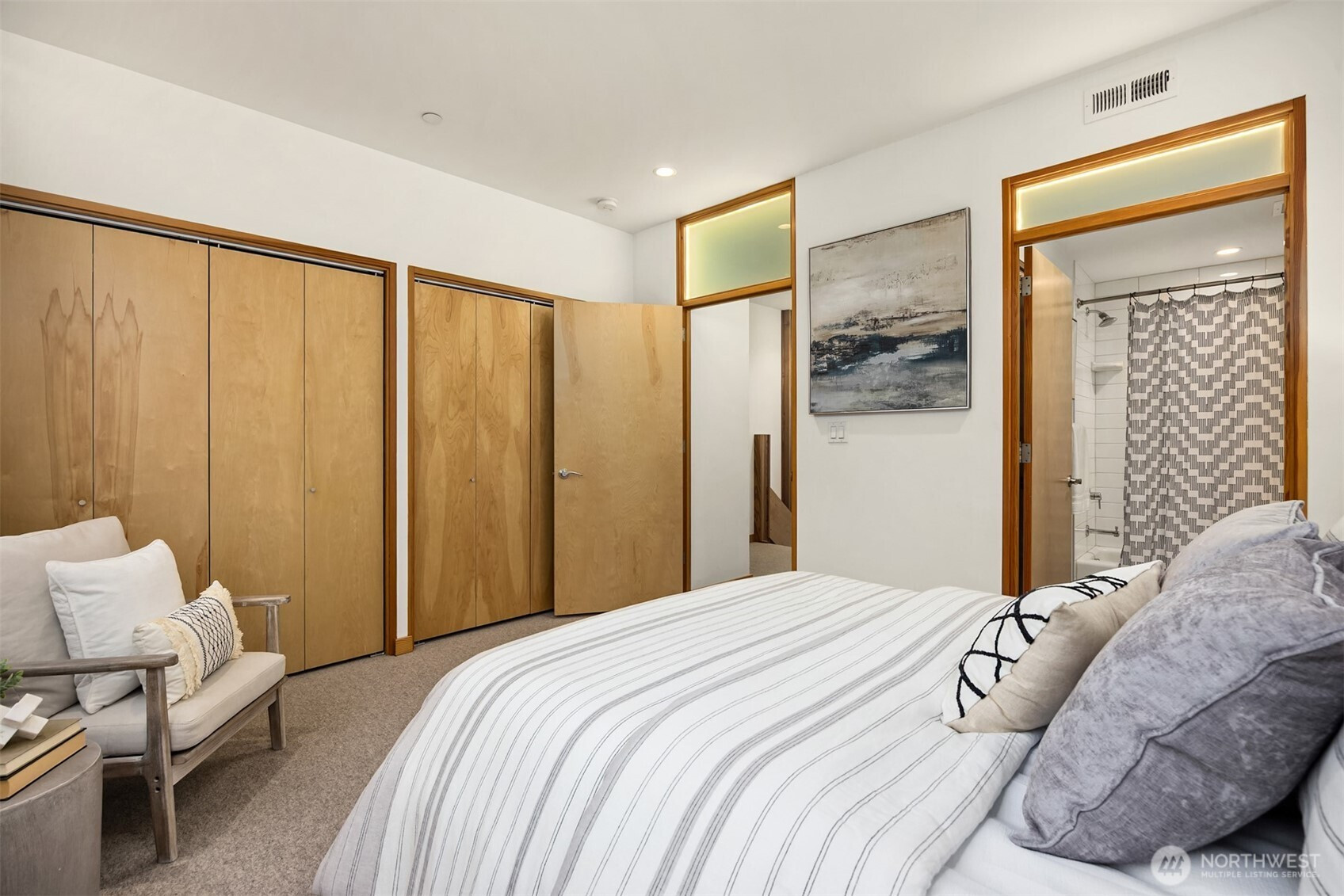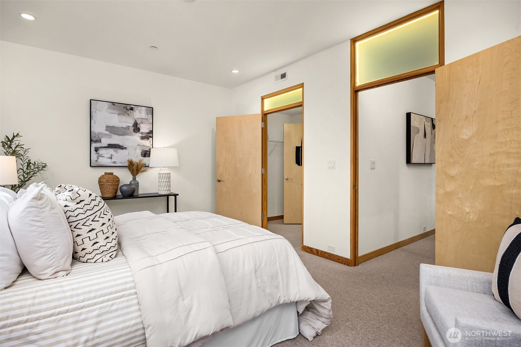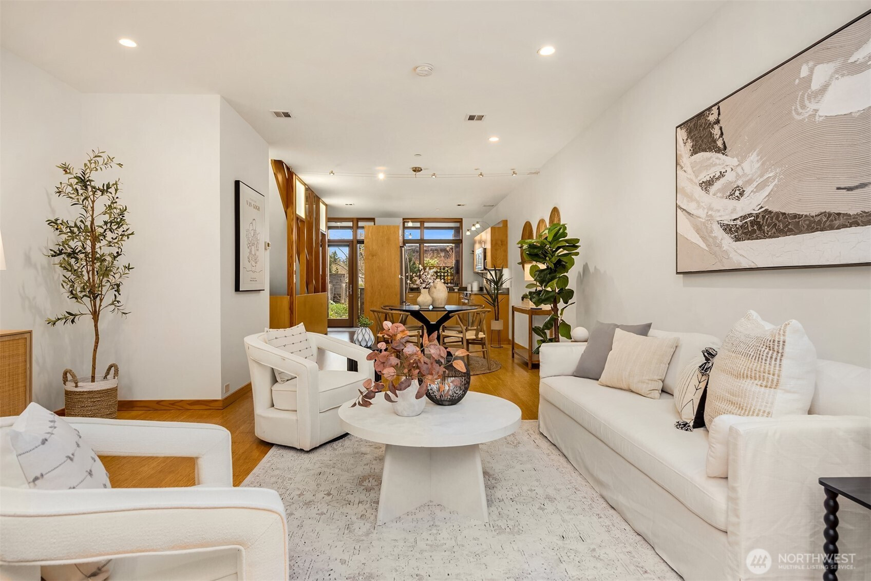 Wonderful two-bedroom, end unit townhome in Grow Community, designed and built with sustainability in mind. A covered front porch overlooks the Grove, landscaped with Northwest native plants. The home is light and bright with ample windows and thoughtful lighting design. Green features such as an induction range, bamboo flooring and wool carpeting complement the home. Two second floor bedrooms both have ensuite bathrooms and lovely views. Enjoy the west-facing, private deck for relaxation and container gardening. The underground, private parking connects directly to the home and contains a large storage closet. Grow Community is centrally located on the west end of town, with excellent proximity to shopping, amenities and the ferry.