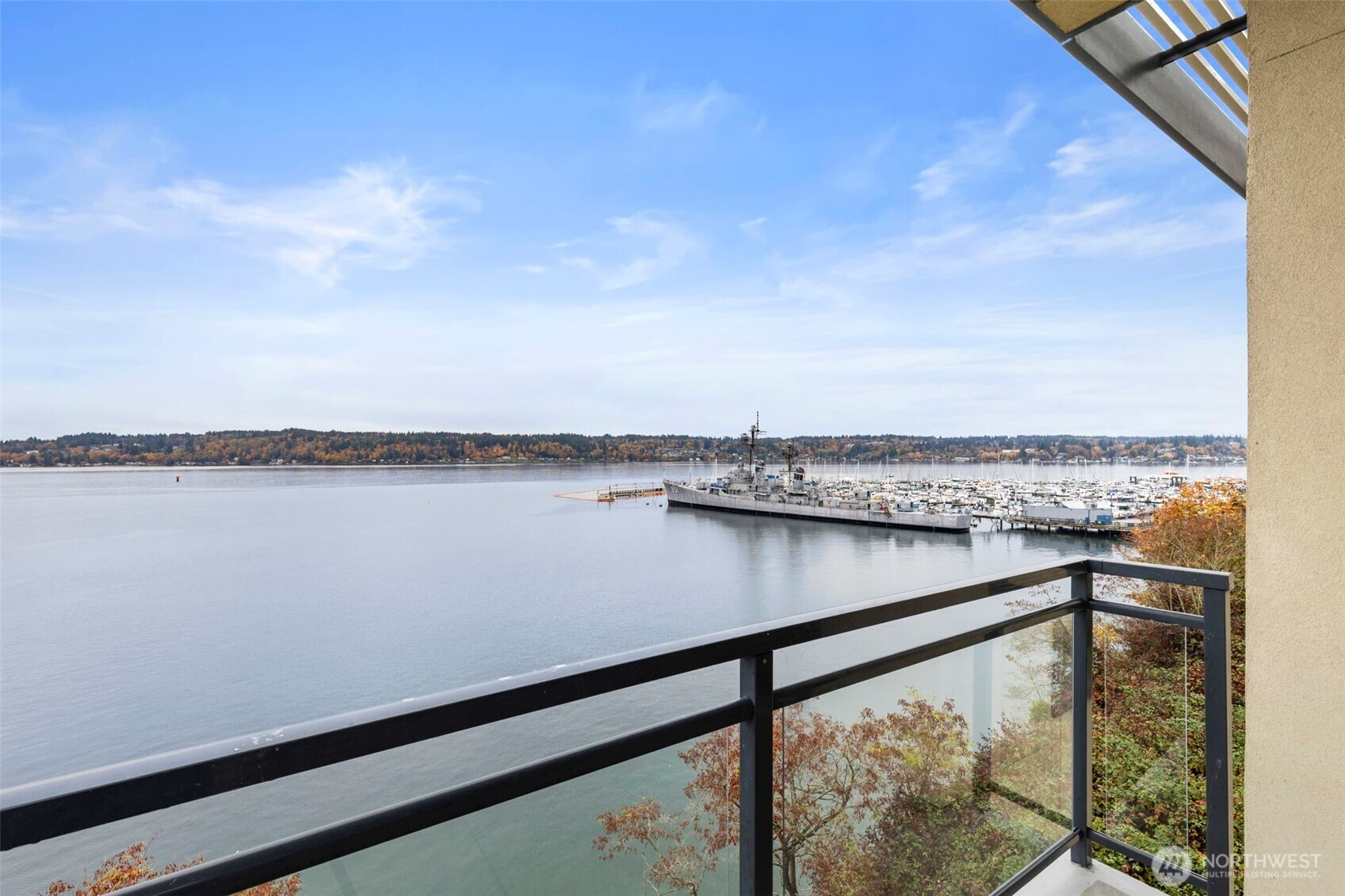 Beautiful Luxurious Ground floor waterfront Condo with open floor plan. Only 3 blocks from ferry to Seattle. Close to restaurants and shops. Covered Corner balcony/patio with beautiful unobstructed Views of the bay, Manette bridge and Turner Joy and top of Mt. Rainier!! The kitchen has granite counter tops and stainless steel appliances. Two bedrooms and two full bathrooms. You will also have two assigned covered parking spaces. Amenities include: Fitness room, Theater, waterfront lounge with kitchen facilities and BBQ. Great for those great get togethers! Two pets are allowed.