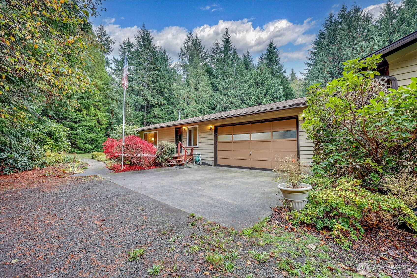 Discover the rare combination of 2.3 lush wooded acres, two self-contained single story homes, and an oversized 960 sq ft shop in Poulsbo! Having a 2nd home offers a variety of possibilities from multi-generational living to rental income! The main home offers 3 bedrooms, 1¾ baths, a pellet stove for cozy winter evenings, attached garage and a brand-new roof. Tucked off its own driveway, the second home features 2 bedrooms, 1½ baths, its own wood stove, and a detached carport. The property also hosts a 960sqft detached garage/shop with a RV carport and an additional large detached shed in the back yard. Located between downtown Poulsbo and Bainbridge Island, this is a rare blend of privacy, versatility, and convenience.