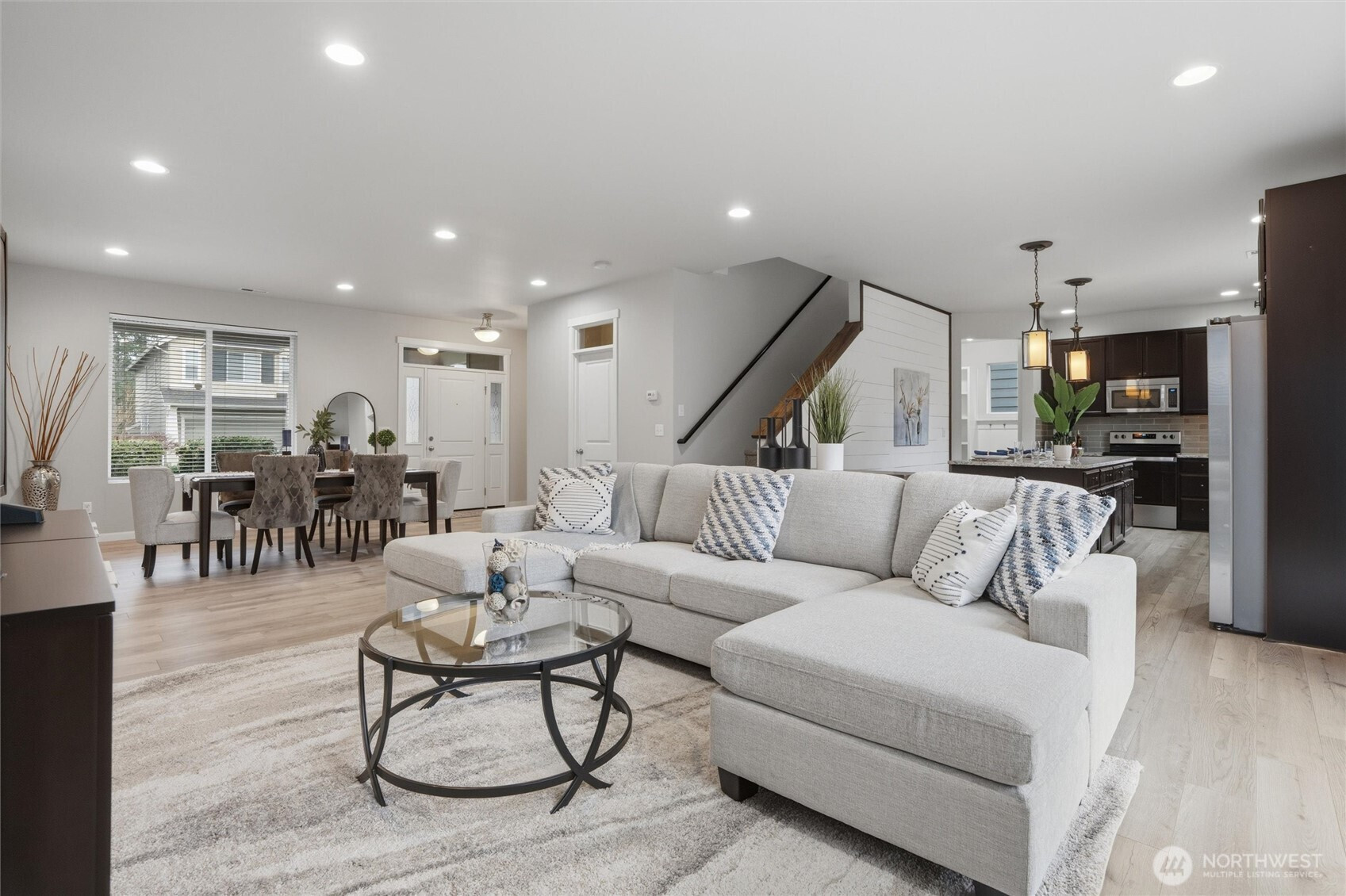 Move-in ready 3-bedroom, 2.5-bath home in McCormick Meadows. New carpet and laminate flooring throughout give the interior a clean, updated feel from the moment you walk in. Open-plan living, dining, and kitchen with a large granite island, walk-in pantry, and ample storage. Mudroom off the 2-car garage keeps the chaos of daily life where it belongs. Upstairs, the primary suite features a large walk-in closet and spacious en suite bathroom. The versatile loft works as a playroom, home office, or second living area with a separate laundry room nearby. Central A/C keeps the home comfortable year-round. Fenced backyard offers privacy and space for pets, gatherings, gardening, or simply unwinding. Convenient to local parks, the future McCormick Village retail center, golf, highways, and nearby bases/ferry routes.