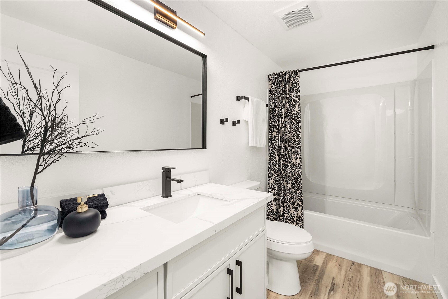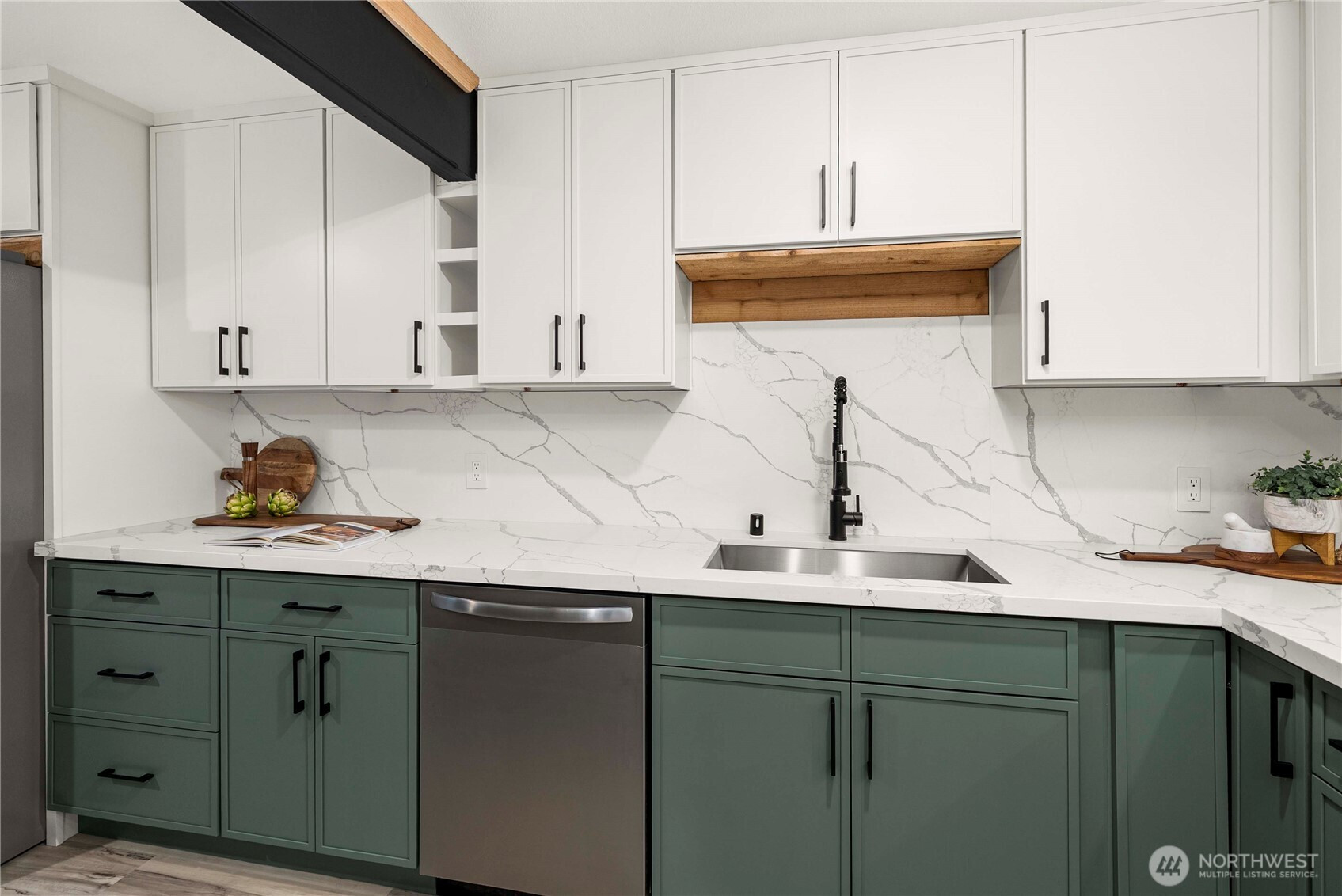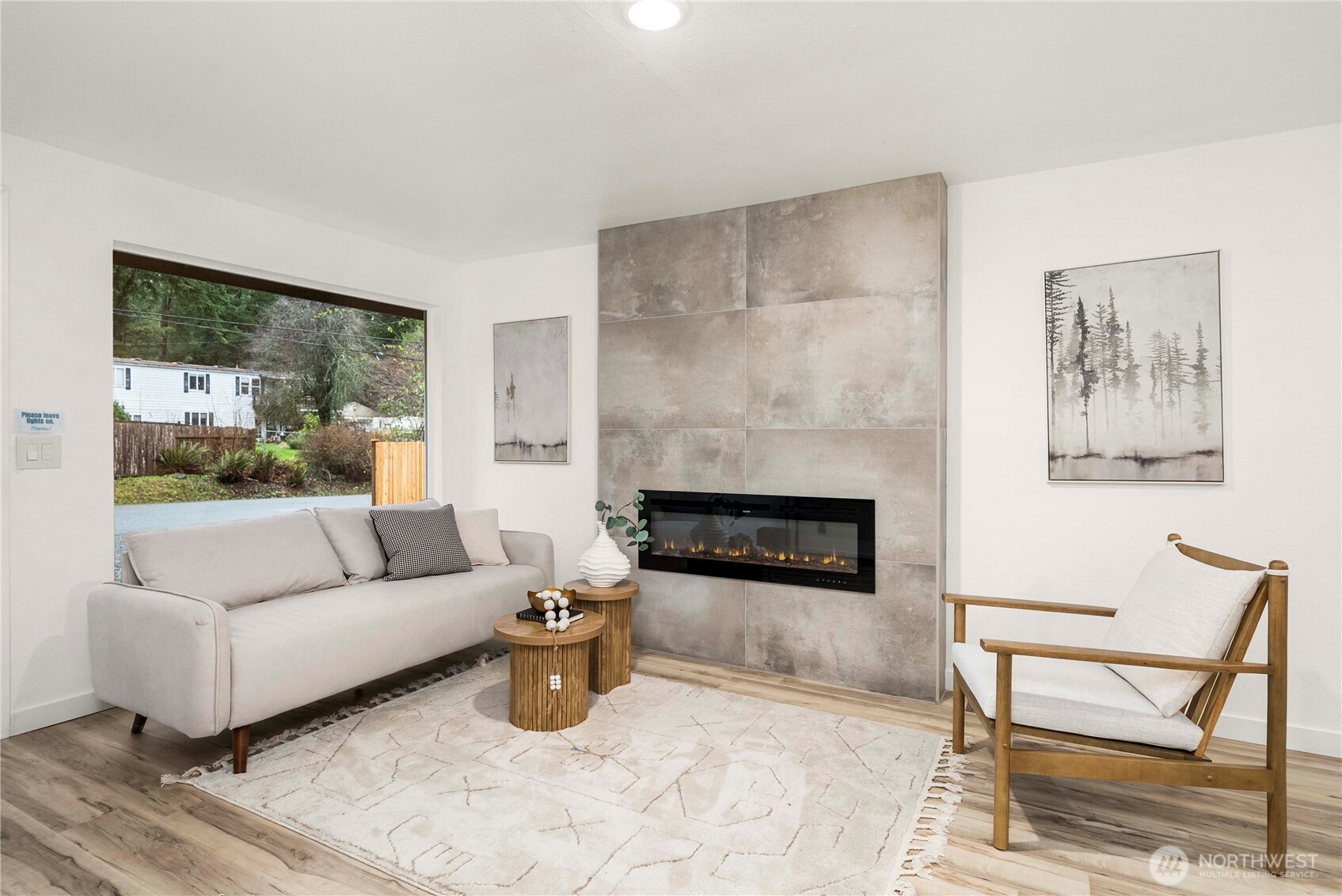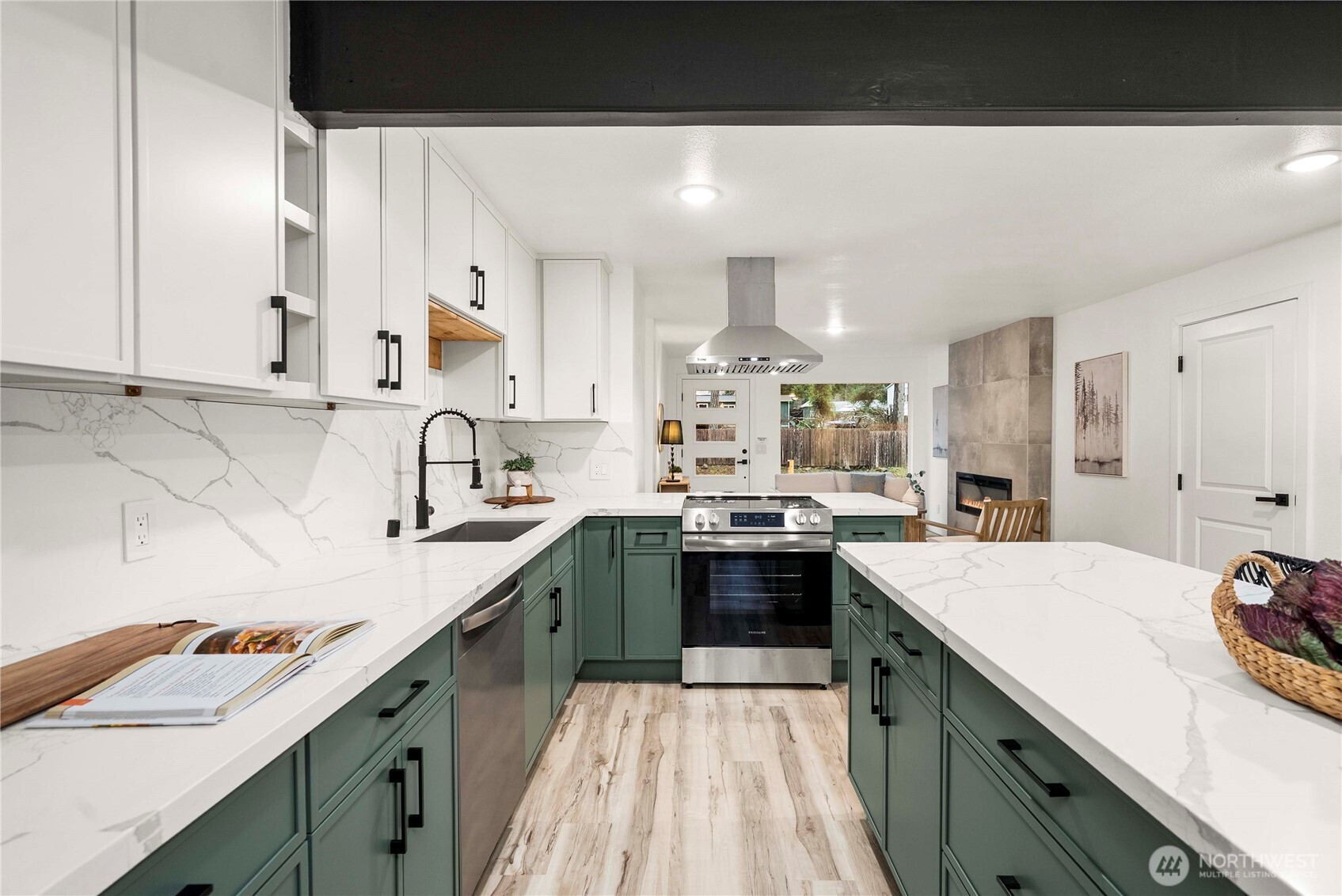 Fresh, modern, and completely move-in ready, this completely remodeled Port Orchard home lets you truly live in style from the moment you walk in. Stunning sage and white cabinetry, stainless appliances, quartz counters, a large island, luxury vinyl plank floors, and a custom wood-slat accent wall create a clean, contemporary look throughout. The sleek fireplace adds a cozy focal point in the living area, while the bright kitchen opens easily to the main living space. A covered patio and fully fenced yard extend your living outdoors, and the designer laundry room adds a thoughtful touch. With room to park a boat and an RV, this home is designed for both everyday living and adventure.