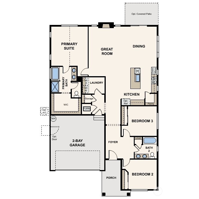 Featuring a thoughtfully designed rambler style layout, the Aurora at McCormick Trails offers ample private and common living space. Toward the front of the home, two generous bedrooms share a full hall bath. A third bedroom—the lavish primary suite—is secluded on the other side of the home and features an en-suite bath and roomy walk-in closet. Additional highlights include a spacious great room that flows into an elegant open dining area—with access to a covered patio—which overlooks a well-appointed kitchen boasting a center island and corner pantry. Buyer's Broker must accompany &/or register Buyer at 1st visit.