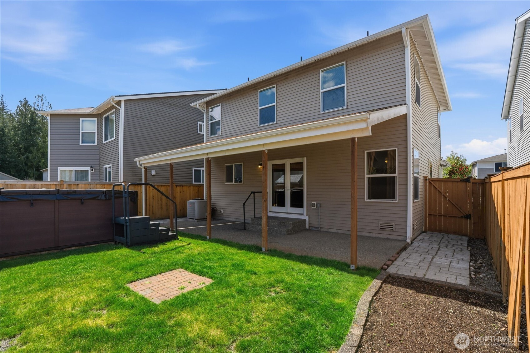 Come see this beautifully updated 3 bedroom 2.5 bath home located in the heart of Port Orchard. The main level features an open floor plan, with rich hardwood floors that span the main living area. The living room flows perfectly into a kitchen with more than enough space for the avid cook or anyone who loves to host. Recent kitchen additions include a new stove and dishwasher. Upstairs, three spacious bedrooms surround a large loft with striking hardwood floors. Two full baths upstairs make it ideal for visiting guests or larger families. Enter the primary suite through French doors and see a generous walk in closet and primary bathroom that includes new fixtures, dual sinks, and a newly installed oversized glass shower. New interior paint throughout, trim, and matte black hardware create a clean, modern feel. Major upgrades—including a new roof in 2018, brand new tankless water heater, and central A/C—give new homeowners peace of mind that the home is built to last for years to come. Relax in the evening or get in a morning swim in the infinity edge wellness spa. Spa comes equipped with accessories and extra filters. Conveniently located near ferries, parks, shopping, and highway access in a safe, welcoming community.