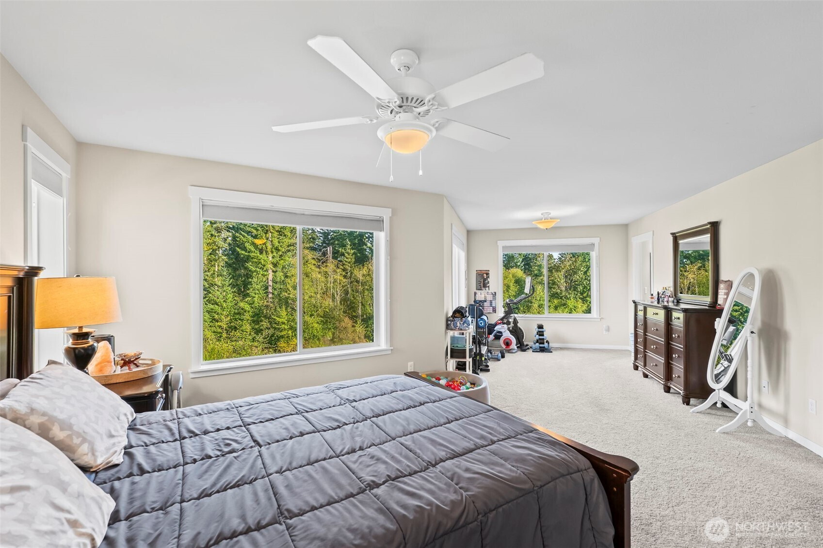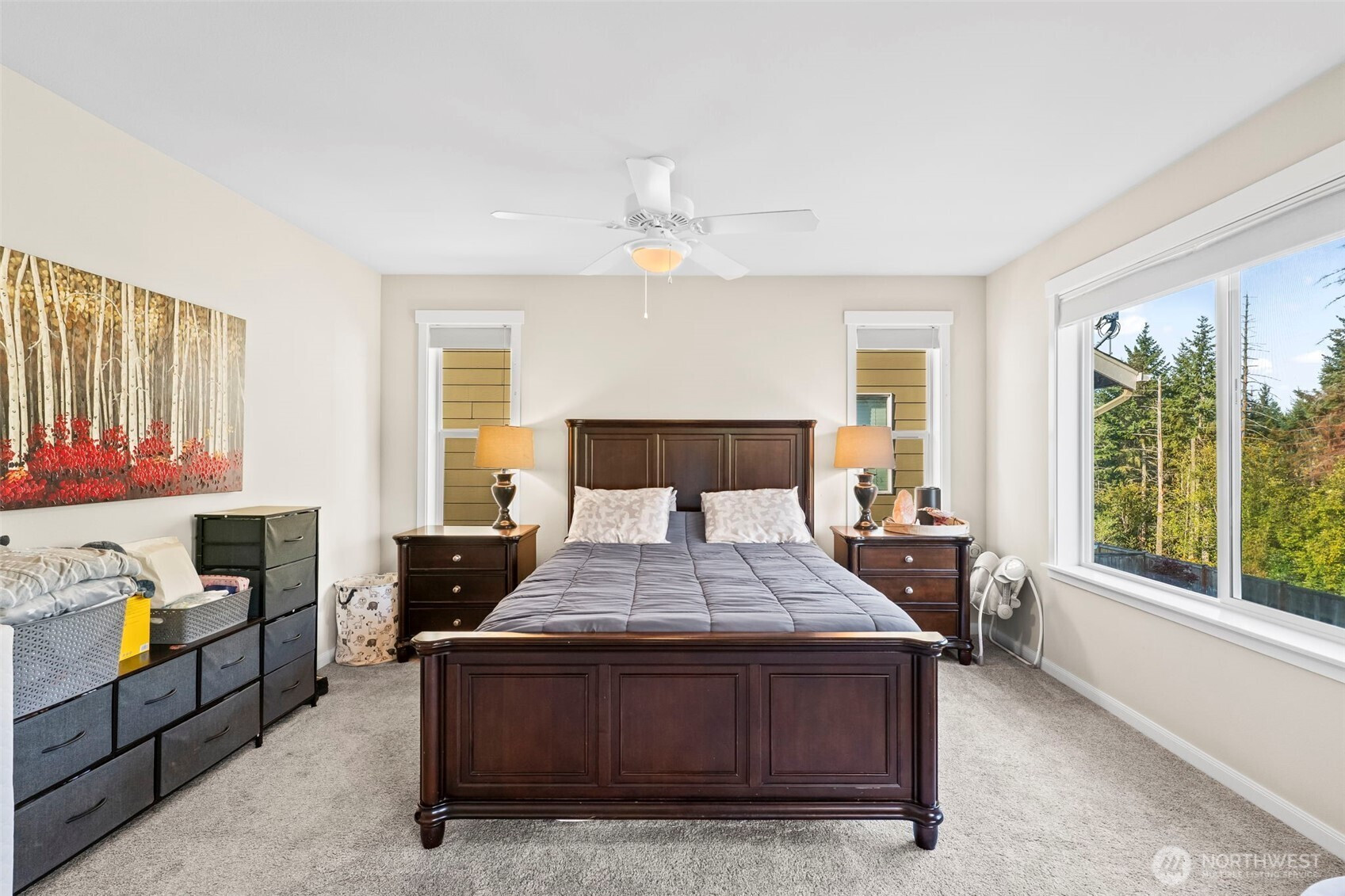 A home with privacy in a neighborhood? This is it. This amazing 3 bed 2.5 bath home looks west to the beautiful Olympic mountains over mature evergreens. The main level off the home features a large great room, private office with french doors, and expansive chefs kitchen and a hidden powder room. Upstairs you land on a loft that is larger than most living rooms, a full bath, and all three bedrooms including the primary suite that is larger than a small apartment and its 5 piece en-suite. Commute to the shipyard? Great! Use the backroads from here and avoid half the traffic.