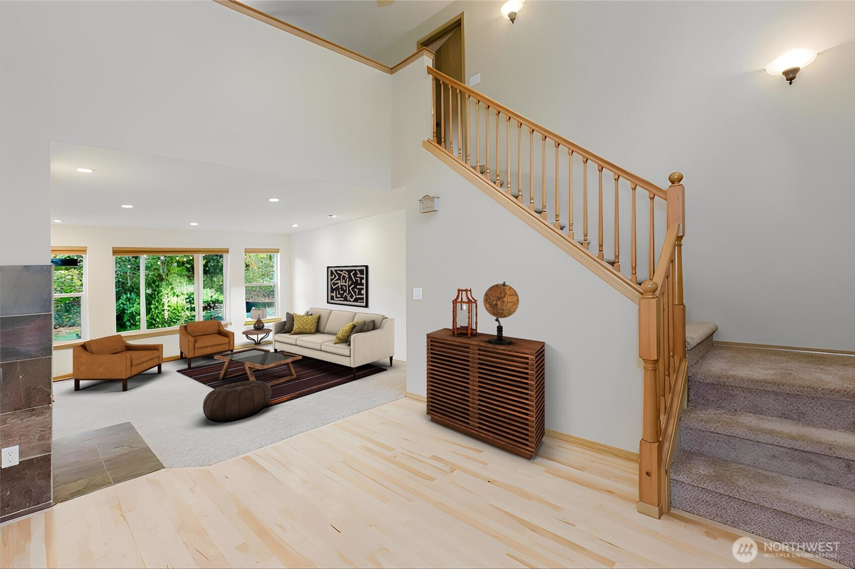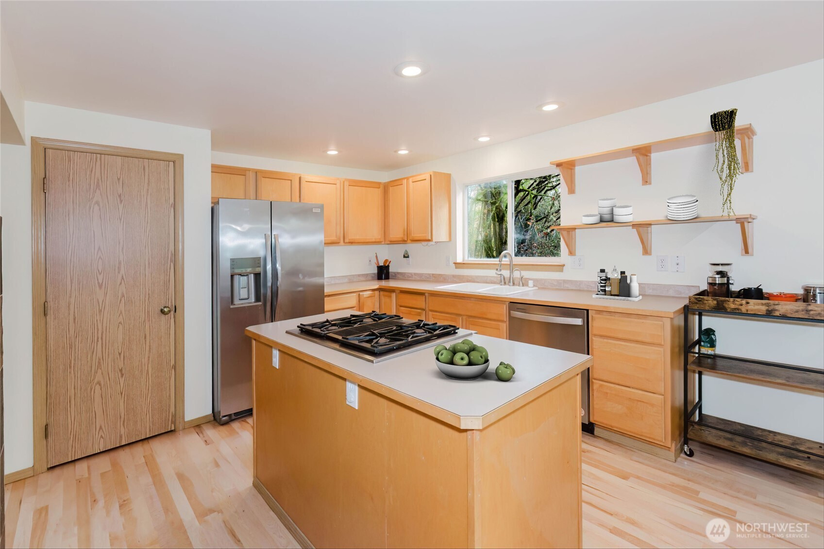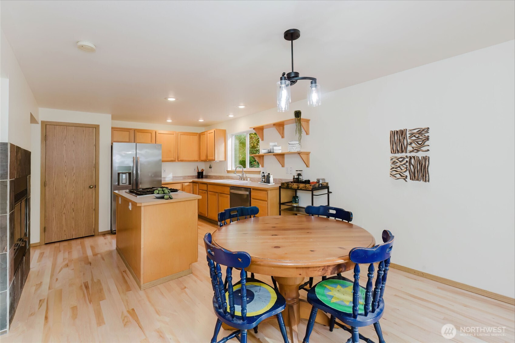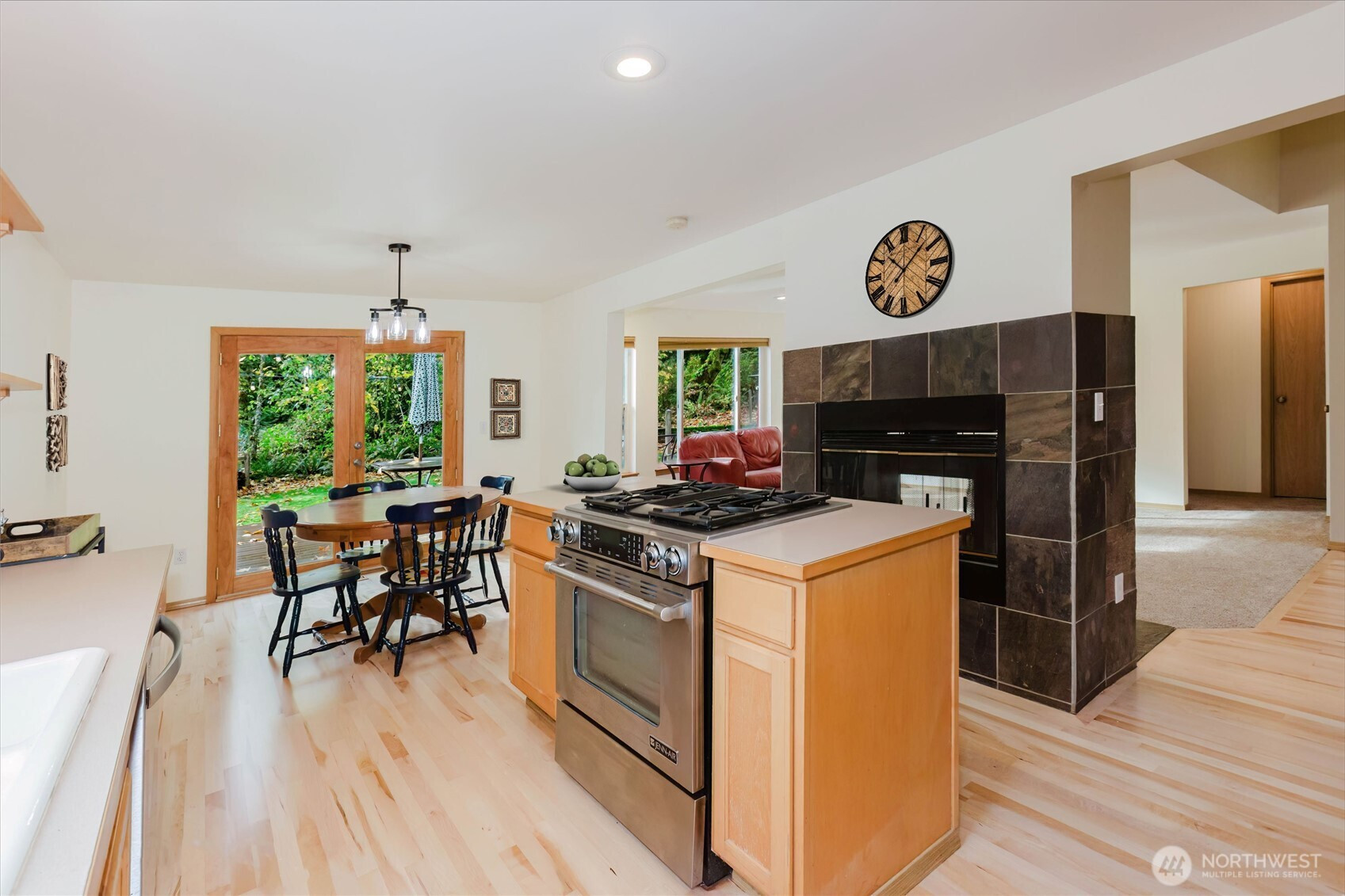 Experience the perfect harmony of modern design and Northwest style in this striking contemporary home, privately set on 2.3 serene acres. A dramatic soaring entry and beautiful flooring lead into light-filled, open-concept living spaces designed for both everyday comfort and effortless entertaining. The family room showcases a stunning wall of windows and a double-sided wood-burning fireplace shared with the dining area, creating a warm and inviting focal point. The open kitchen features a center island with cooktop, stainless steel appliances, and a generous pantry. French doors extend the living space to an expansive deck complete with a hot tub—perfect for gatherings or peaceful evenings under the stars. Upstairs, a flexible loft offers space for a media room, home office, or creative retreat. The primary suite is a true escape with dual vanities, a soaking tub, separate shower, and a walk-in closet with custom built-ins. Outdoor amenities include a firepit, raised garden beds, garden shed, and ample RV parking. Complete with a two-car garage and generator wiring, this exceptional property delivers comfort, versatility, and a tranquil connection to nature.