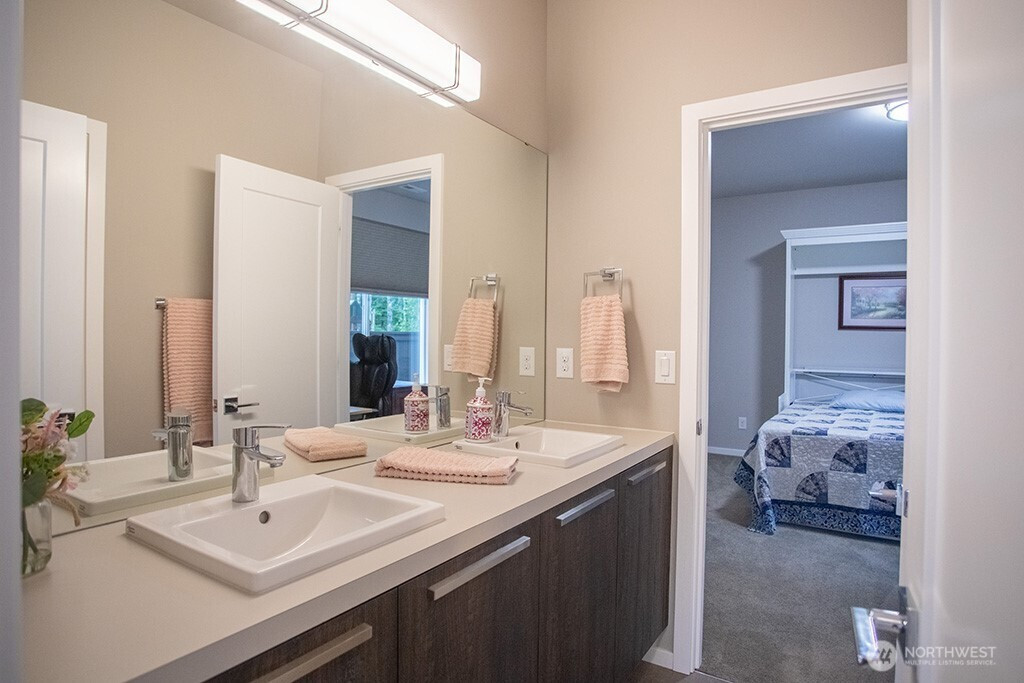 This immaculate, 1-story, modern home features an open layout & 12-ft ceilings. The spacious kitchen has a butler’s pantry, premium finishes and large island. This smart home features automatic LED lighting. High-end window blinds, a laundry sink, and wiring for an EV charger are just a few of the things the owners have added to the home. The luxurious primary suite offers a spa-like ensuite with double sinks, soaking tub & oversized shower. Two additional bedrooms share a convenient Jack & Jill bath and a Murphy bed in one of the rooms adds flexibility. Enjoy your private backyard oasis complete with a fireplace for comfort even on these cold days. Modern luxury, thoughtful design, and move-in ready condition make this a must-see!