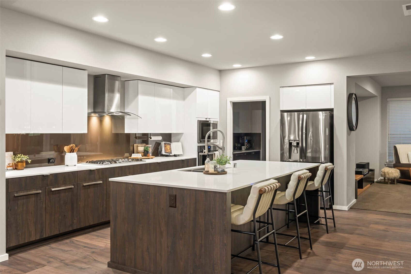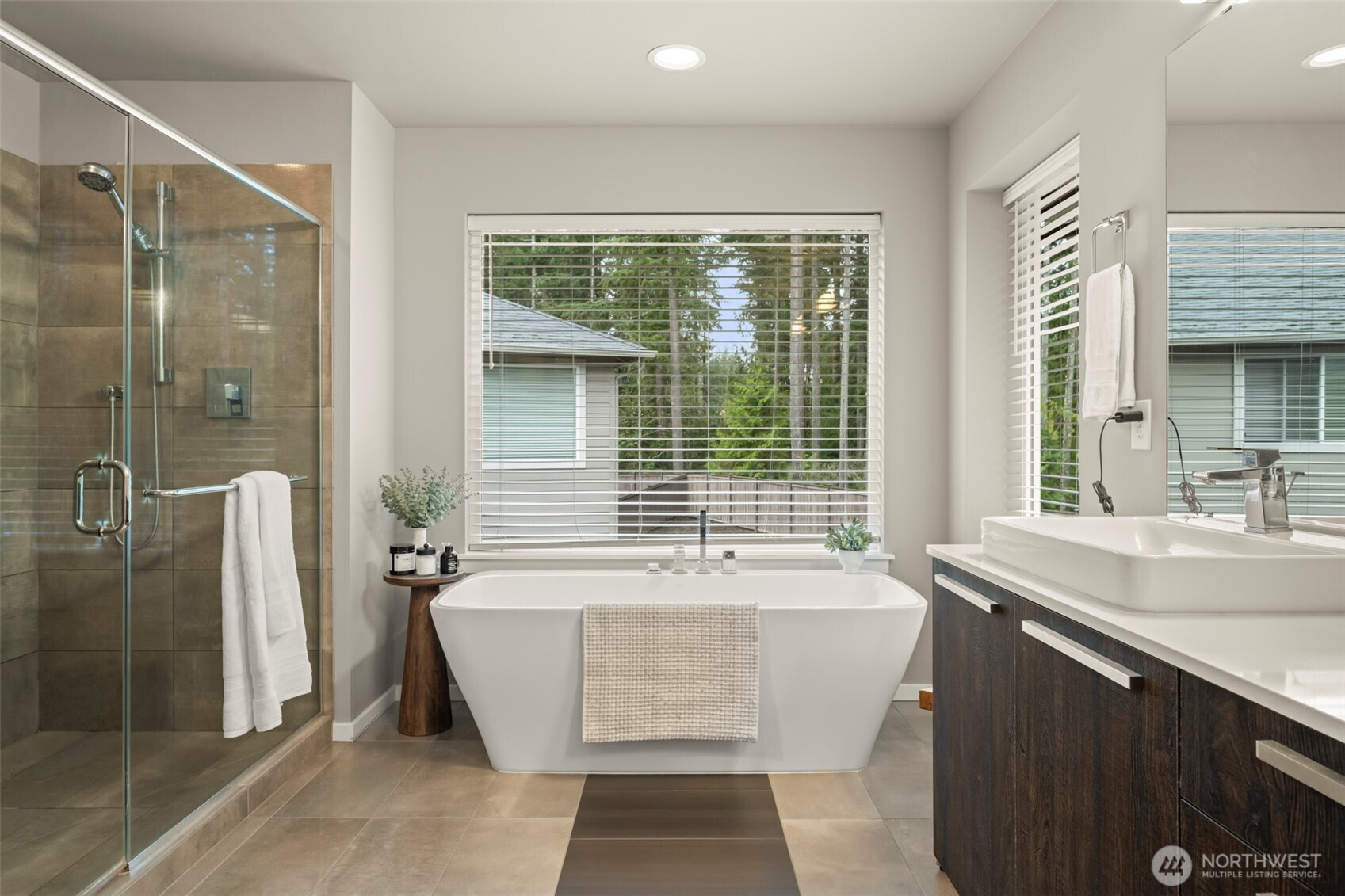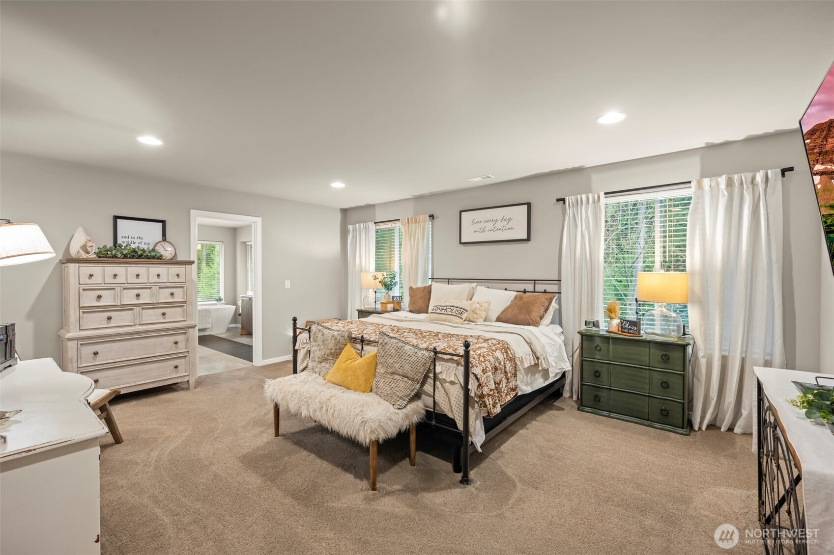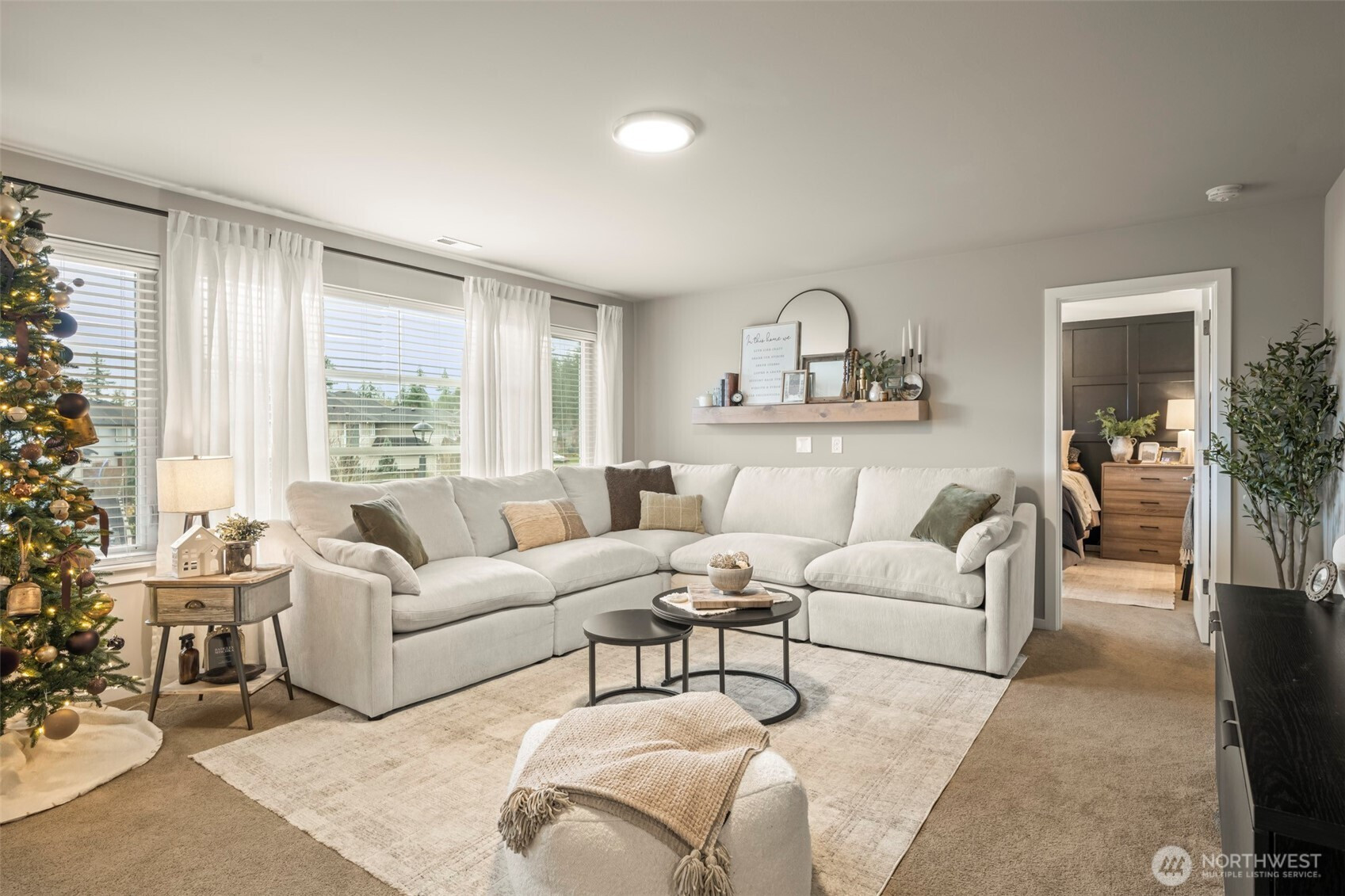 Luxurious, meticulously maintained home in highly sought-after McCormick Woods, offering refined comfort & thoughtful design throughout. Main level features private office, vaulted-ceiling living room, & family room with large movie screen—perfect for entertaining or relaxing nights in. Chef’s kitchen showcases SS appliances, gas cooktop, oversized island, butler’s pantry w/prep sink, walk-in pantry, & mudroom. Upstairs offers a versatile loft, laundry rm, & well-appointed bdrms, each w/walk-in closet. Primary suite is a peaceful retreat w/spa-inspired soaking tub & oversized shower. Inviting outdoor living incls covered deck w/fireplace & an add'l deck ideal for PNW evenings. Golf course, scenic trails, & amenities complete this lifestyle.
