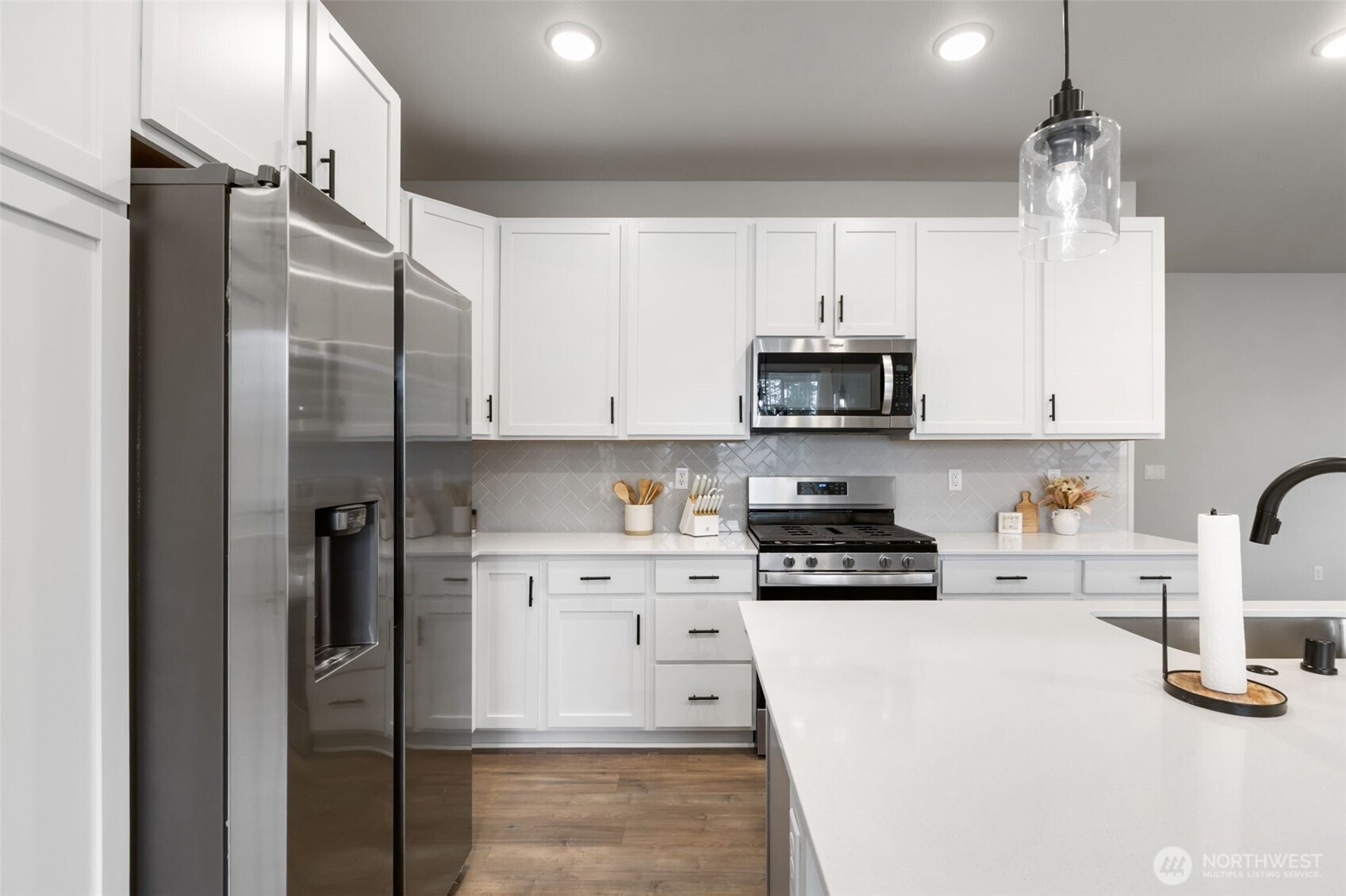 SELLER IS OFFERING A $5,000 BUYER CREDIT IF UNDER CONTRACT BY 12/31. ADDITIONAL 1% LENDER CREDIT AVAILABLE!! Better than new w/all upgrades! This 4 bedrm 3 bath home in McCormick Village offers style, comfort & function. Enjoy an open layout w/ upgraded LVP floors, kitchen w/ gas range, subway tile backsplash, quartz counters & eat-in space that flows to the covered deck. Main floor bedrm & ¾ bath are ideal for guests or multi-gen living. Upstairs offers a loft, spacious guest rms & a luxe primary suite w/ oversized walk-in shower and closet & laundry also upstairs. Premium lot w/ no rear neighbors, heat pump, & walking distance to future Village retail hub w/ dining, gym, eateries plus all of McCormick Woods golf & Clubhouse amenities!