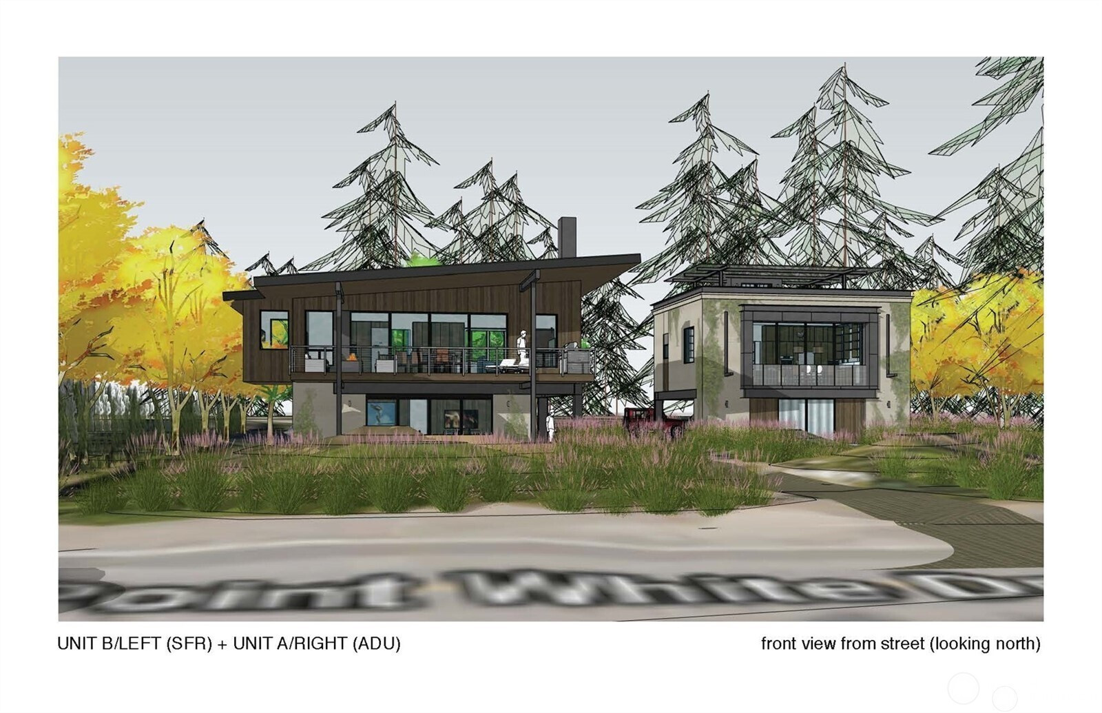 Unique building opportunity near Lynwood Center. This private waterfront, no-bank, sandy beach offering consists of Lot A + Lot B - airspace condo lots that were previously owned separately. Lot A has active permit for a 900sf unit, Lot B has an active permit for primary residence. Permitted plans included in the list price. Build as designed, or submit for a permit revision to construct your own design within the approved building sites. Close to restaurants, shops, parks, and the extensive Gazzam Lake Trail Network. Don't miss out on this opportunity to build your dreams and be part of all that Lynwood Center and Pleasant Beach Village have to offer!