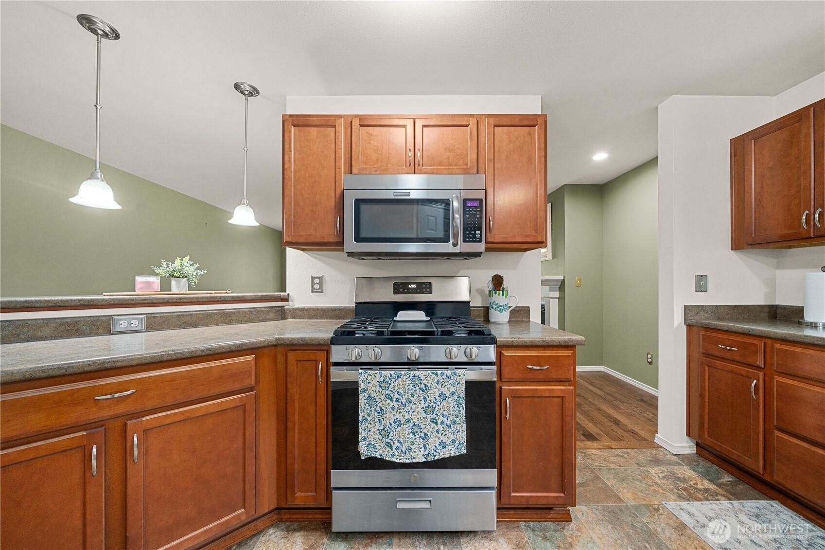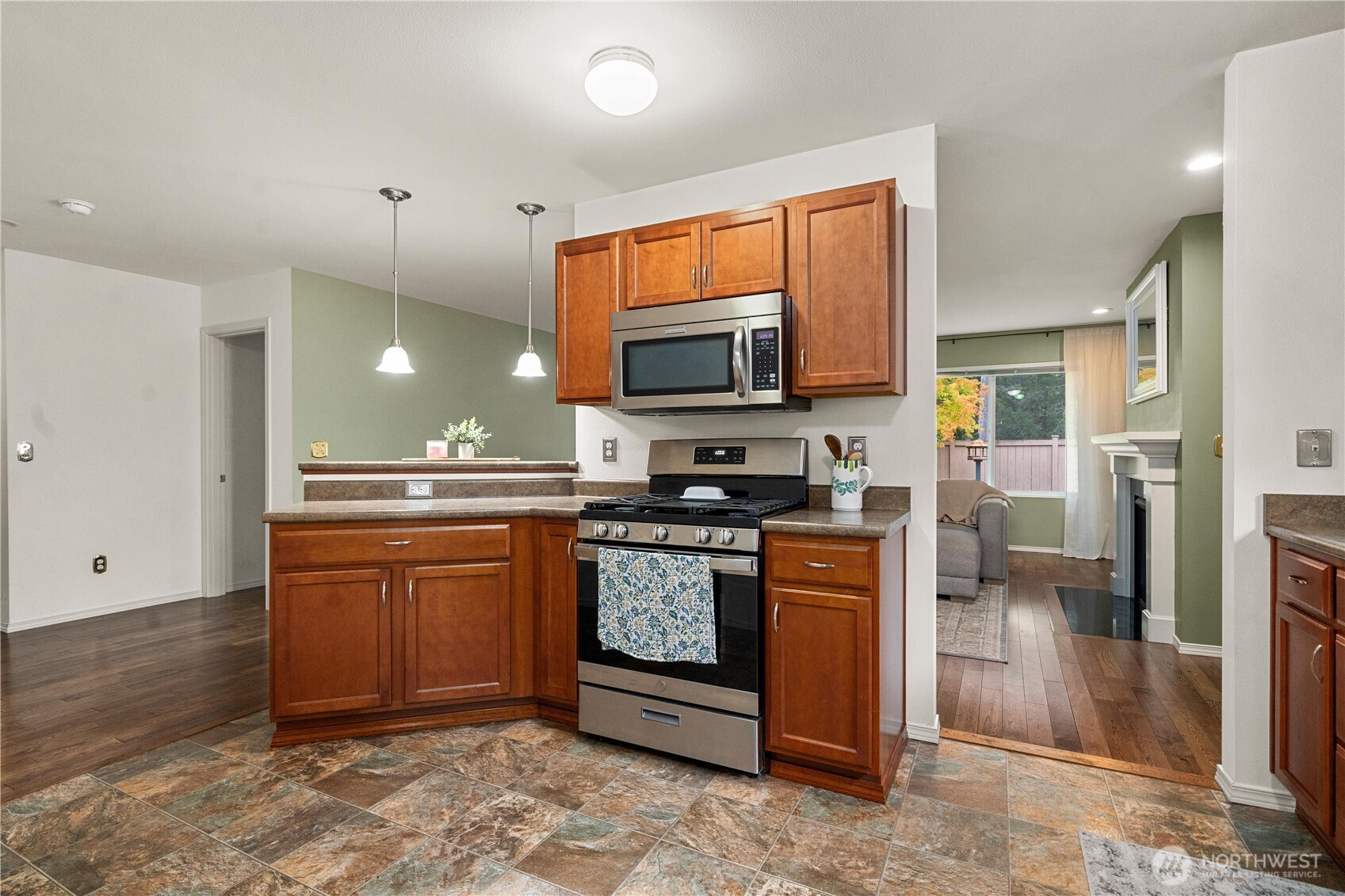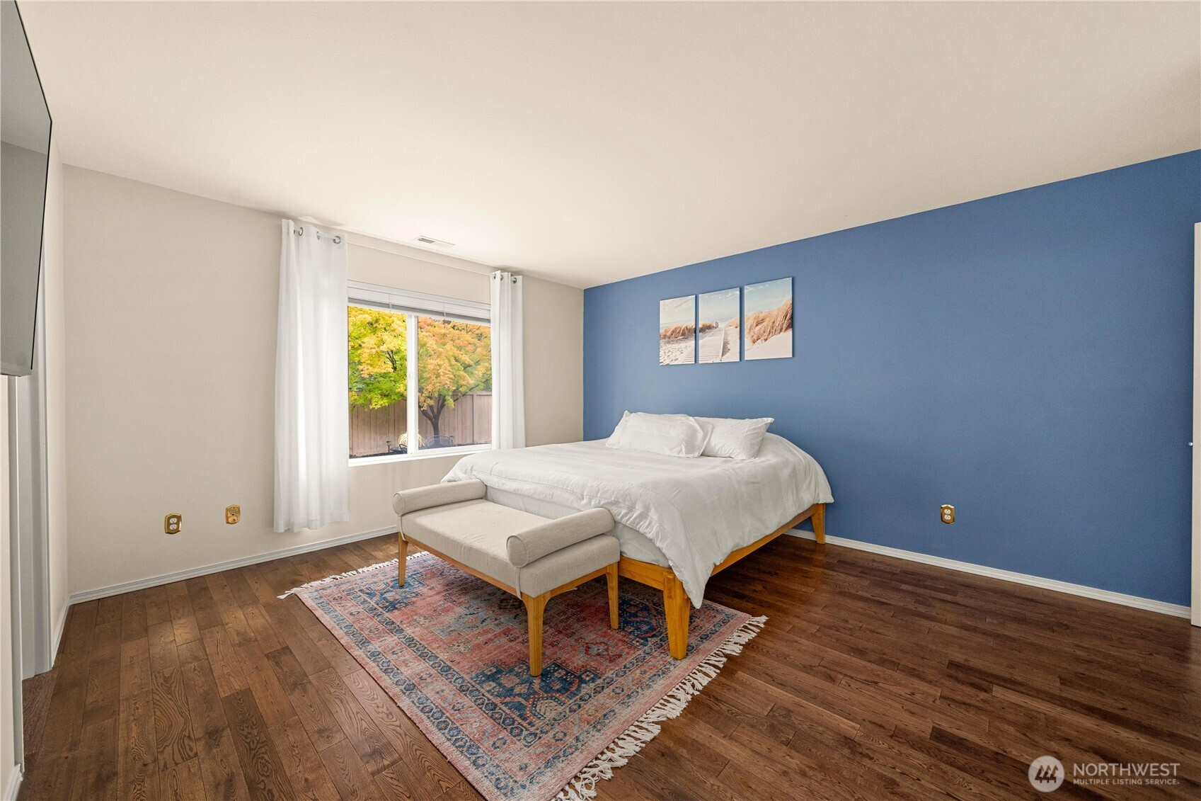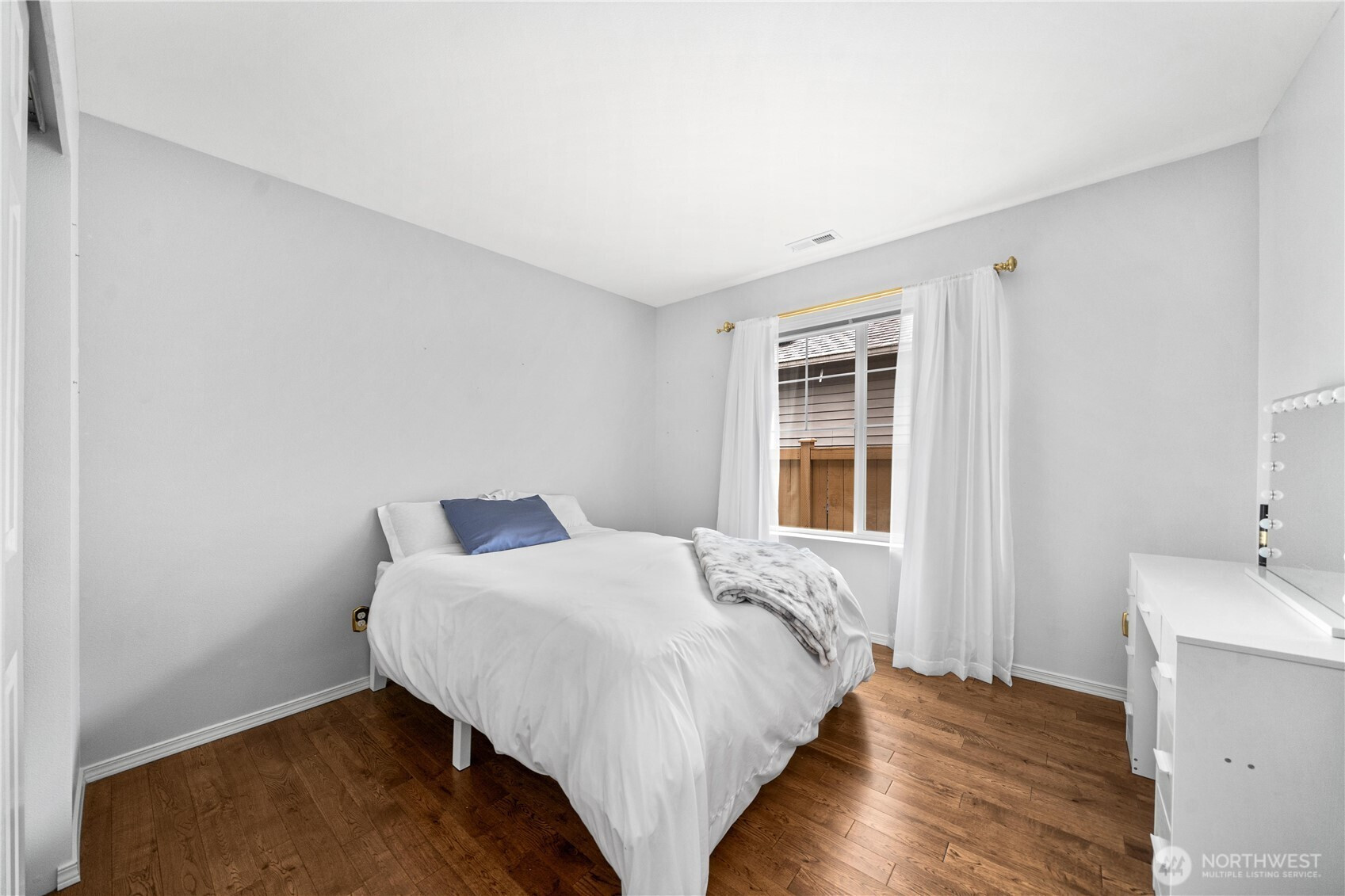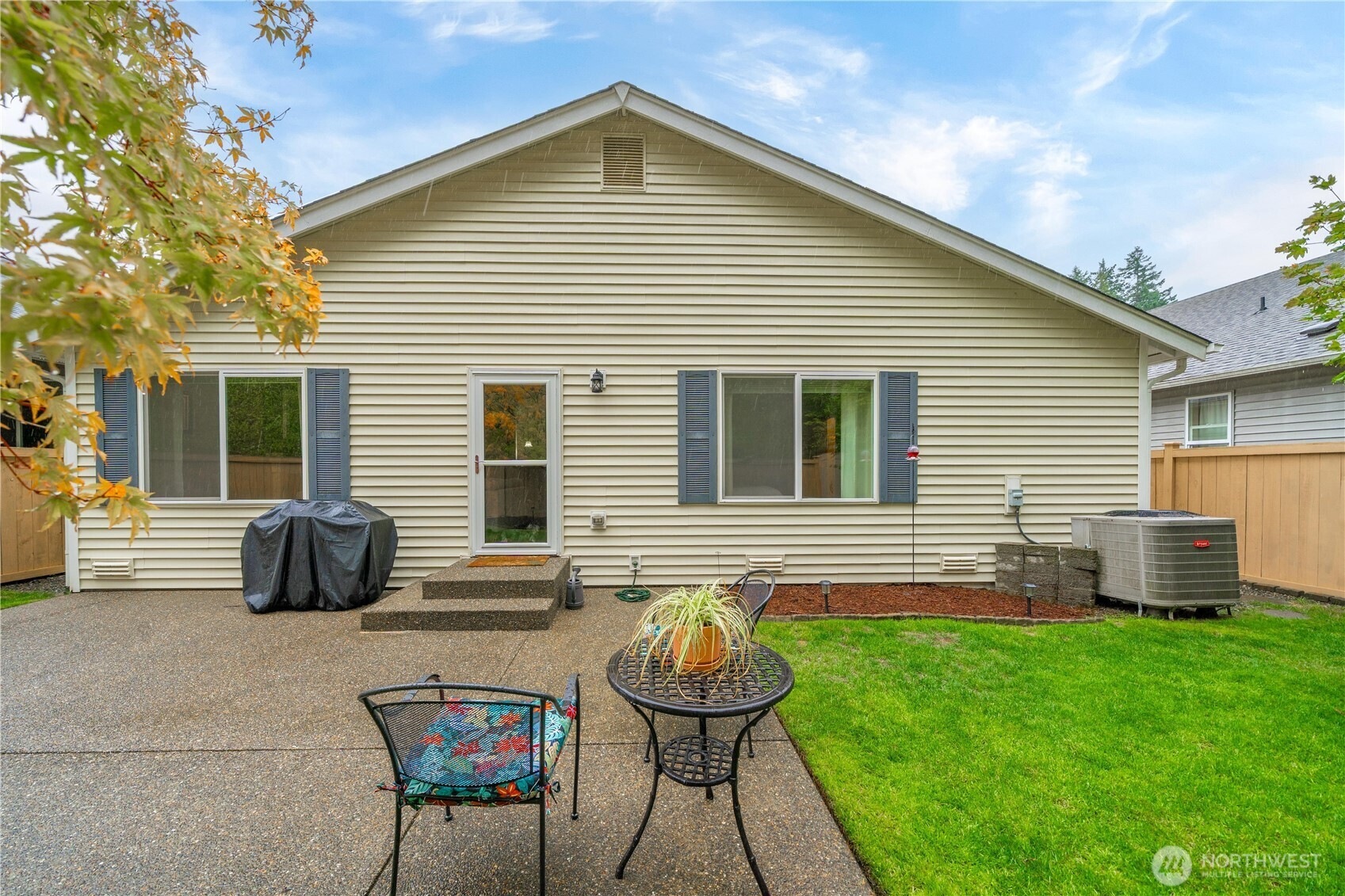 Don’t miss this beautifully maintained rambler in the highly sought after Ridge at McCormick Woods community. Tucked against a serene greenbelt with nearby parks and trails, this home captures the best of Pacific Northwest living. Step inside to gleaming hardwood floors that carry throughout, creating a warm and inviting atmosphere. The thoughtful layout features 3 bedrooms and 2 full baths, including a spacious primary suite with a relaxing bath retreat. Outdoors, the fenced backyard offers privacy with a patio and storage shed—perfect for entertaining, gardening, or pets. Stay comfortable year-round with central A/C.