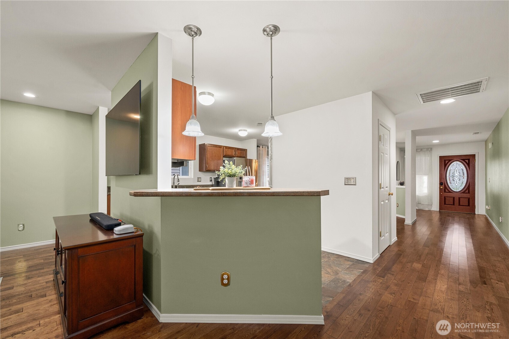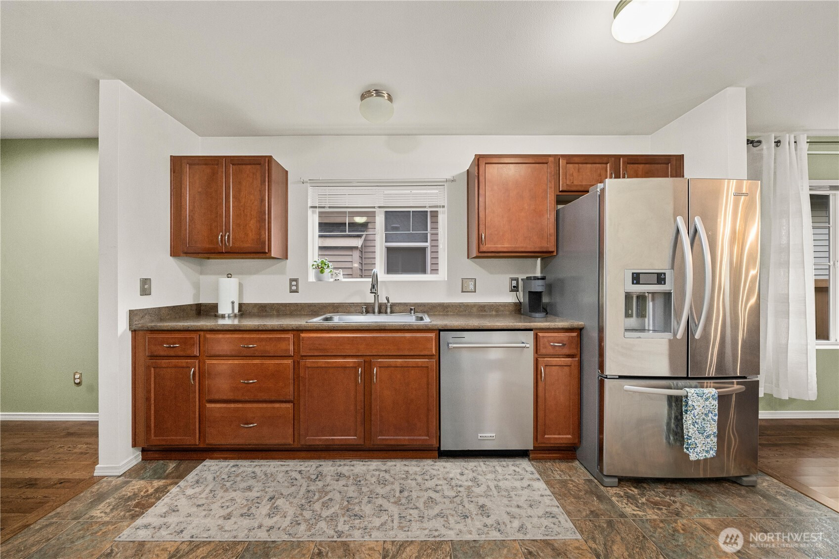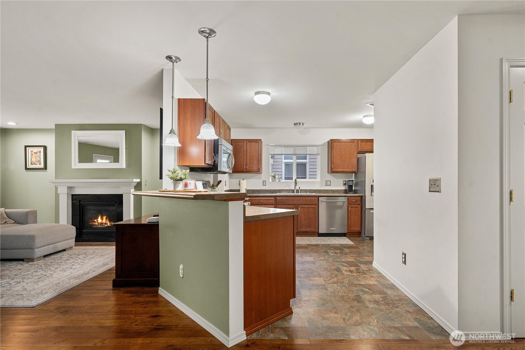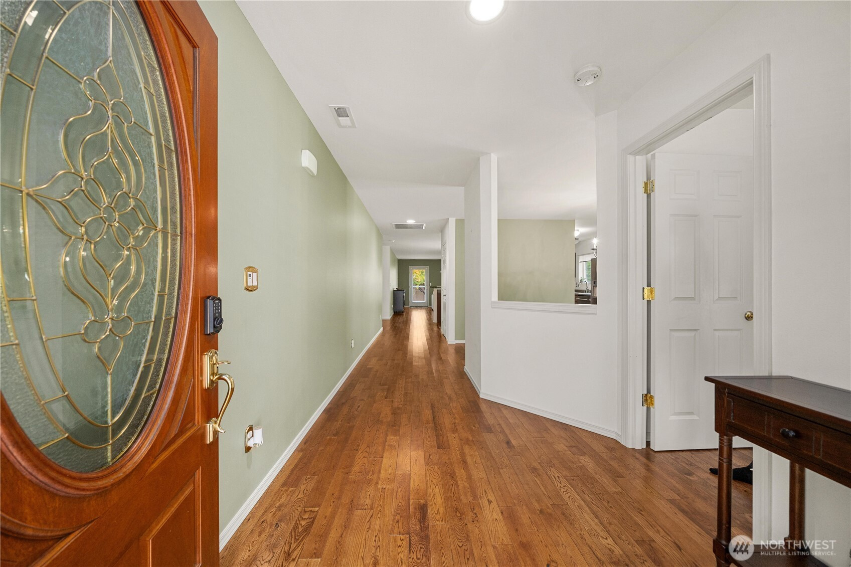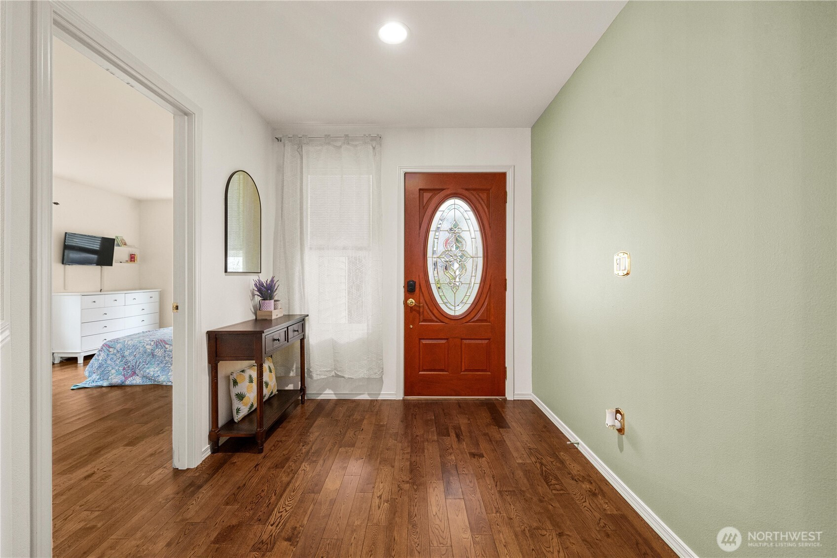 Don’t miss this beautifully maintained rambler in the highly sought after Ridge at McCormick Woods community. Tucked against a serene greenbelt with nearby parks and trails, this home captures the best of Pacific Northwest living. Step inside to gleaming hardwood floors that carry throughout, creating a warm and inviting atmosphere. The thoughtful layout features 3 bedrooms and 2 full baths, including a spacious primary suite with a relaxing bath retreat. Outdoors, the fenced backyard offers privacy with a patio and storage shed—perfect for entertaining, gardening, or pets. Stay comfortable year-round with central A/C.