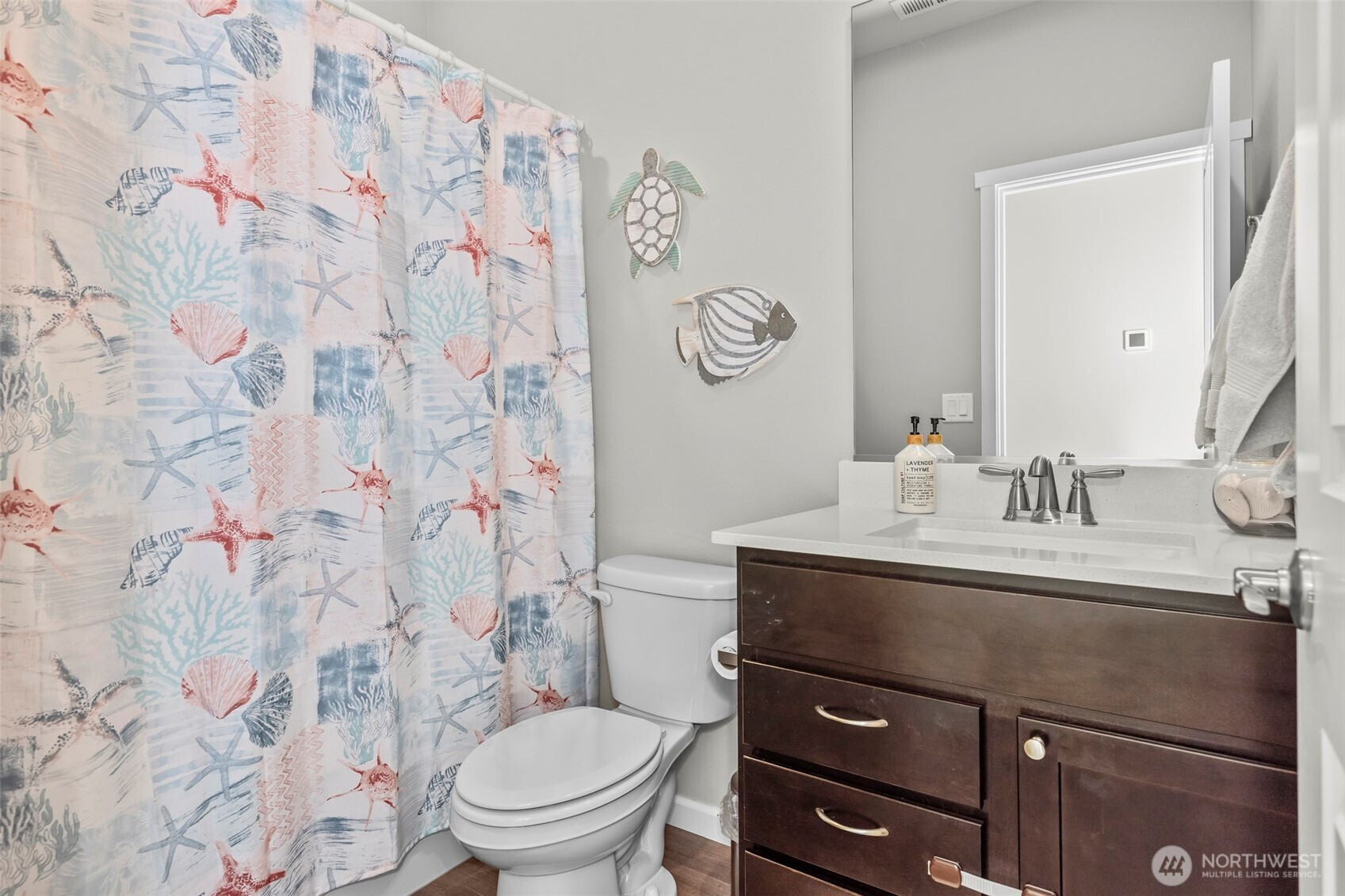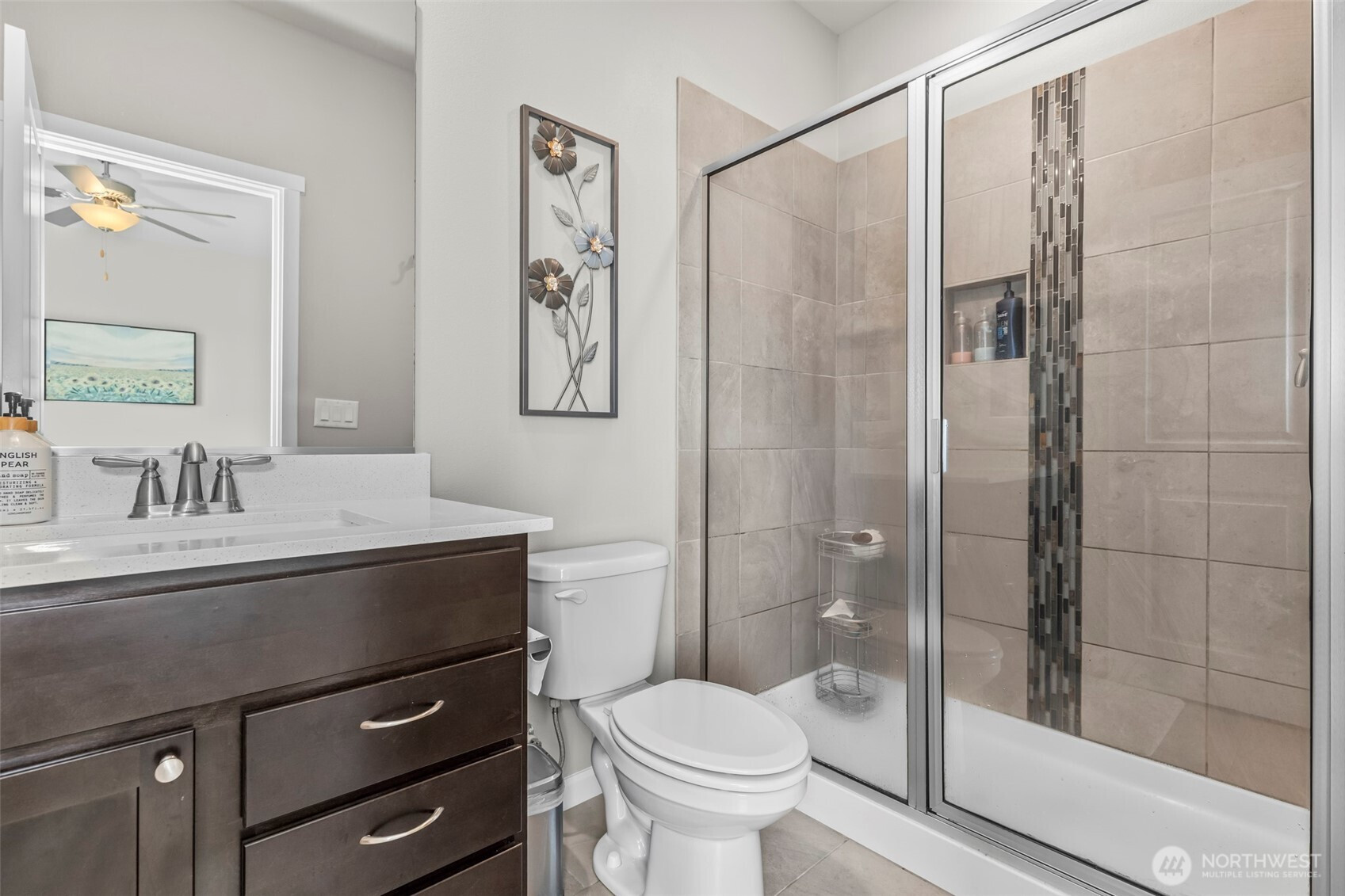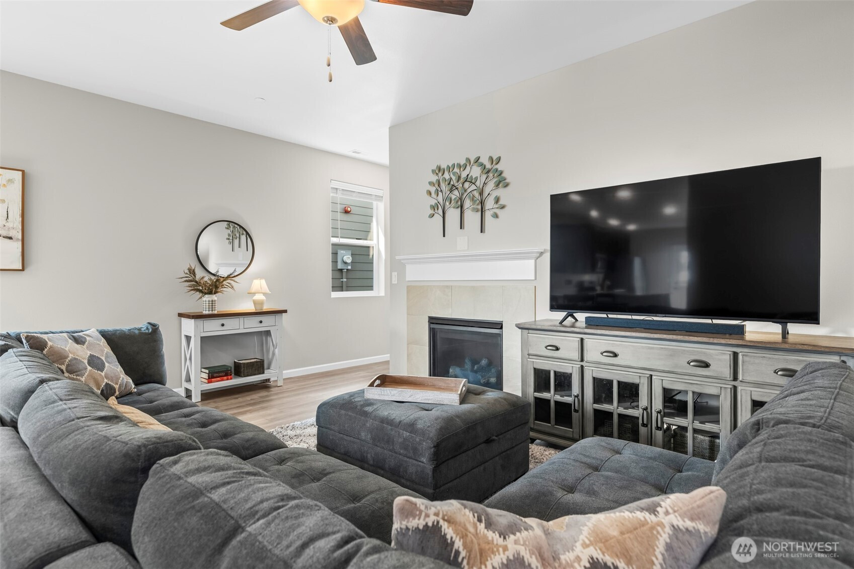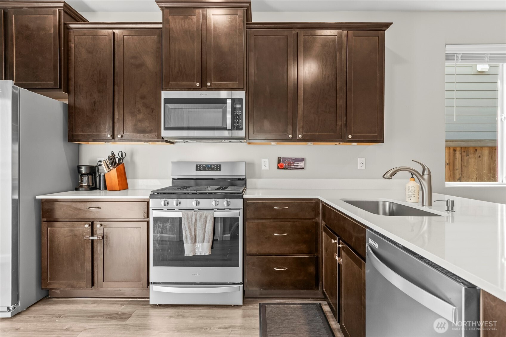 Rare find...built in 2020, this newer home offers 1 level living and is located in the popular Bay Vista community where you have quick access to the Seattle ferry or a short drive to both Bangor & the Navy Shipyard. This home has 3 bedrooms, 2 bathrooms and a 2 car garage with an open floorplan featuring a kitchen with quartz countertops, stainless appliances including gas range and fridge plus a walk-in pantry. Kitchen overlooks the dining space and family room with a gas fireplace keeping this space cozy and warm. Primary bedroom fits a king size bed with plenty of room, walk-in closet and an ensuite with tile walk-in shower. Washer/Dryer stay too! With no home behind, you can enjoy the outdoor space on your wrap around deck. Come see!