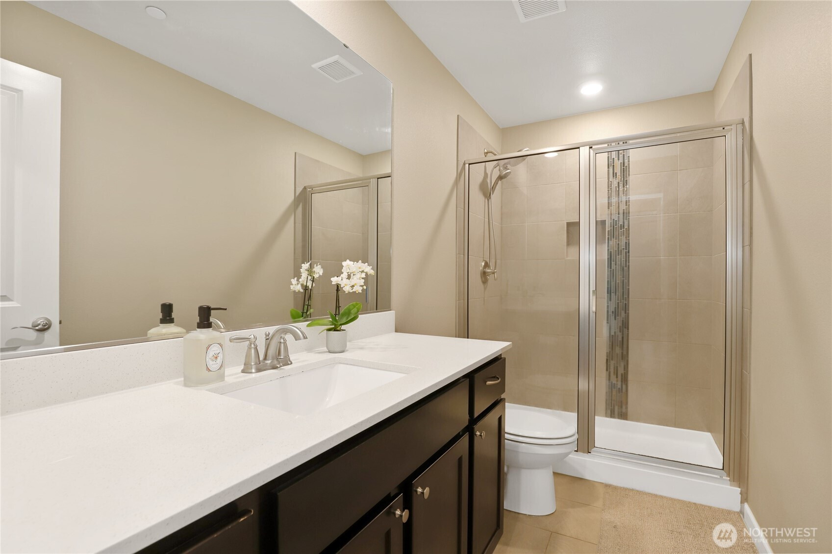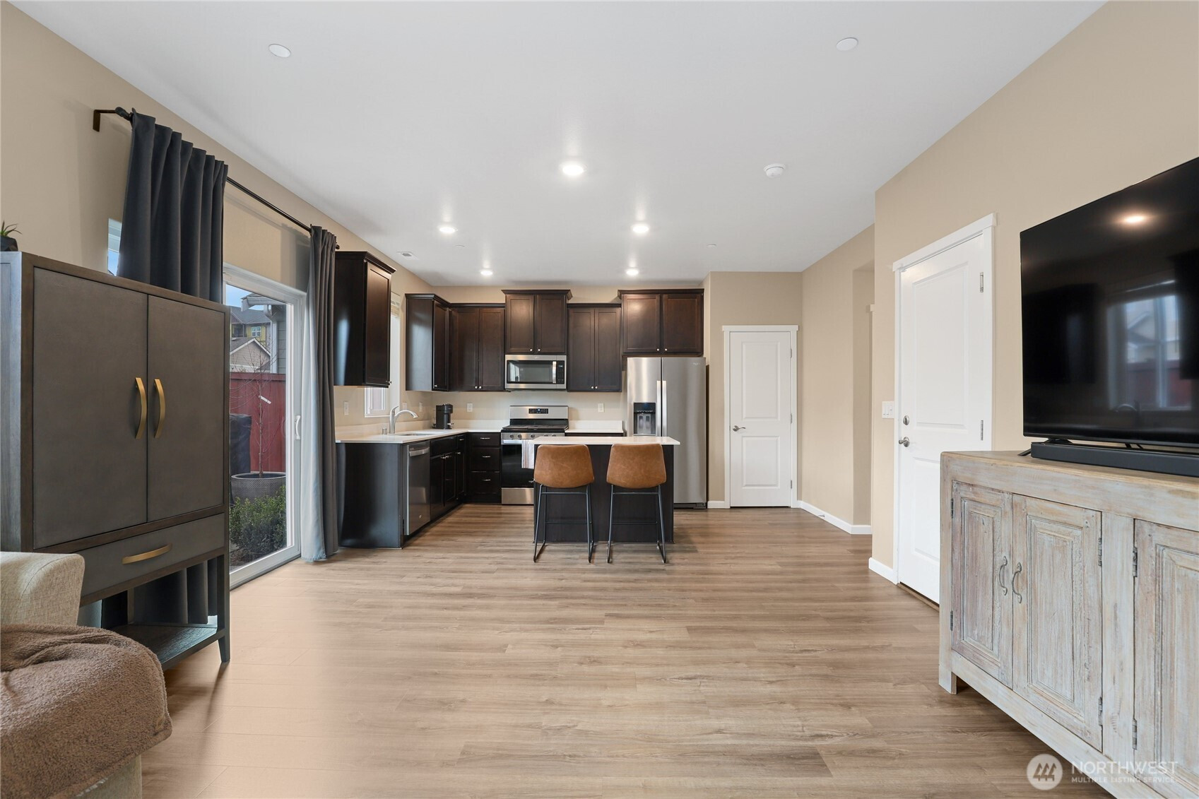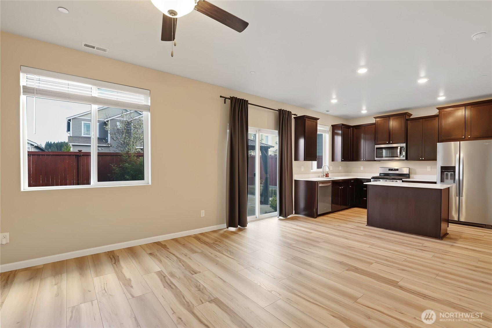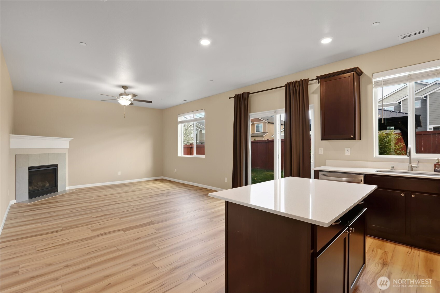(503) 893-8874Welcome home to this beautifully designed two-story residence offering generous space for everyday living and memorable gatherings. The open-concept main level creates a seamless flow, with durable plank flooring connecting the kitchen, dining area, and great room. At the center, the kitchen features a quartz-topped island perfect for casual meals or entertaining, complemented by 42-inch cabinetry and sleek stainless steel Whirlpool appliances. Natural light fills the living area, enhancing the warm and inviting atmosphere throughout. Step outside to a covered patio overlooking a fully fenced backyard, ideal for outdoor dining, relaxation, or year-round enjoyment. Upstairs, the spacious primary retreat offers a well-appointed bath and a large walk-in closet with ample storage. A versatile loft provides flexible space for a home office, creative studio, or bonus area. Recent updates include brand new flooring, along with a newer refrigerator and microwave. An ADT alarm system adds convenience and peace of mind. Ideally located near the ferry terminal, Bremerton, Bangor, and major commuter routes, this move-in ready home offers comfort, functionality, and accessibility in one well-rounded package.
