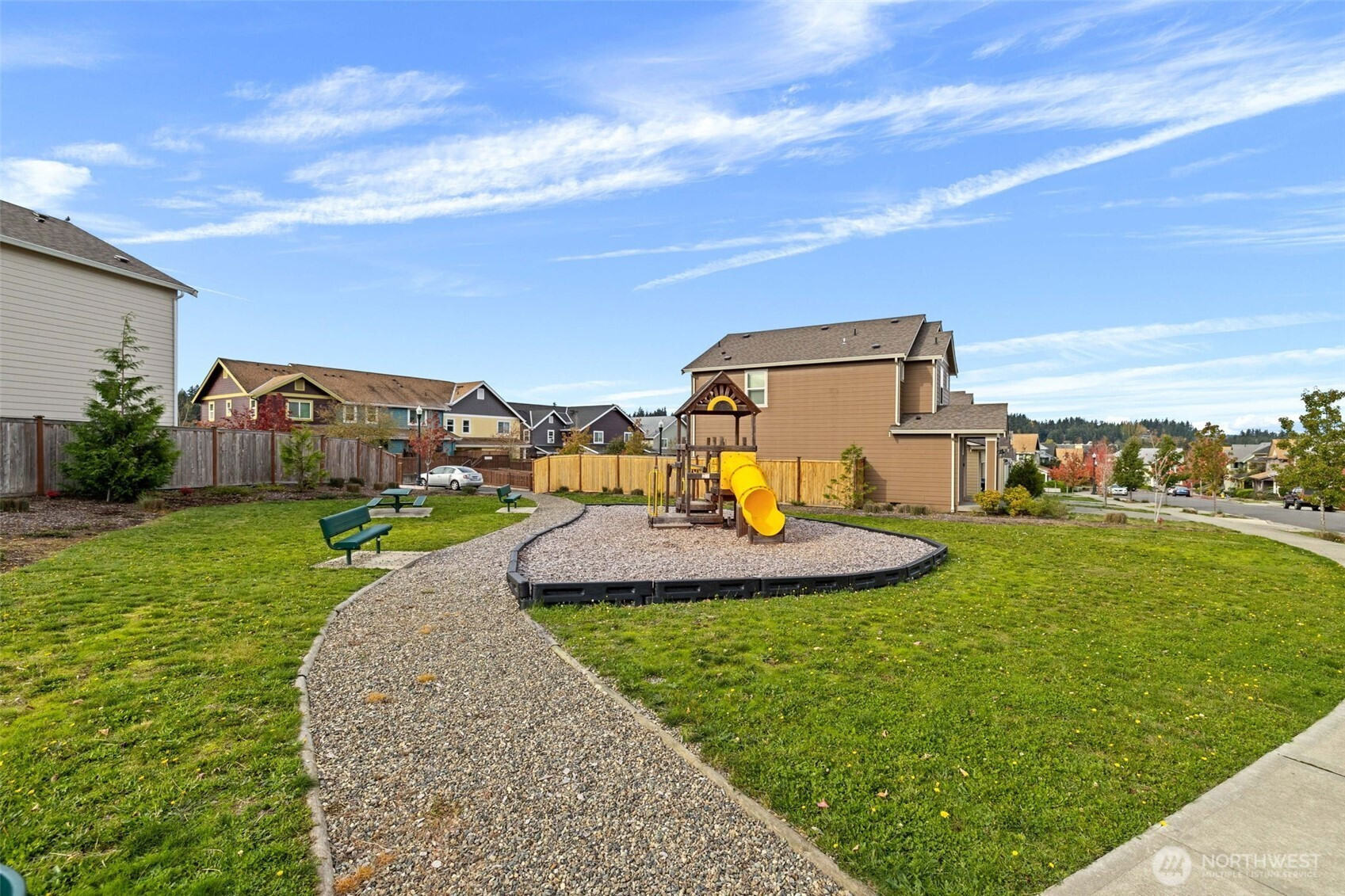Just minutes from Kitsap Naval Base, your dream home awaits! Relax in this beautiful two story home with your private bath and walk-in closet off of the 2nd floor primary bedroom. The loft upstairs makes a perfect playroom or office. The open layout downstairs features an expansive entertaining area with durable plank flooring connecting a gorgeous kitchen and great room. the kitchen includes a quartz-topped island. Let your doggo's run in the fully fenced back yard. There's even a community playground across the street.