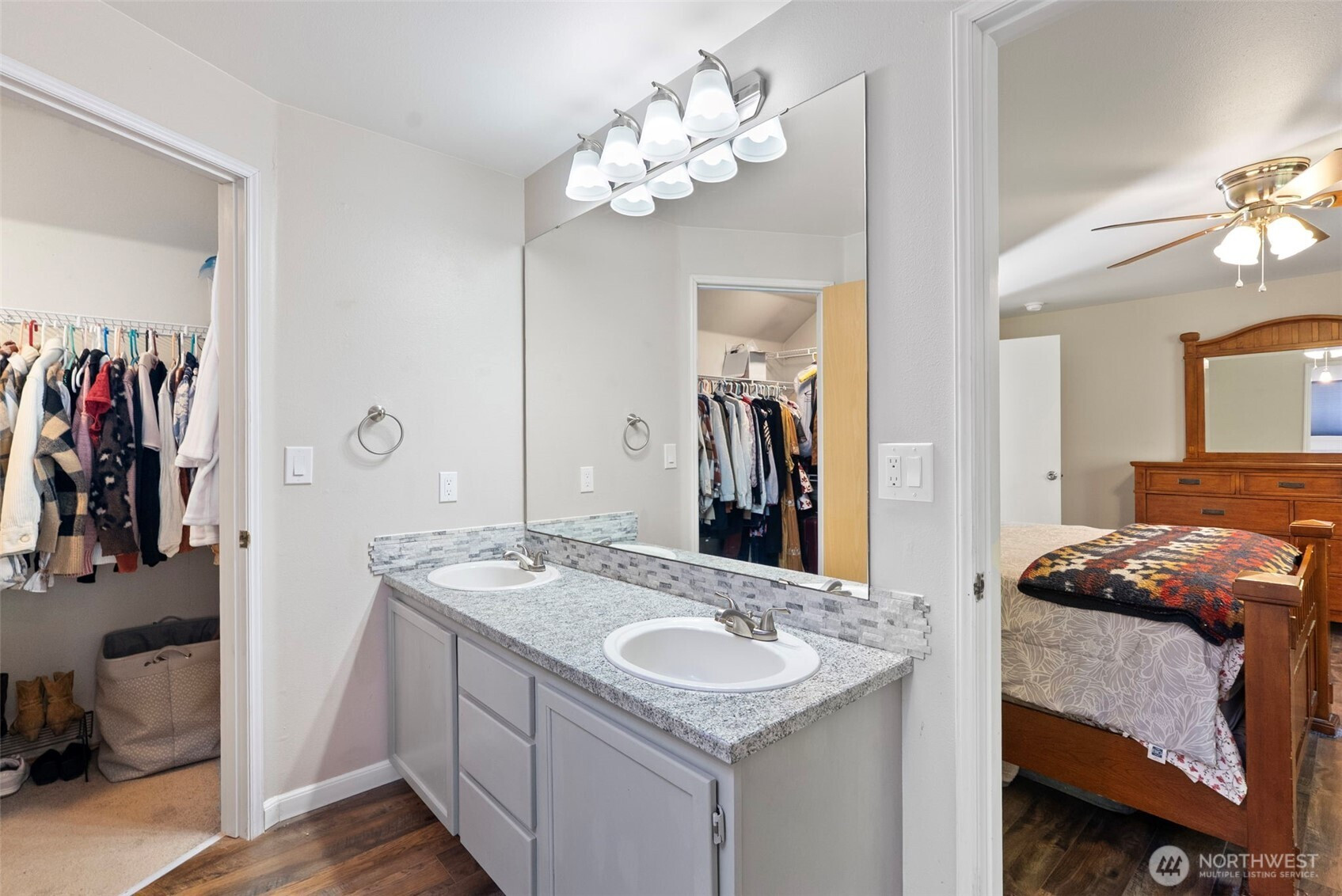 Fantastic floorplan in a quiet neighborhood, backing up to a greenbelt for additional privacy. Light and bright interior with newer flooring. Remodeled eat-in kitchen sparkles with quartz counters, stainless steel appliances, and a gas range while overlooking a cozy living room. A seamless flow to a trex deck and fully fenced backyard for optimal entertaining, year-round. Upstairs, a large primary bedroom with an ensuite 5 piece bath and walk in closet. Room for everyone with three additional bedrooms upstairs AND another full bathroom. RV/boat parking for any potential toys as well as a 2 car garage and driveway parking. Hardiboard siding, a newer roof (complete with Leaf Guard gutters!), new water heater AND a furnace! WOW! Great location in Silverdale, come and tour today!