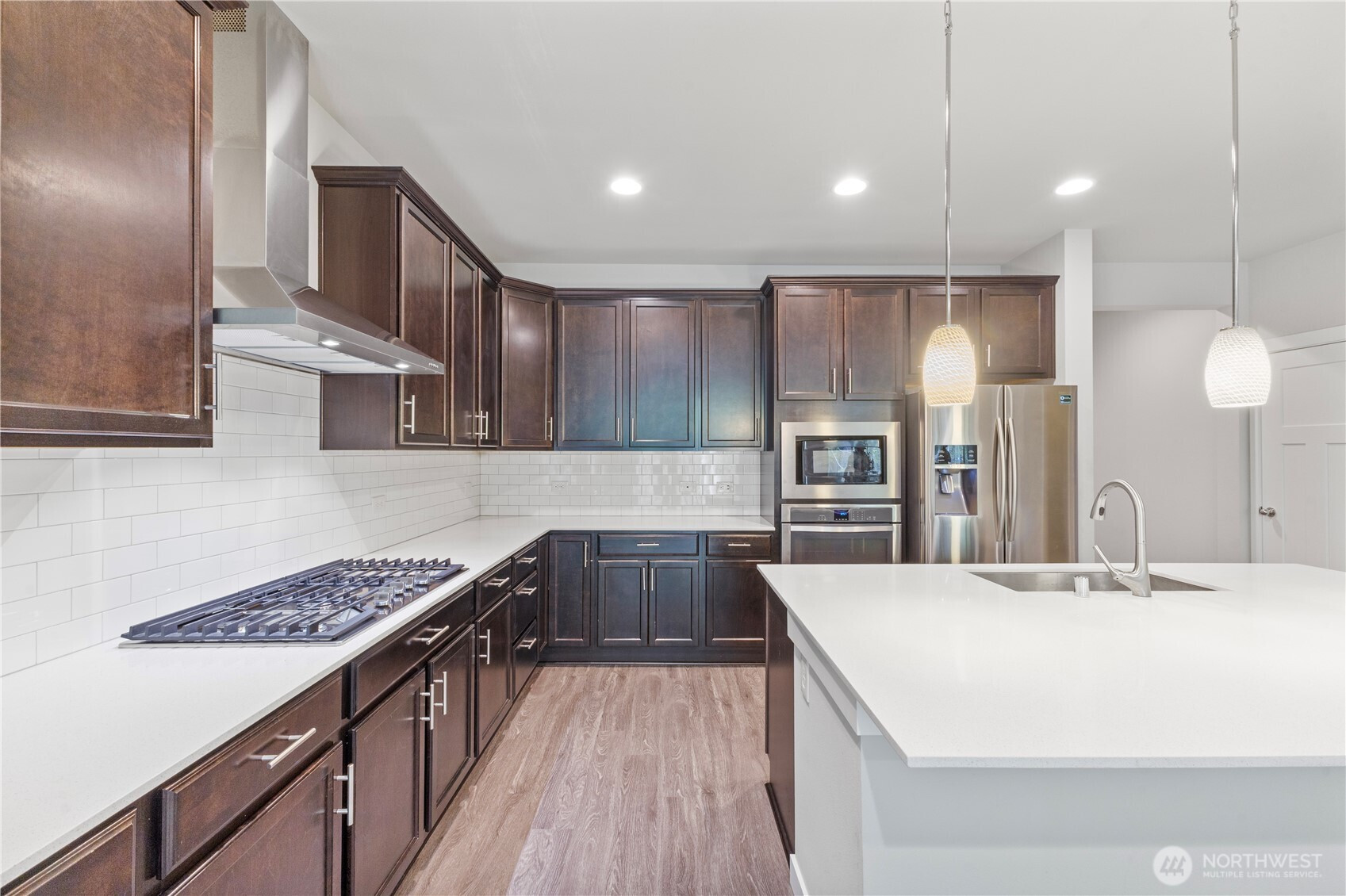 Welcome to this beautiful craftsman style rambler located in the highly desirable community of McCormick in Port Orchard. This home features a fenced yard with a green belt out back, as well as patios both front and back. Inside you'll find beautiful slab quartz countertops and stainless steel appliances, wall mount oven, 36" gas range and walk-in pantry. Primary bedroom has a large en suite bathroom with a large vanity and walk in closet.