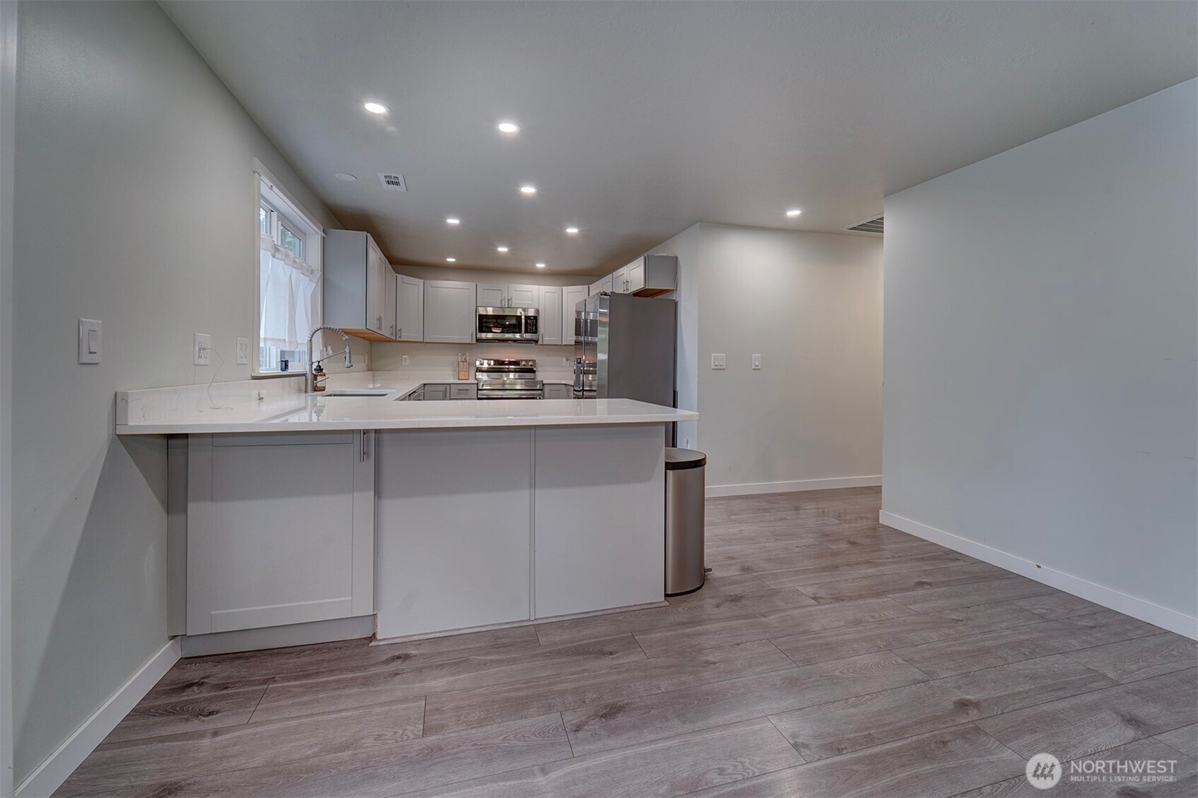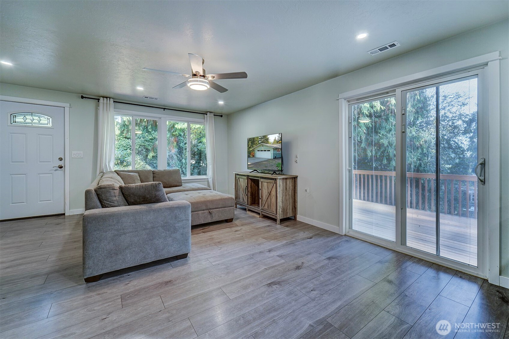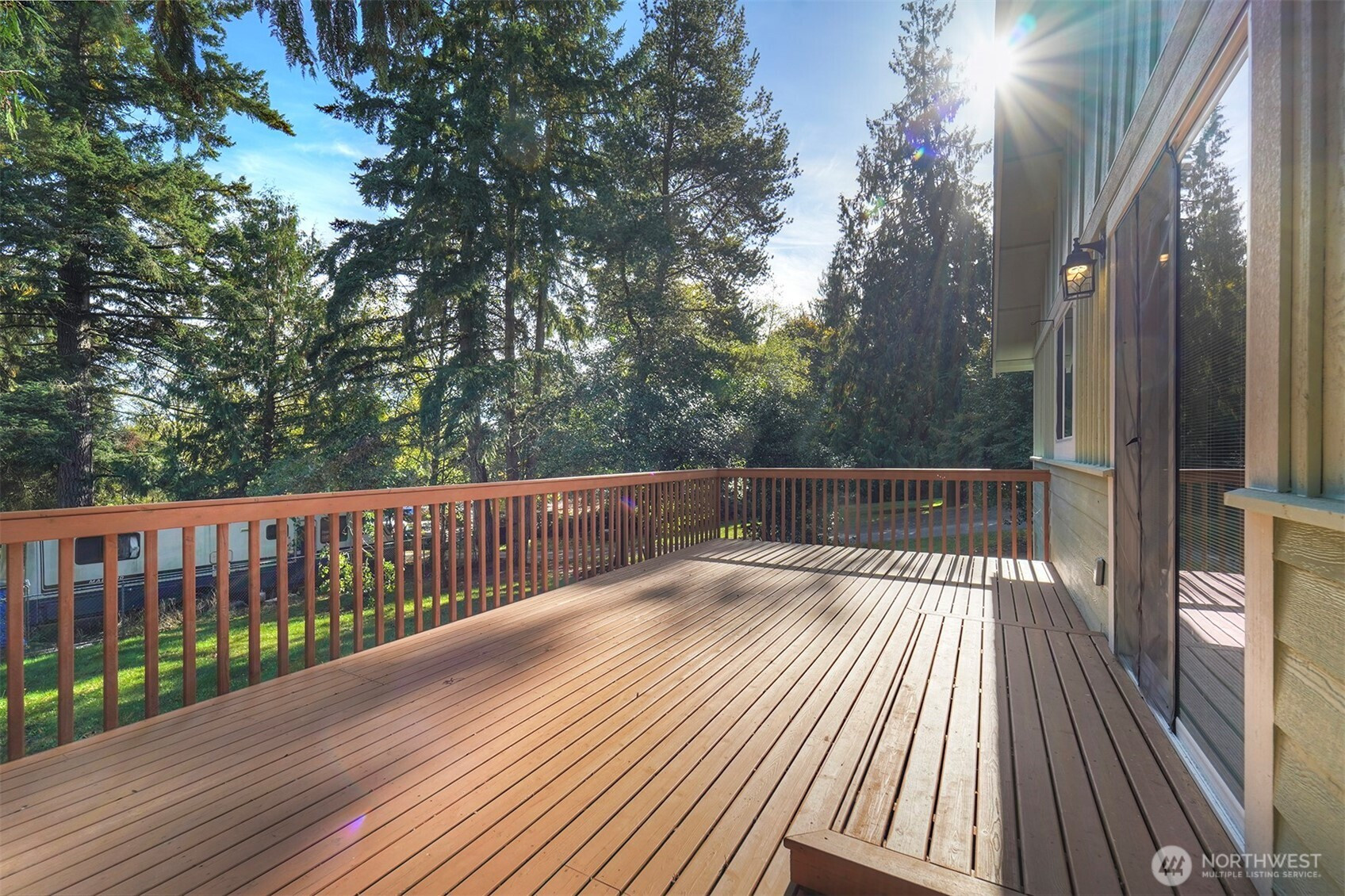 Beautifully renovated one-story home on a spacious half-acre lot! Completely remodeled in 2023 with all-new windows, wide-plank flooring, kitchen cabinets, quartz countertops, stainless steel appliances, lighting, plumbing fixtures, roof, and both interior and exterior paint. Efficient new heat pump for year-round comfort. The open floor plan features a generous kitchen, inviting living area, and a primary bedroom with an adjoining bath. Step out to the expansive 12x24 cedar deck—perfect for outdoor entertaining or relaxing in privacy. Enjoy the ideal blend of tranquility and convenience, just minutes to town and freeways. Walk to Silverdale Elementary School. Possible area for a future detached garage.