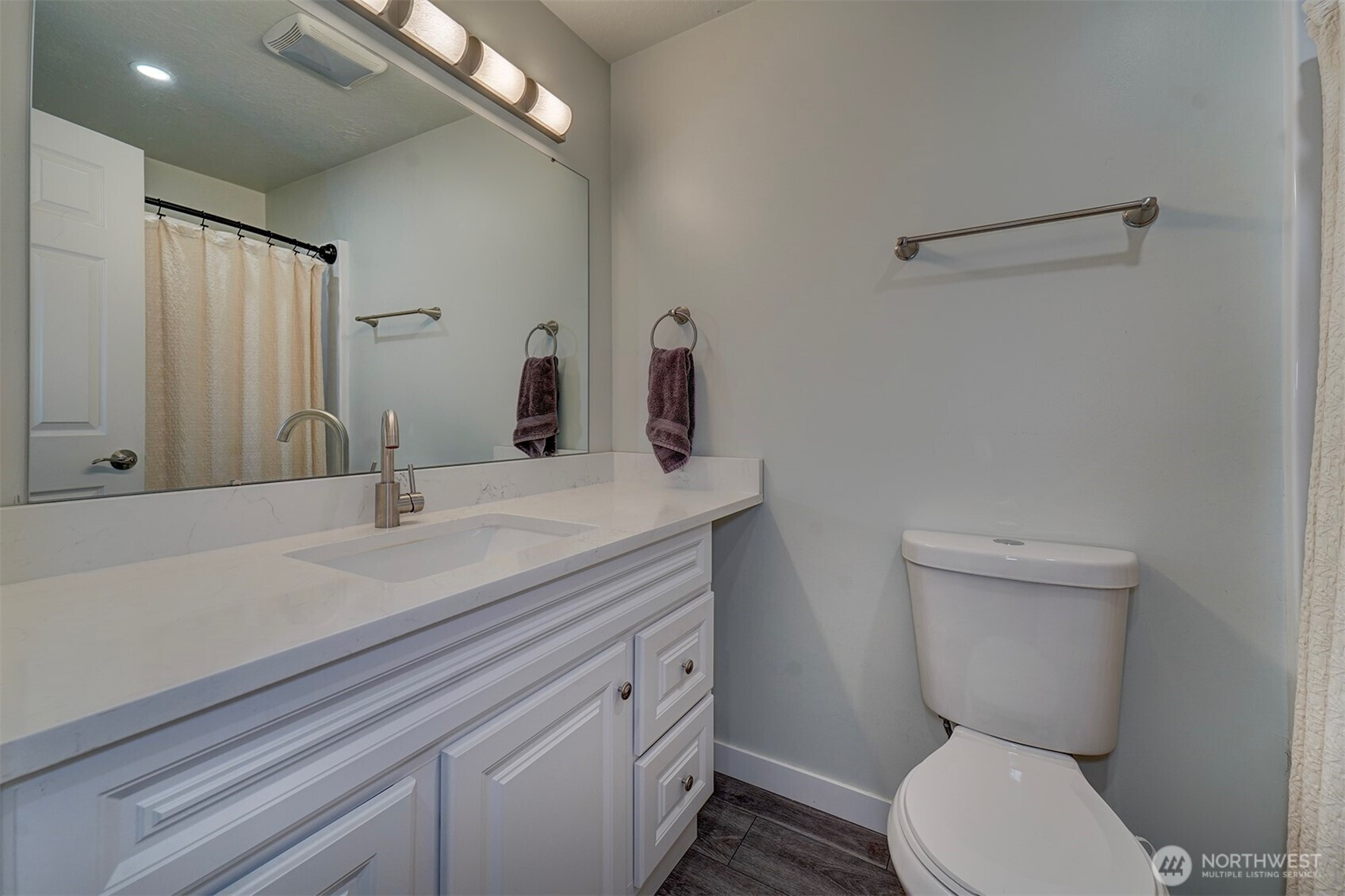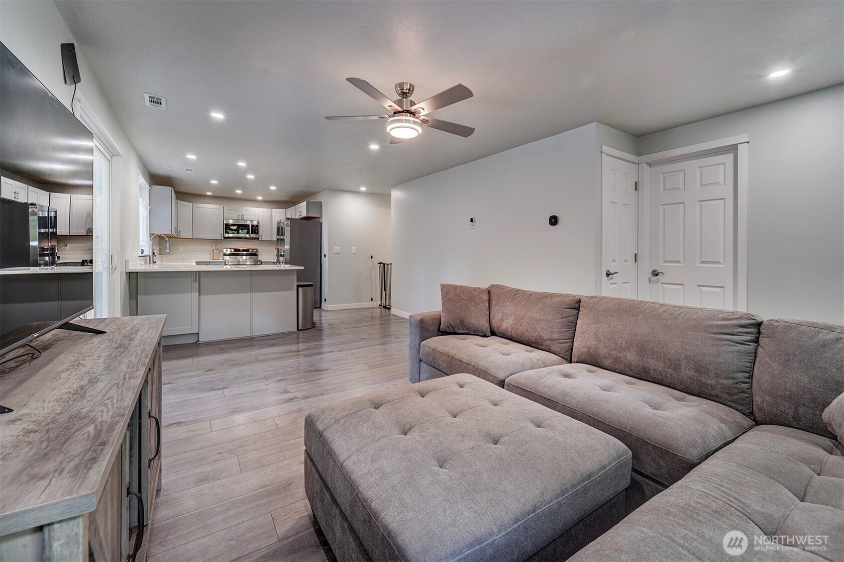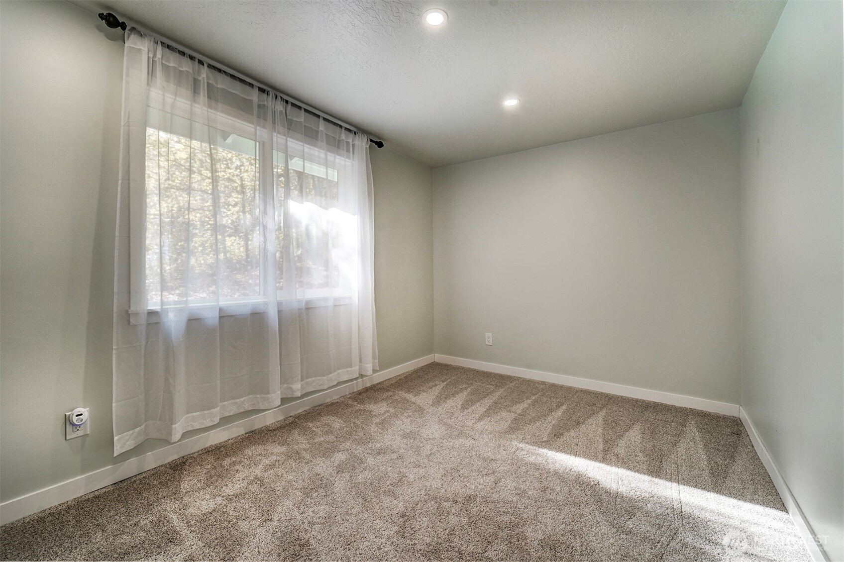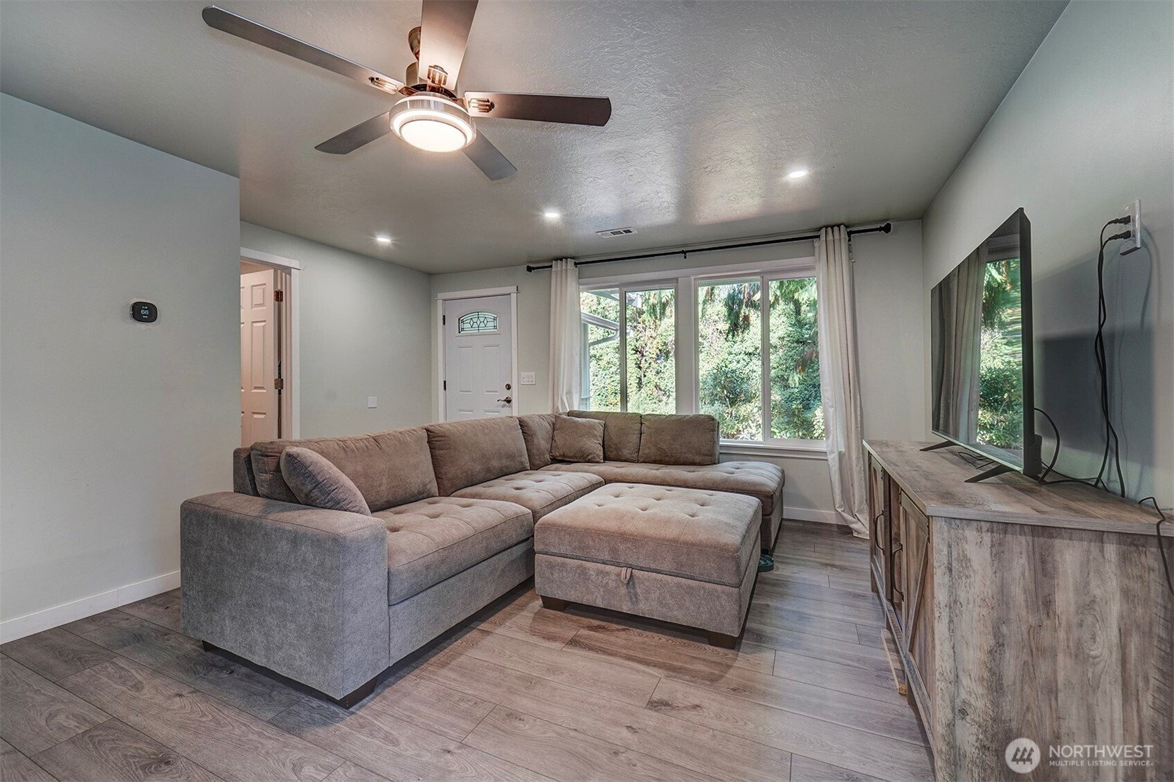 Beautifully renovated one-story home on a spacious half-acre lot! Completely remodeled in 2023 with all-new windows, wide-plank flooring, kitchen cabinets, quartz countertops, stainless steel appliances, lighting, plumbing fixtures, roof, and both interior and exterior paint. Efficient new heat pump for year-round comfort. The open floor plan features a generous kitchen, inviting living area, and a primary bedroom with an adjoining bath. Step out to the expansive 12x24 cedar deck—perfect for outdoor entertaining or relaxing in privacy. Enjoy the ideal blend of tranquility and convenience, just minutes to town and freeways. Walk to Silverdale Elementary School. Possible area for a future detached garage.