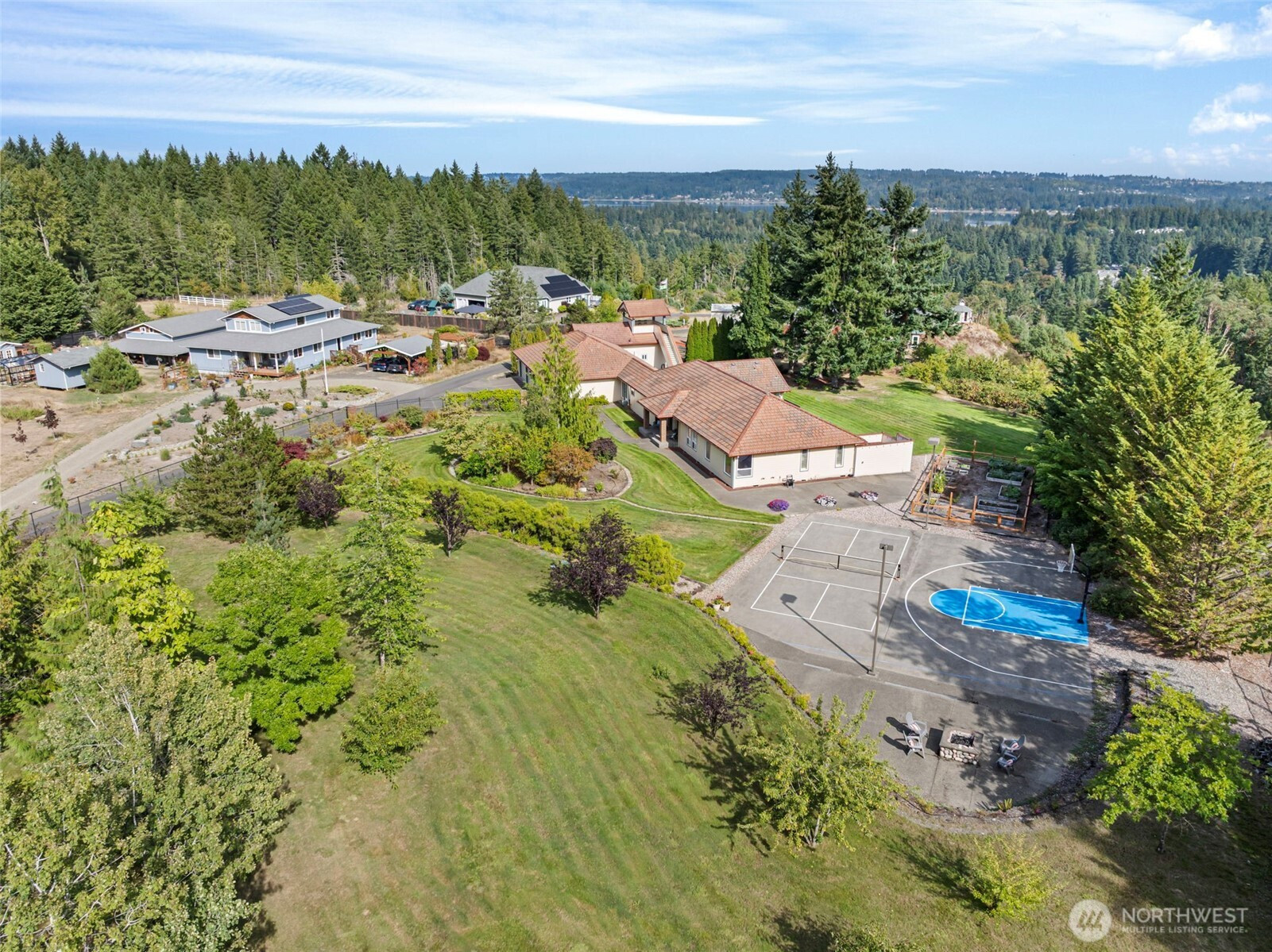 (503) 893-8874Welcome to your private 2-acre compound! This stunning 1-story home offers breathtaking mountain & sound views, a newly remodeled primary bath, and a spacious kitchen perfect for entertaining. Enjoy the outdoors with a lighted basketball half court, pickleball court, and fully fenced, landscaped grounds with sprinklers throughout. The newly completed guest house is ideal for visitors, multigenerational living, or income potential. A rare find that blends recreation, privacy & beauty all in one!
