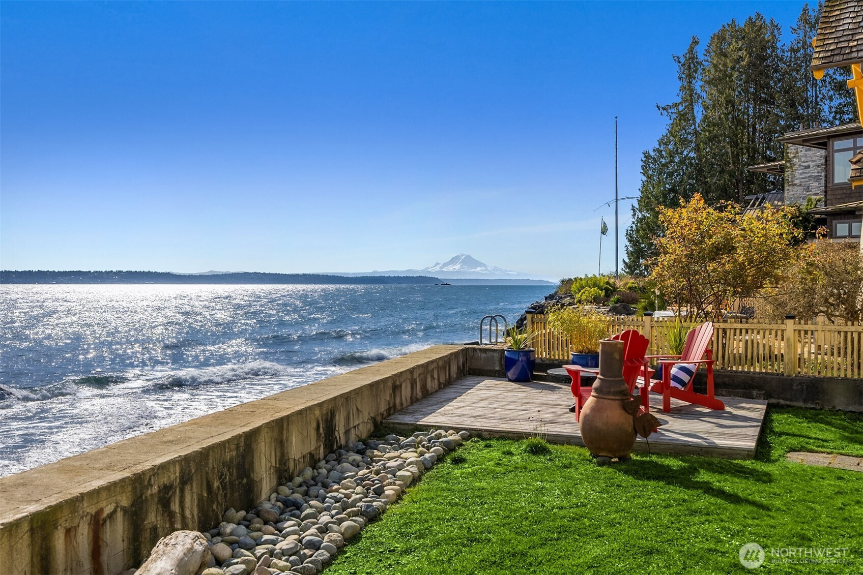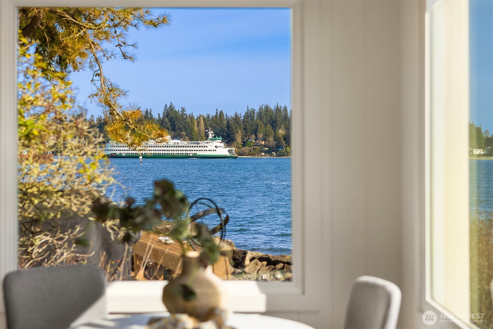 Experience breathtaking waterfront living in this charming Craftsman, where sweeping views, daily wildlife sightings, and ever-changing scenery create a truly unforgettable setting. Nestled at the water’s edge, this inviting cottage captures panoramic 180-degree views stretching from Mt. Baker to Mt. Rainier, with Eagle Harbor and the Seattle skyline beautifully framed across the water. Inside, timeless character meets thoughtful updates. This 3-bedroom, 1.75-bath home features remodeled laundry and office spaces, new carpeting, integrated heating and cooling for year-round comfort, and convenient sewer access. The kitchen flows seamlessly into the living area, where a cozy wood-burning fireplace insert, exposed beam ceilings, and expansive windows showcase the stunning surroundings. Outdoor living is exceptional, offering multiple spaces to relax and entertain — including a covered porch, beachside deck, upstairs balcony, and a rooftop deck with incredible vantage points. Enjoy front-row views of ferries gliding by and the shimmering Seattle skyline, day and night. Ideally located near walking trails and public parks, this home offers both tranquility and access to outdoor recreation. A rare opportunity to own a piece of waterfront charm you’ll never want to leave. Co-agent is the homeowner.