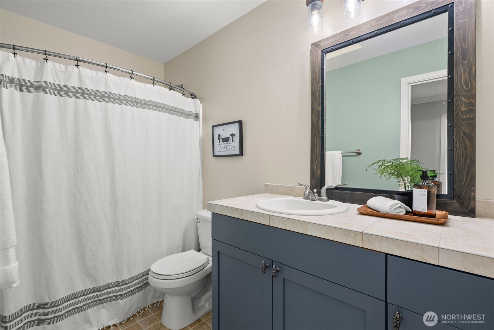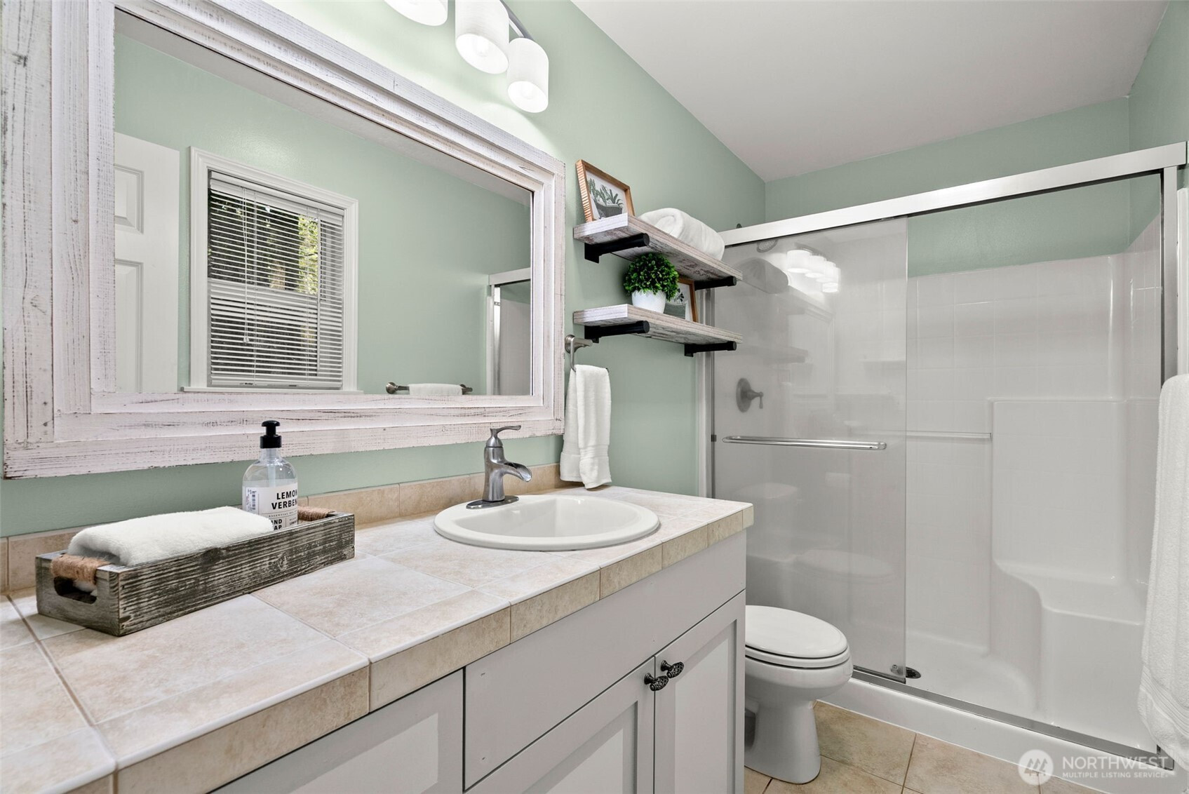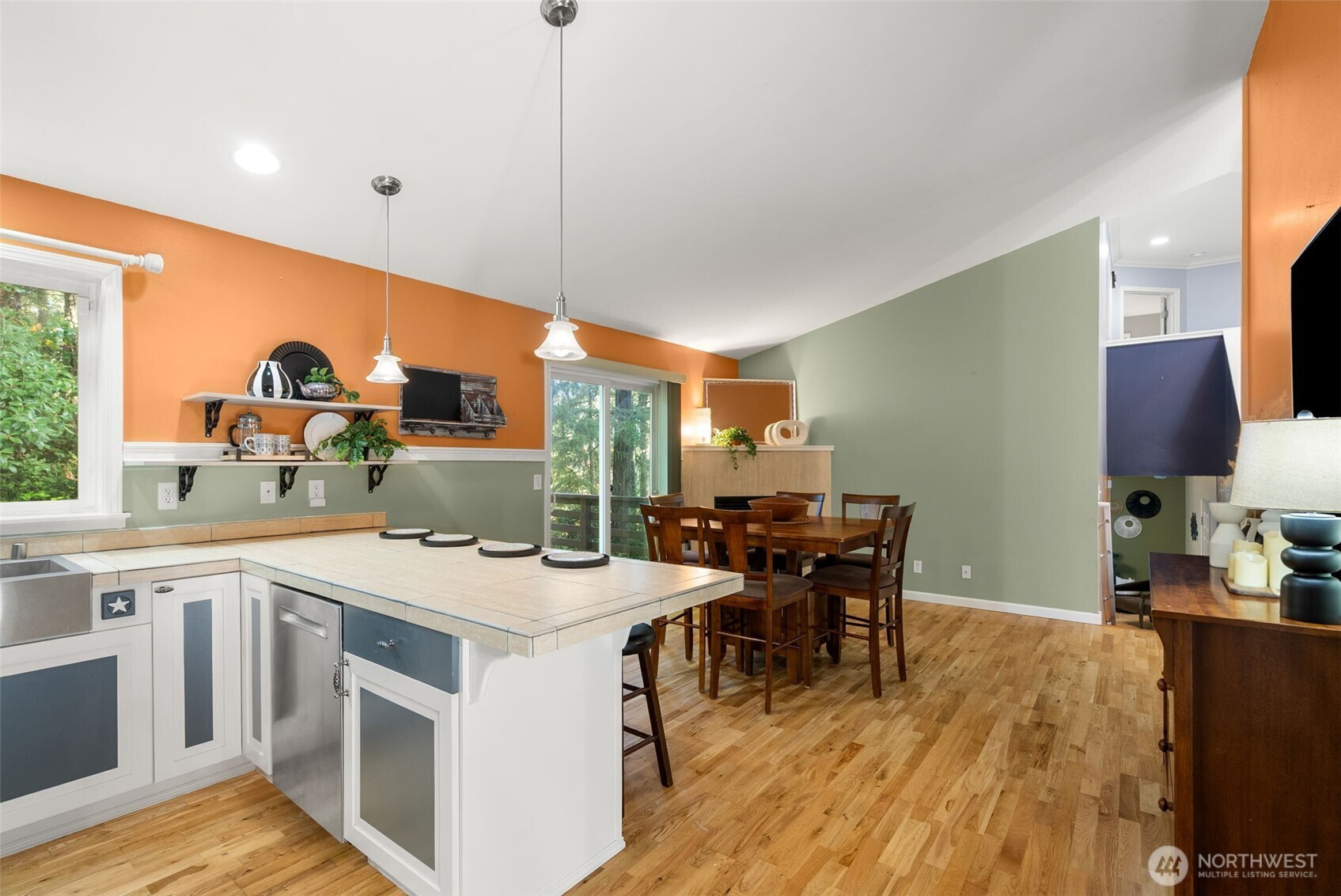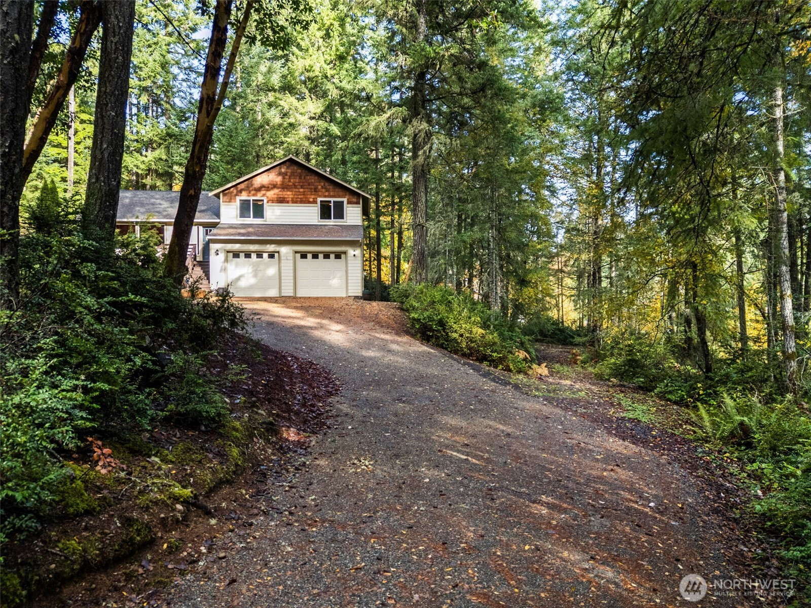 Set on over 1 acre of wooded privacy in Olympic View, this 3bd/2.5ba tri-level blends comfort, space, and natural beauty. The main level features a stunning open kitchen with stainless appliances, hardwood floors, and bright dining and living areas with vaulted ceilings and abundant natural light. Upstairs offers a spacious primary bedroom, two additional bedrooms, and a full bath. The lower level includes a versatile flex room, half bath, laundry area, and interior garage access. Fresh carpet and a newer furnace add comfort. Enjoy peaceful surroundings, two decks, RV parking, and generous storage beneath the home. Located in the Central Kitsap School District and convenient to Bangor Navy Base, local shopping, and dining.