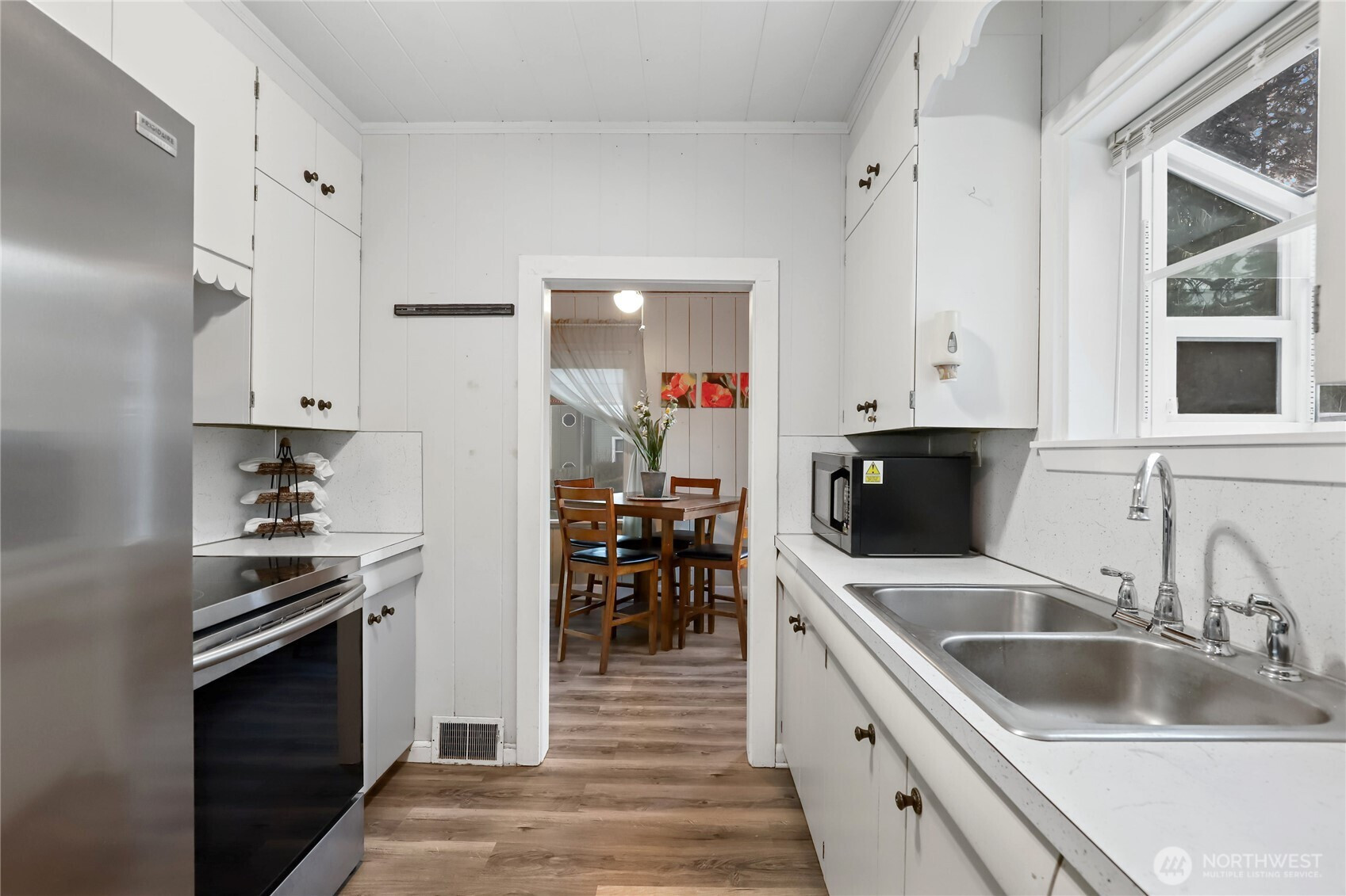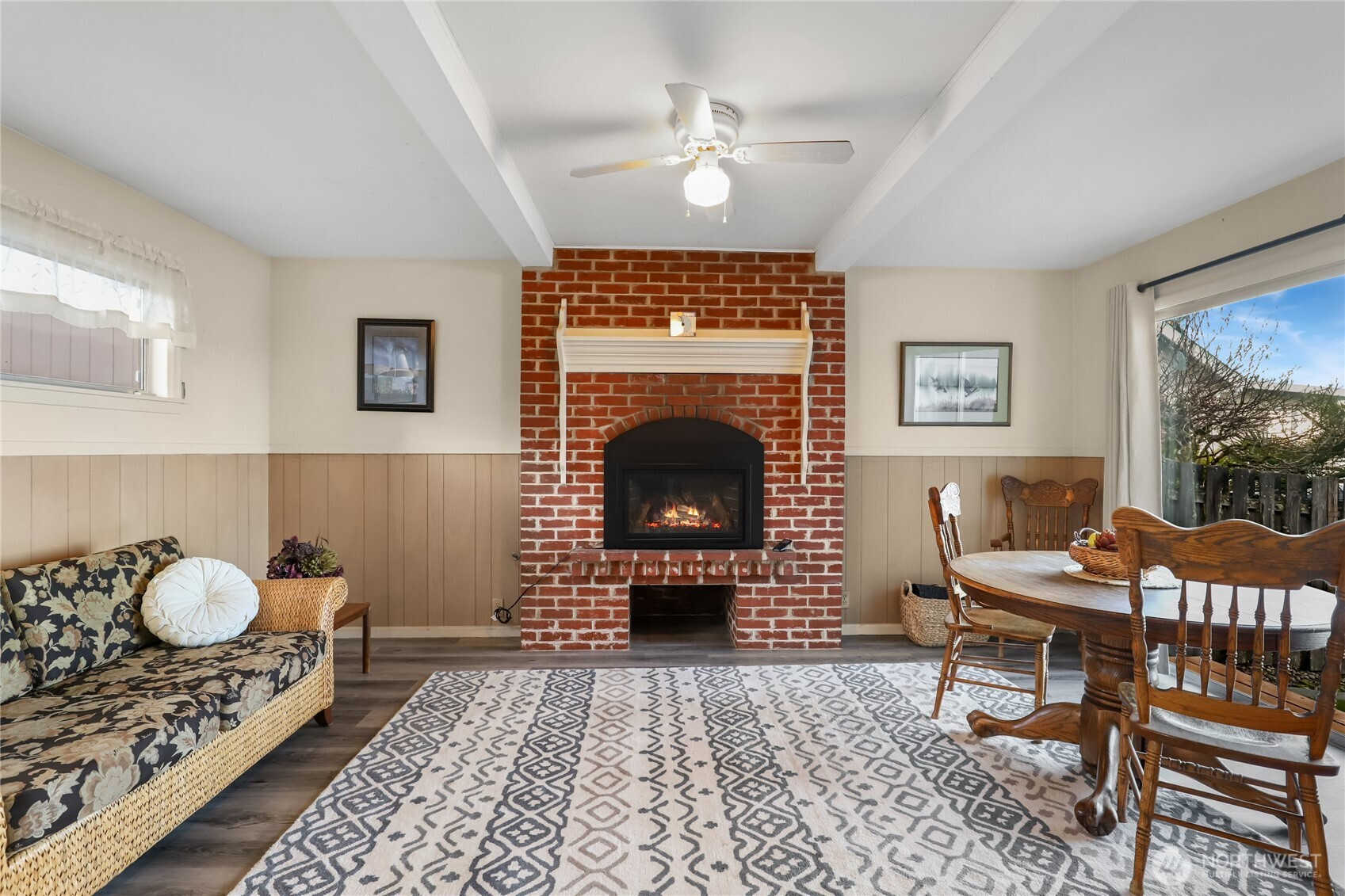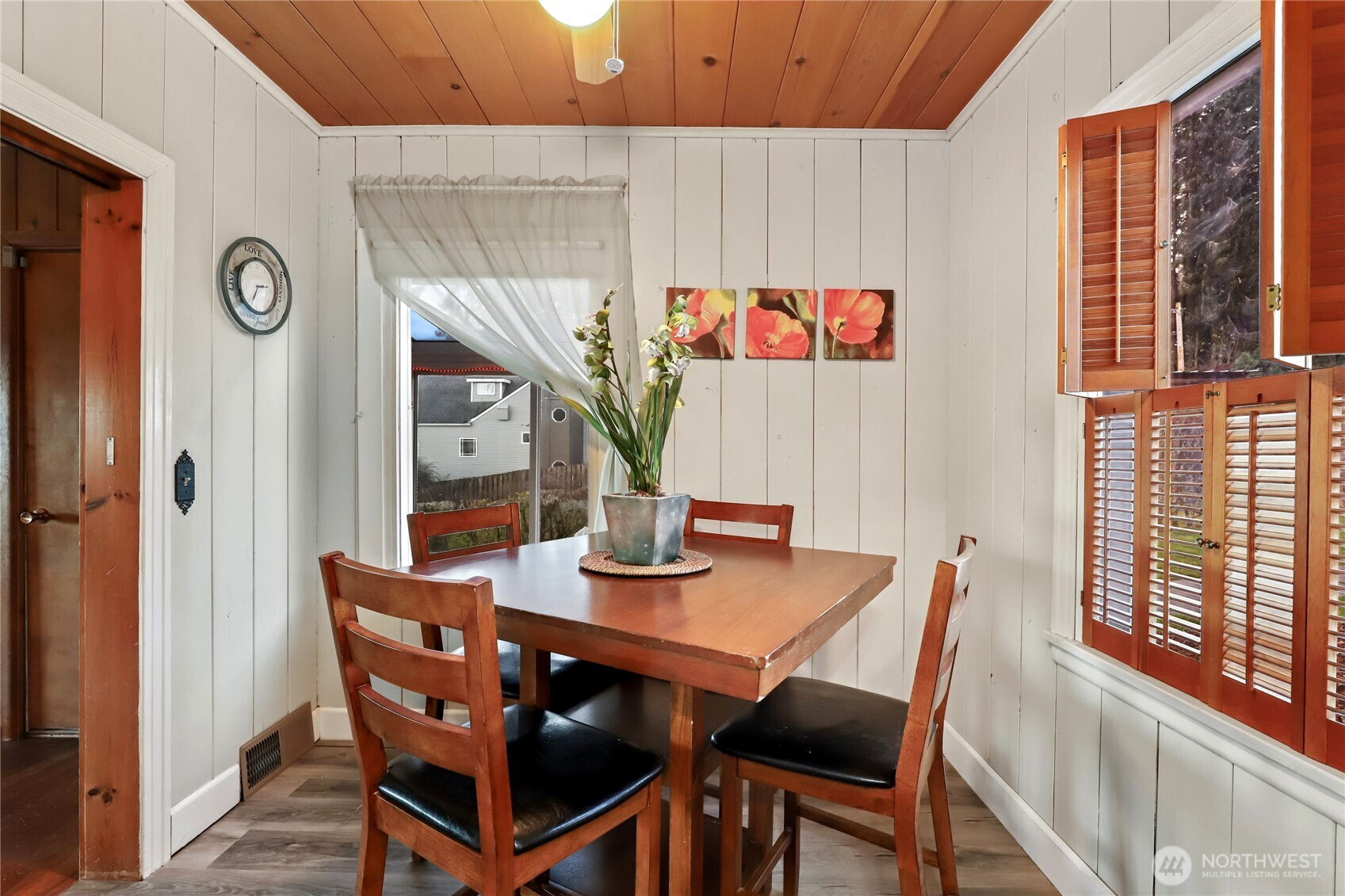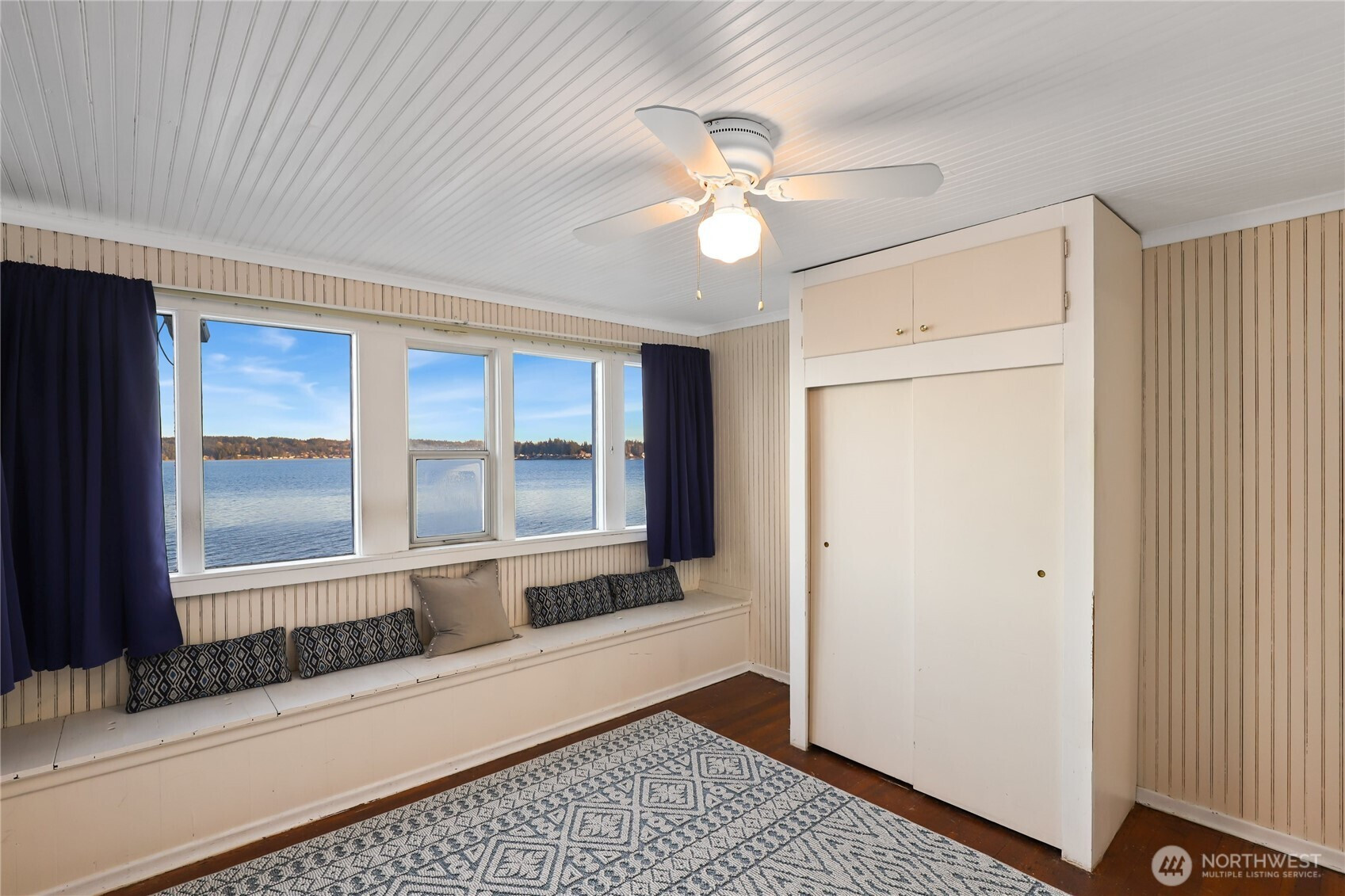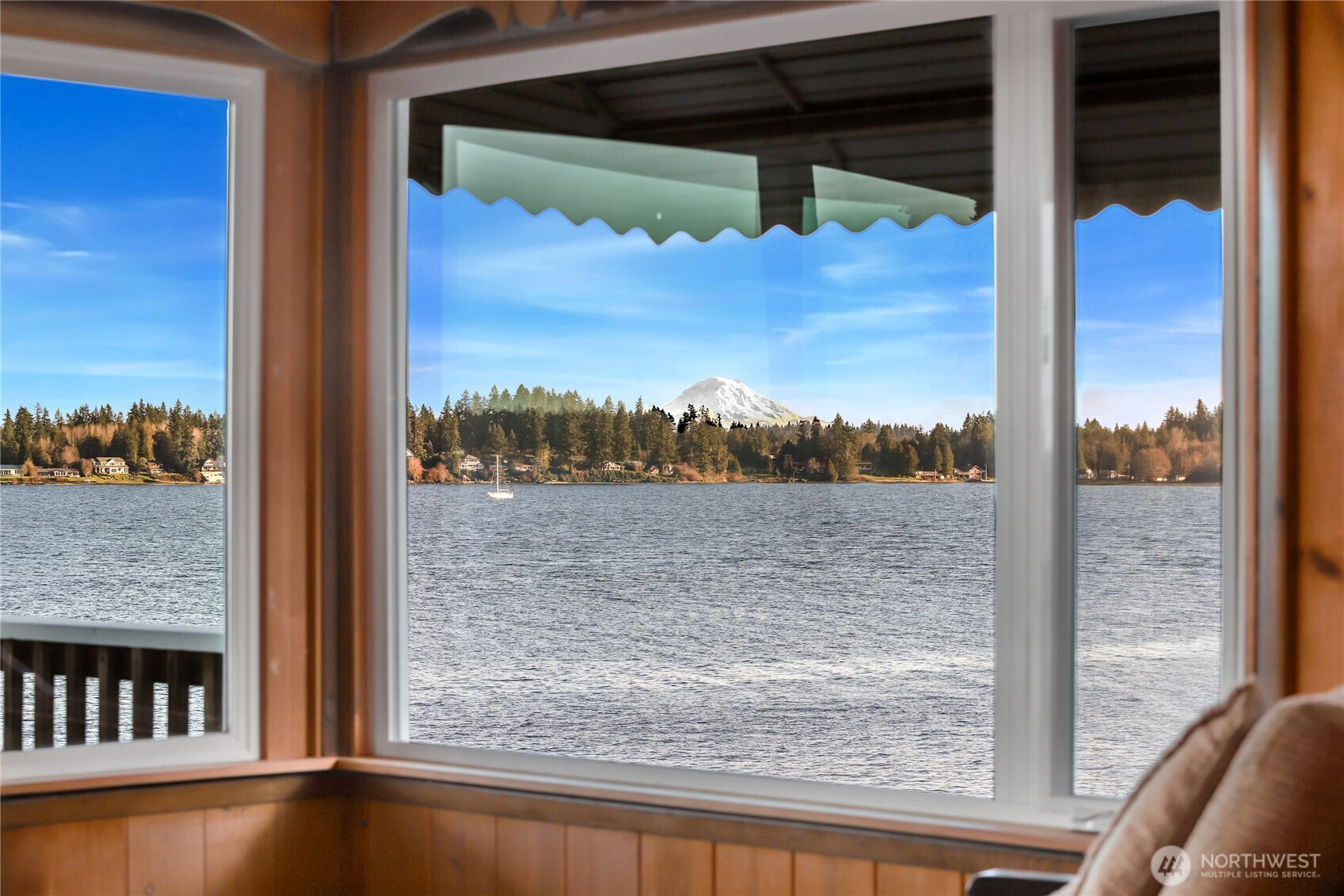 Wake up to stunning sunrises over Dyes Inlet in this charming waterfront home, where sweeping bay views, passing boats, and the dramatic presence of Mount Rainier create an ever-changing natural backdrop. Nearly every room is positioned to capture the scenery, filling the home with light and a strong connection to the water. The main level offers a comfortable and functional layout featuring a dedicated office, inviting living room, cozy breakfast nook, and a well-designed galley kitchen suited for daily living and gatherings. A spacious solarium, not included in the recorded square footage, adds valuable flex space for relaxing, dining, or enjoying the views throughout the year. Outdoors, a medium-bank cement bulkhead and an easy path provide direct access to the shoreline, complemented by tideland rights that enhance the waterfront setting. The home includes three bedrooms and one-and-a-half baths, with room to expand if desired. Central air conditioning, natural gas service, and solar features contribute to comfort and efficiency. A detached three-car garage, RV parking, and a private driveway offer ample space for vehicles, storage, and hobbies. Conveniently located near local bases, the Seattle ferry, a regional medical center, and Silverdale shopping, this property blends peaceful waterfront living with everyday accessibility in a truly special setting.
