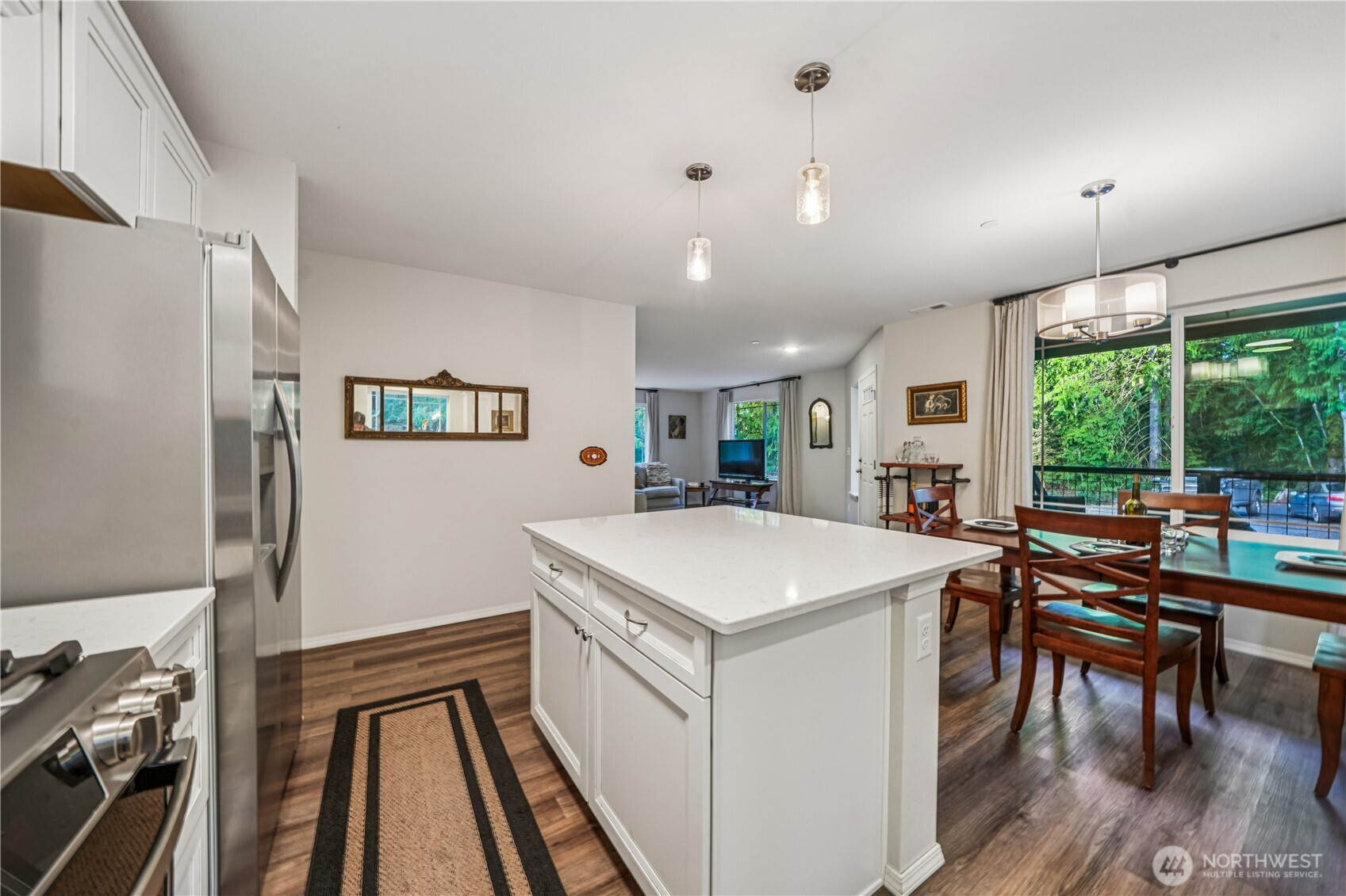 Charming and secluded, private north-end home on acreage—nearly new and thoughtfully designed! Completed in late 2024, this 3-bedroom, 2-bath home offers comfortable, efficient living with a smart, easy-flow layout. A heat pump provides year-round comfort and energy efficiency. Set on approximately 2.5 acres, the property offers a peaceful setting with a private well and is located on a dead-end road minimizing traffic and enhancing privacy. Inside, abundant windows fill the home with natural light and views of the surrounding greenery. The open-concept living area connects the kitchen, dining, and living spaces, creating a welcoming environment for everyday living and gatherings. The kitchen features modern finishes, generous counter space, and ample cabinetry. The primary bedroom includes an attached bath and closet, while two additional bedrooms offer flexible space for guests, office use, or hobbies. A full fire suppression system provides added peace of mind. Outside, the acreage allows room to enjoy the outdoors, explore, or consider future improvements (subject to buyer verification). Partial RV hookups add convenience for recreational or visiting vehicles. Ideally located just minutes to downtown Kingston and the Kingston ferry, with easy access to Heritage Park offering trails, open green spaces, and shoreline access. A great balance of space, comfort, and accessibility—A home that's absolutely worth a closer look!