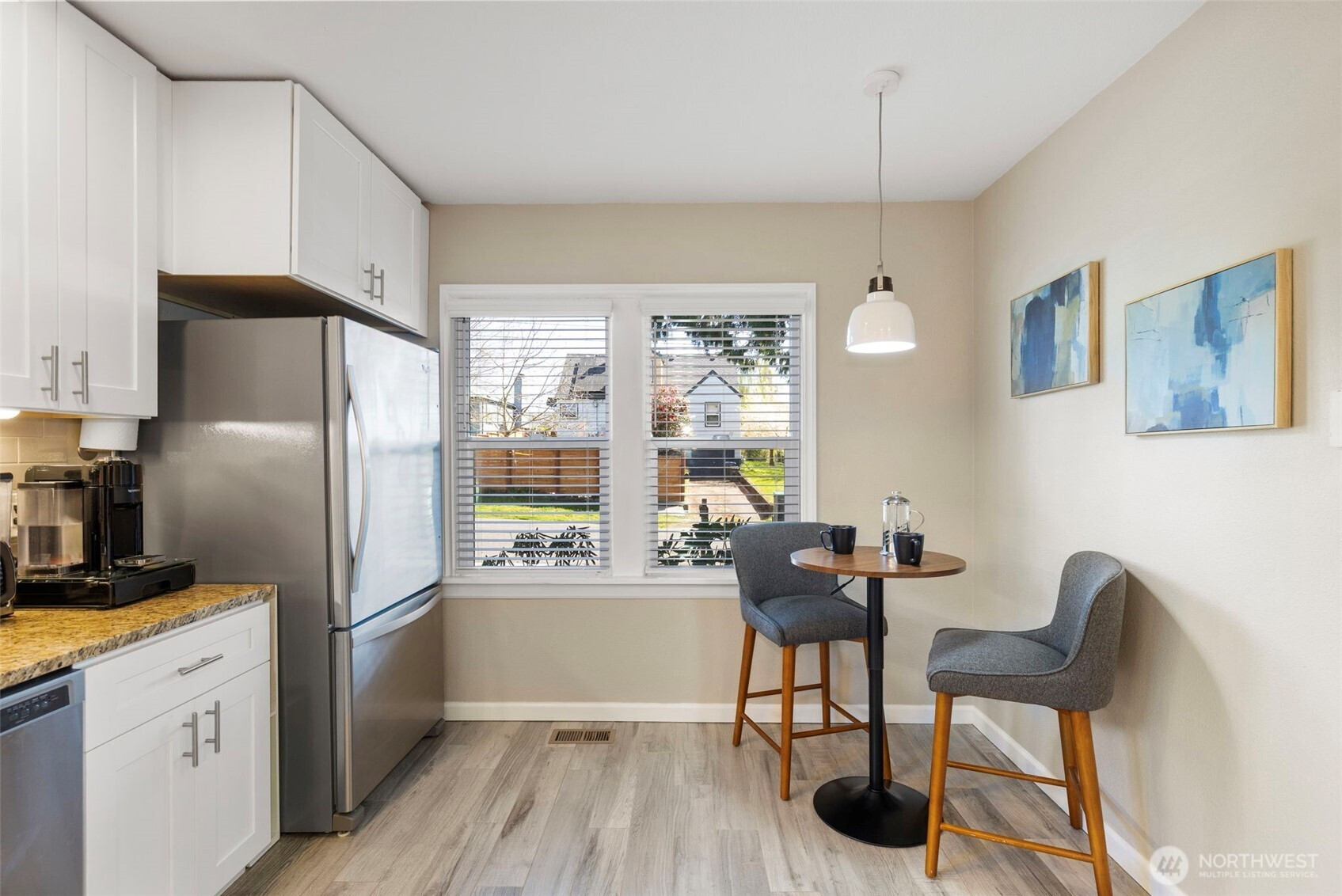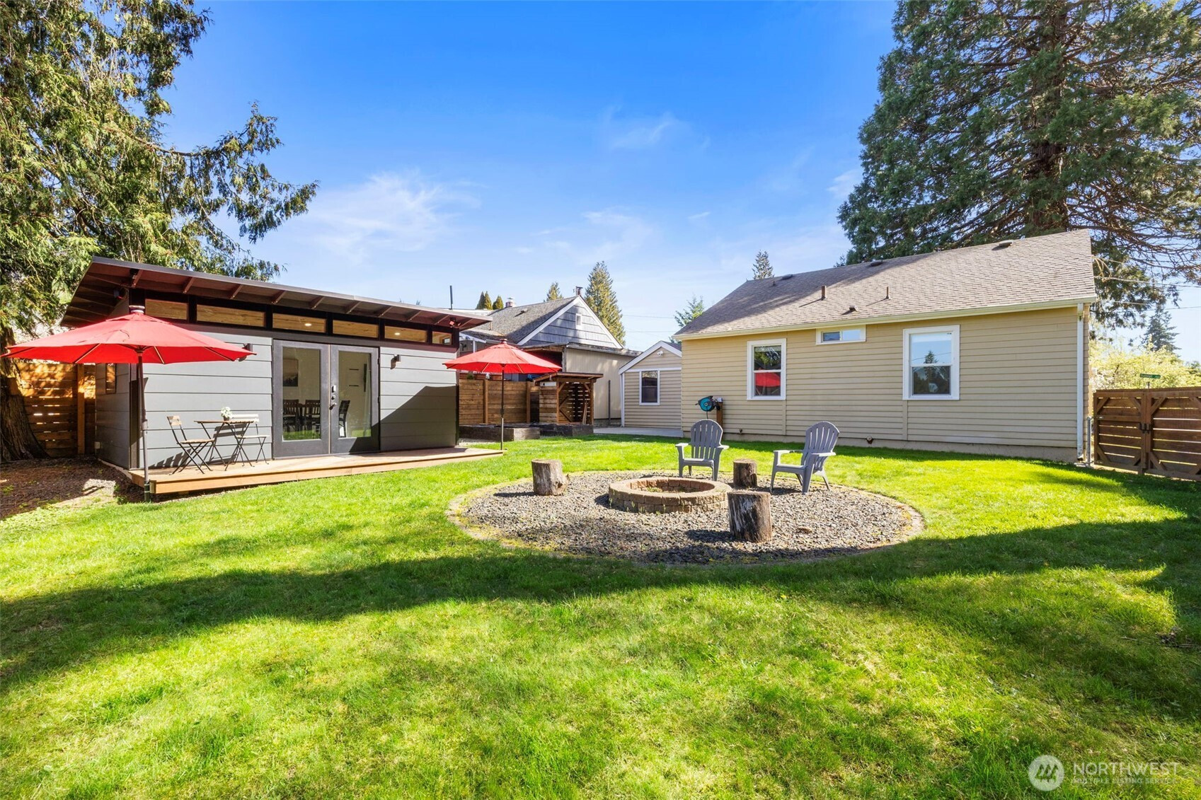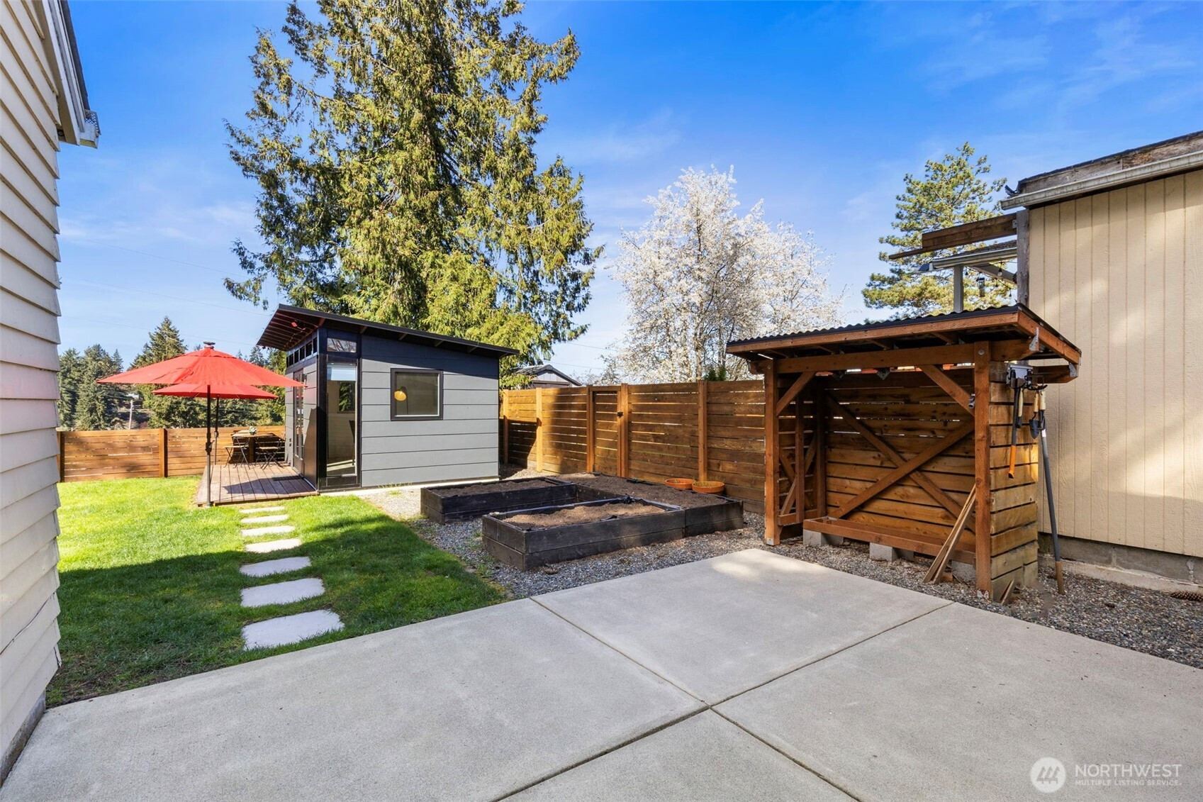 Charming 2-bedroom, 1 bath Bremerton home! This efficiently designed 832 sqft home is the perfect blend of modern updates and old-world charm. With a spacious living area, bright and open kitchen with tile floors, granite counters and stainless steel appliances. Primary bedroom with two closets, guest bedroom, full bathroom and utility room. Step outside to the fully fenced and private backyard oasis. Featuring raised garden beds, patio, firepit with firewood storage and a versatile detached 10x18 finished bonus space. Perfect for a studio or gym. Plus, a one car garage and driveway parking! Located on a spacious corner lot next to Forest Ridge Park. Great location just minutes to shopping, dining, Navy bases and Bremerton Ferry for an easy commute.