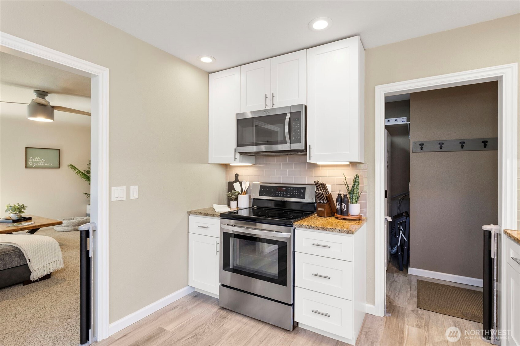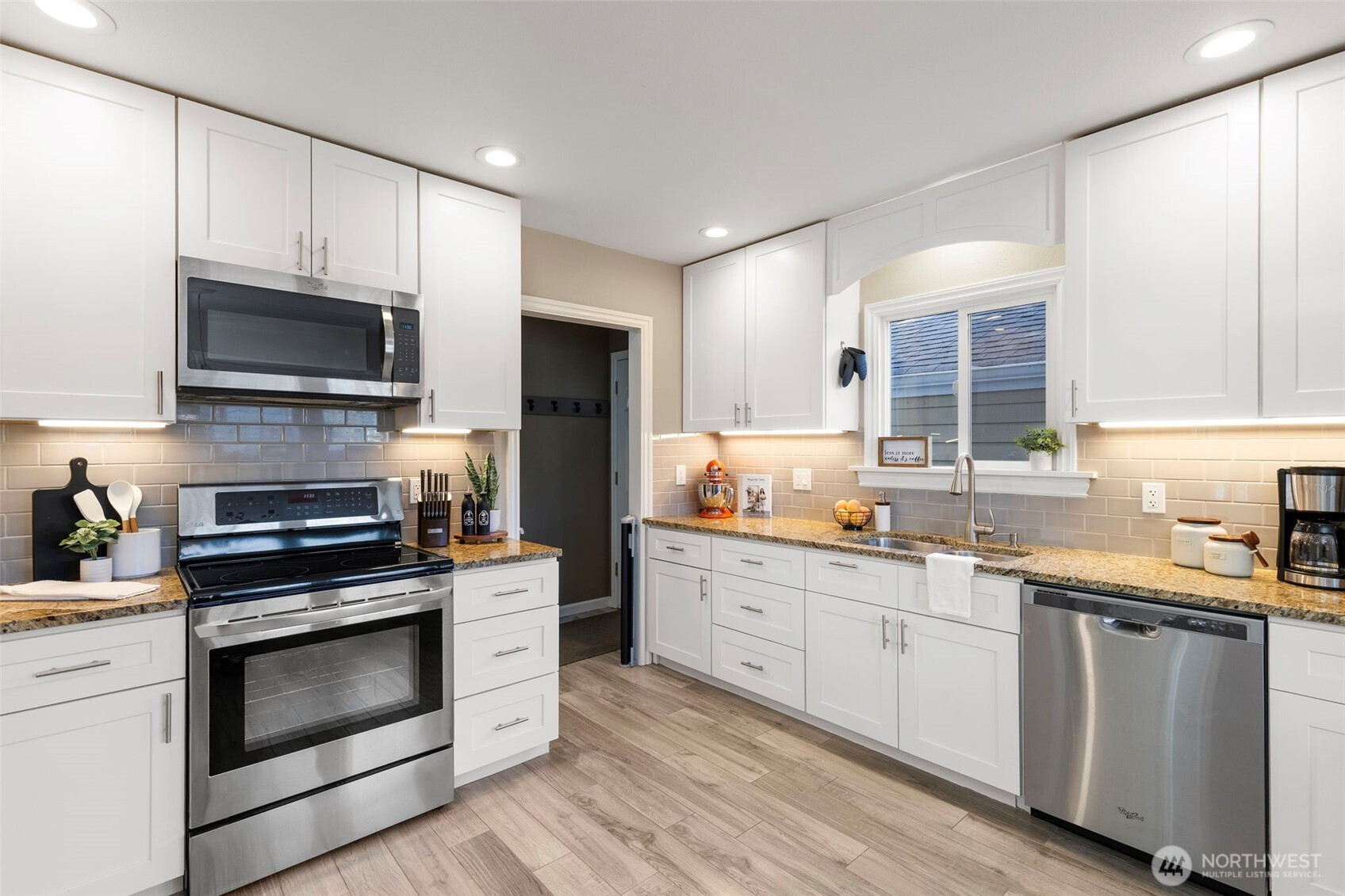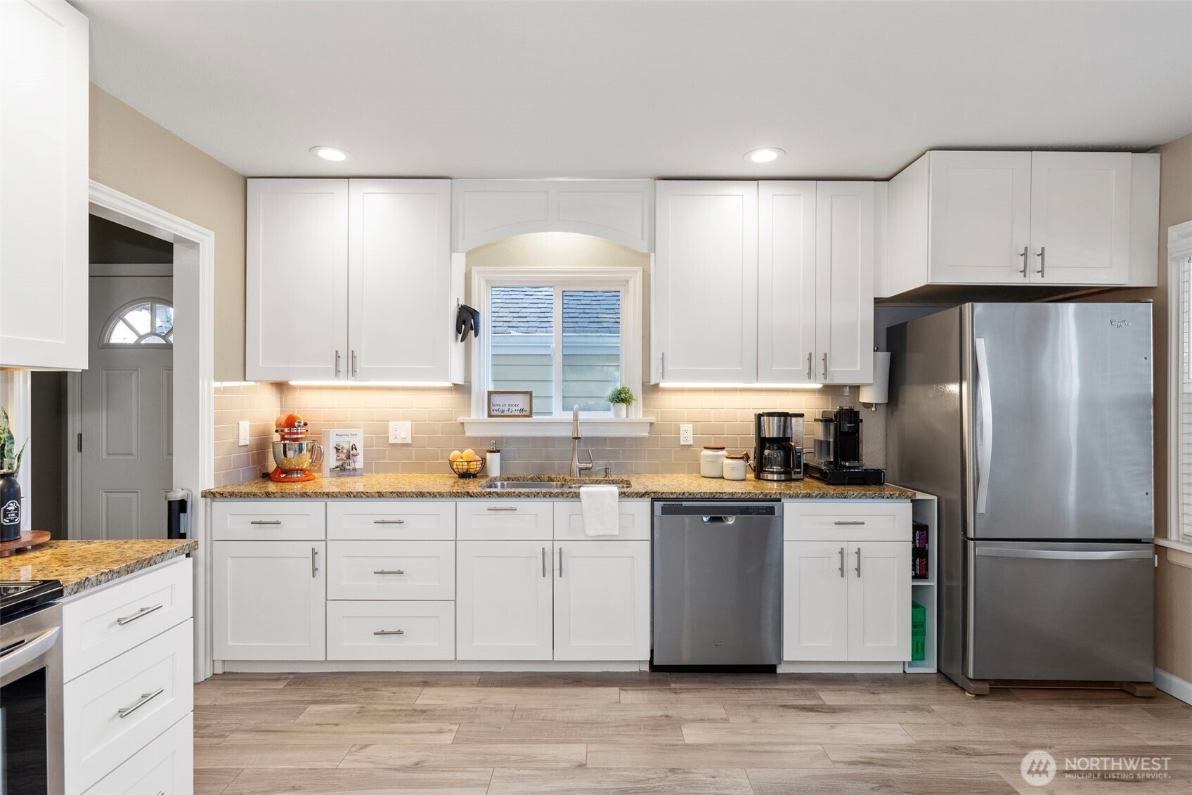 Charming 2-bedroom, 1 bath Bremerton home! This efficiently designed 832 sqft home is the perfect blend of modern updates and old-world charm. With a spacious living area, bright and open kitchen with tile floors, granite counters and stainless steel appliances. Primary bedroom with two closets, guest bedroom, full bathroom and utility room. Step outside to the fully fenced and private backyard oasis. Featuring raised garden beds, patio, firepit with firewood storage and a versatile detached 10x18 finished bonus space. Perfect for a studio or gym. Plus, a one car garage and driveway parking! Located on a spacious corner lot next to Forest Ridge Park. Great location just minutes to shopping, dining, Navy bases and Bremerton Ferry for an easy commute.