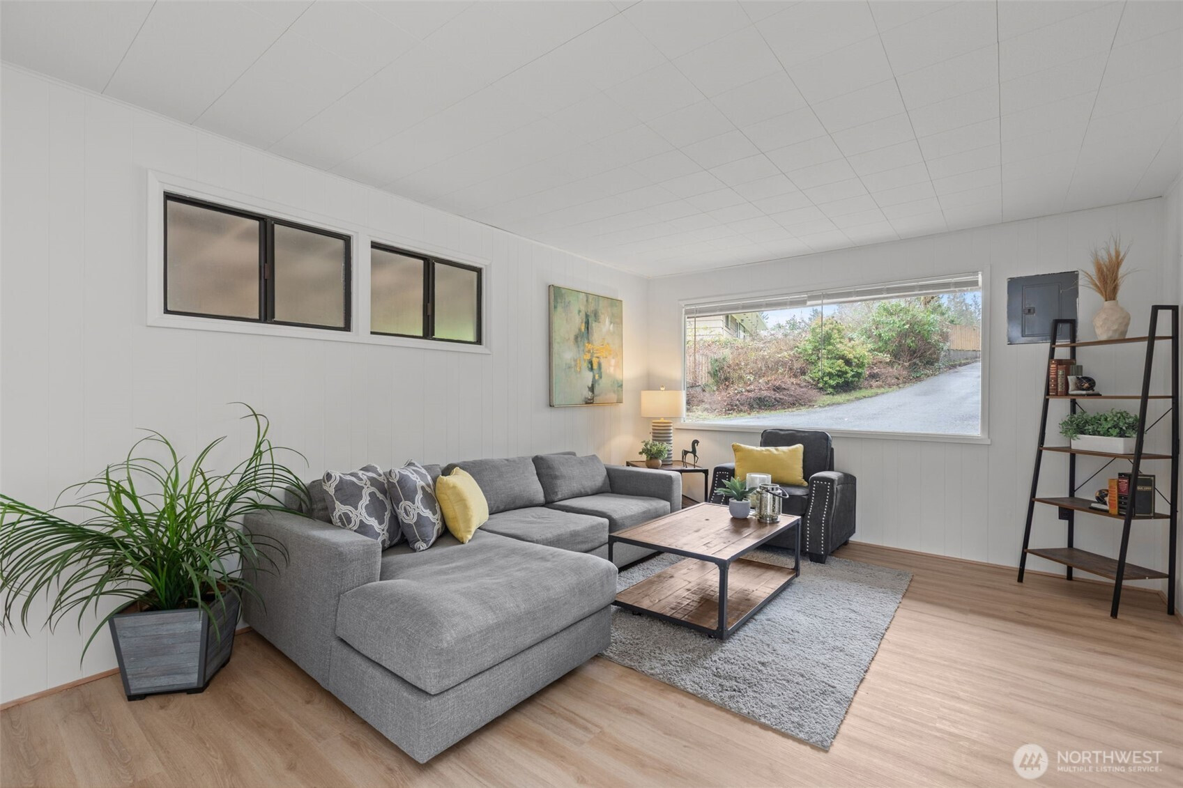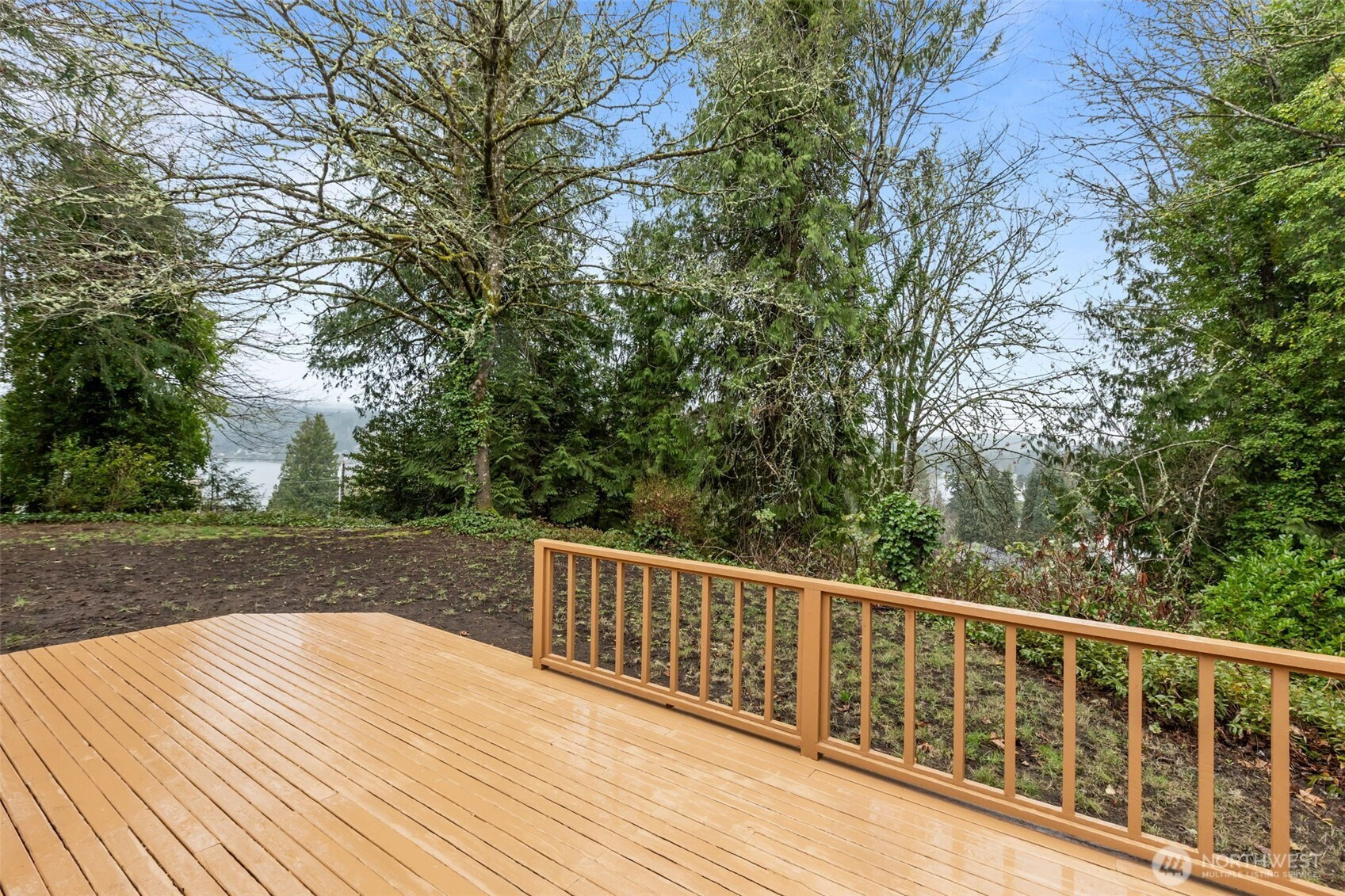 Beautifully updated 3-bedroom home tucked at the end of a quiet cul-de-sac just minutes to town and freeway access. Refinished original hardwoods run throughout the main living areas, complemented by LVP in the spacious bonus living area, offering flexible space for media, office, or play. The kitchen has been fully refreshed with brand new cabinets, countertops, and appliances, paired with all-new interior paint for a crisp, move-in ready feel. Thoughtful layout with convenient 1/2 bath access off the primary suite. Step outside to a large, private backyard with deck and peek-a-boo views of Kitsap Lake. Enjoy the peaceful and established neighborhood with privacy, yet close to everyday amenities.