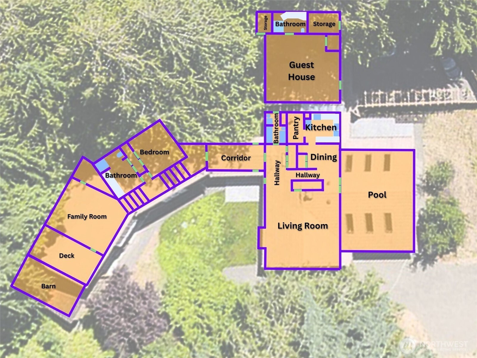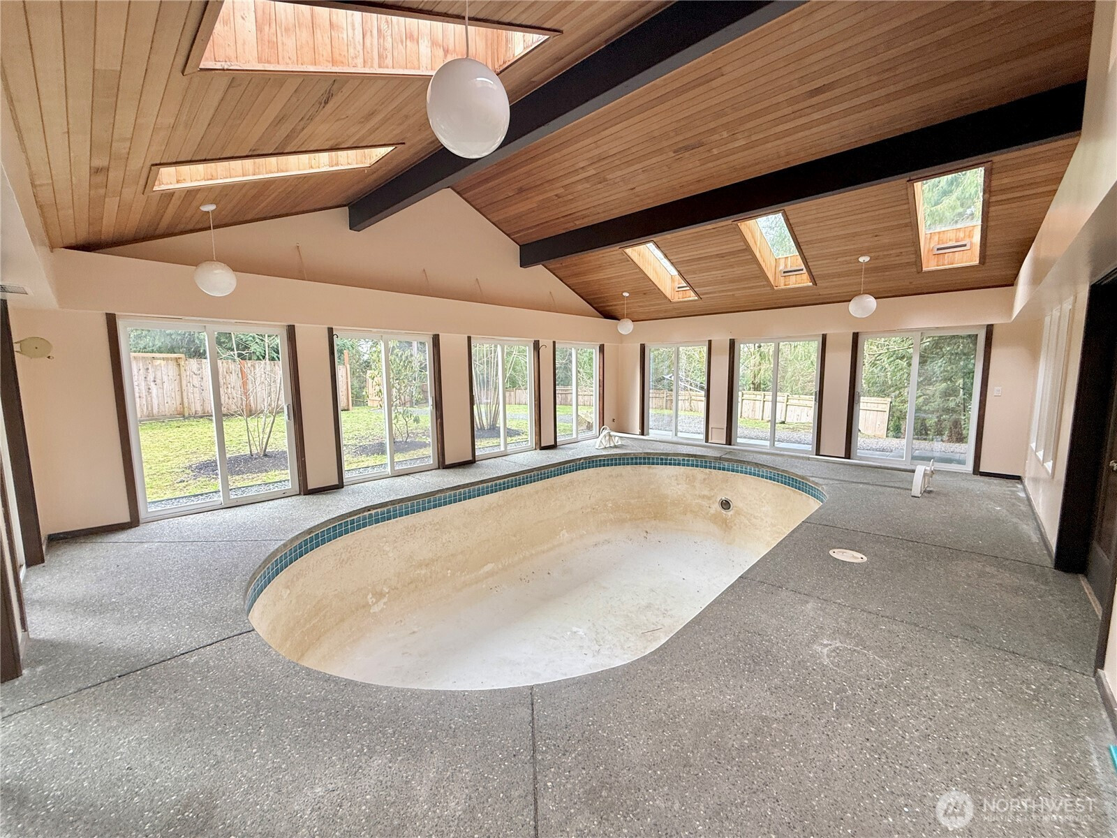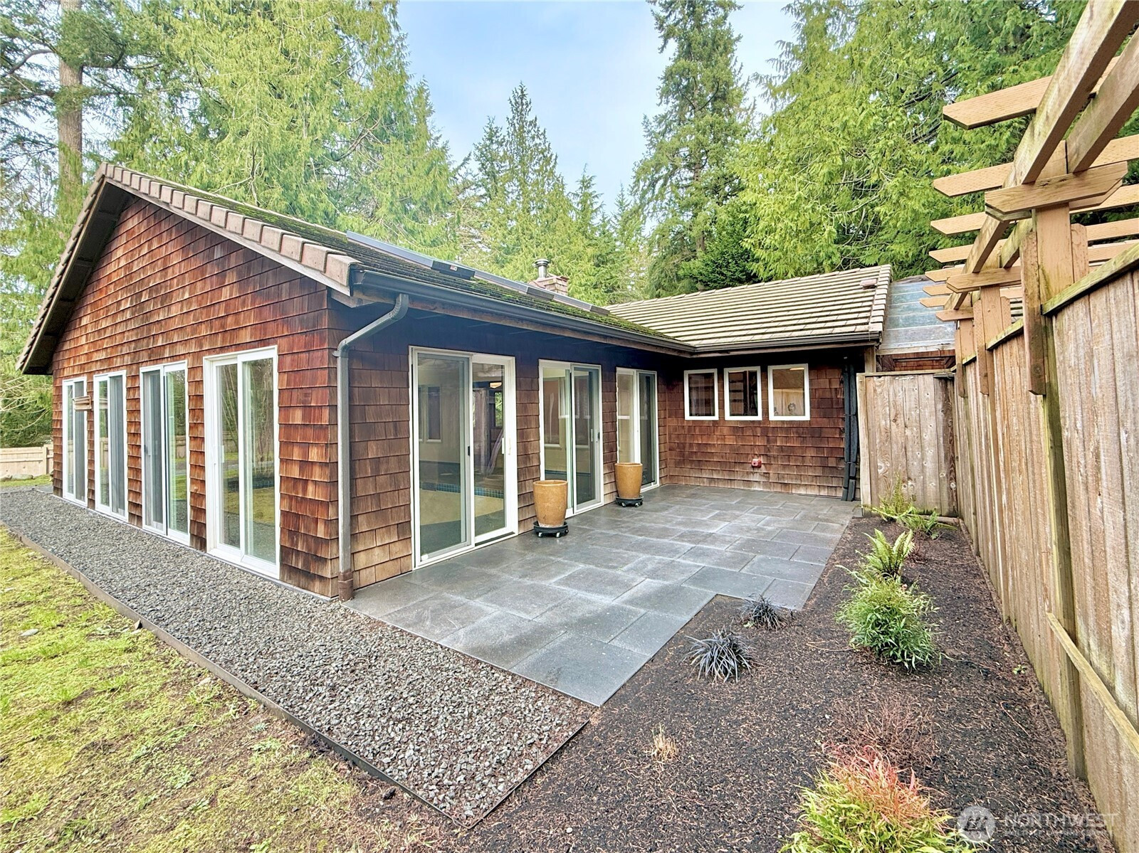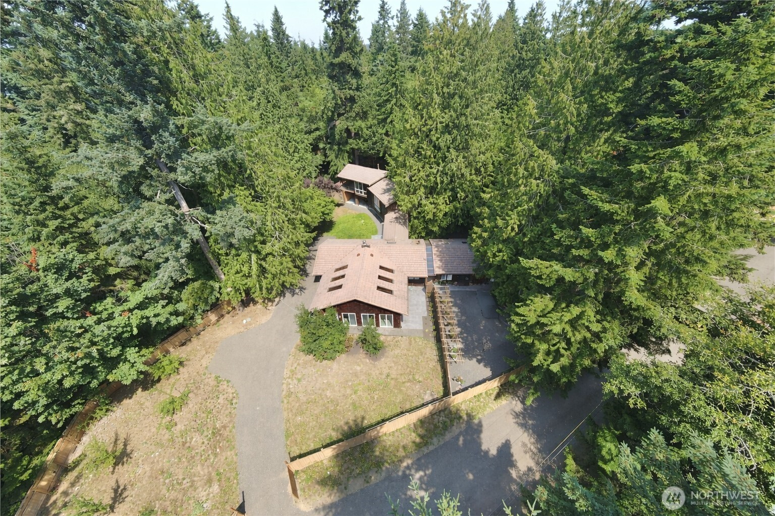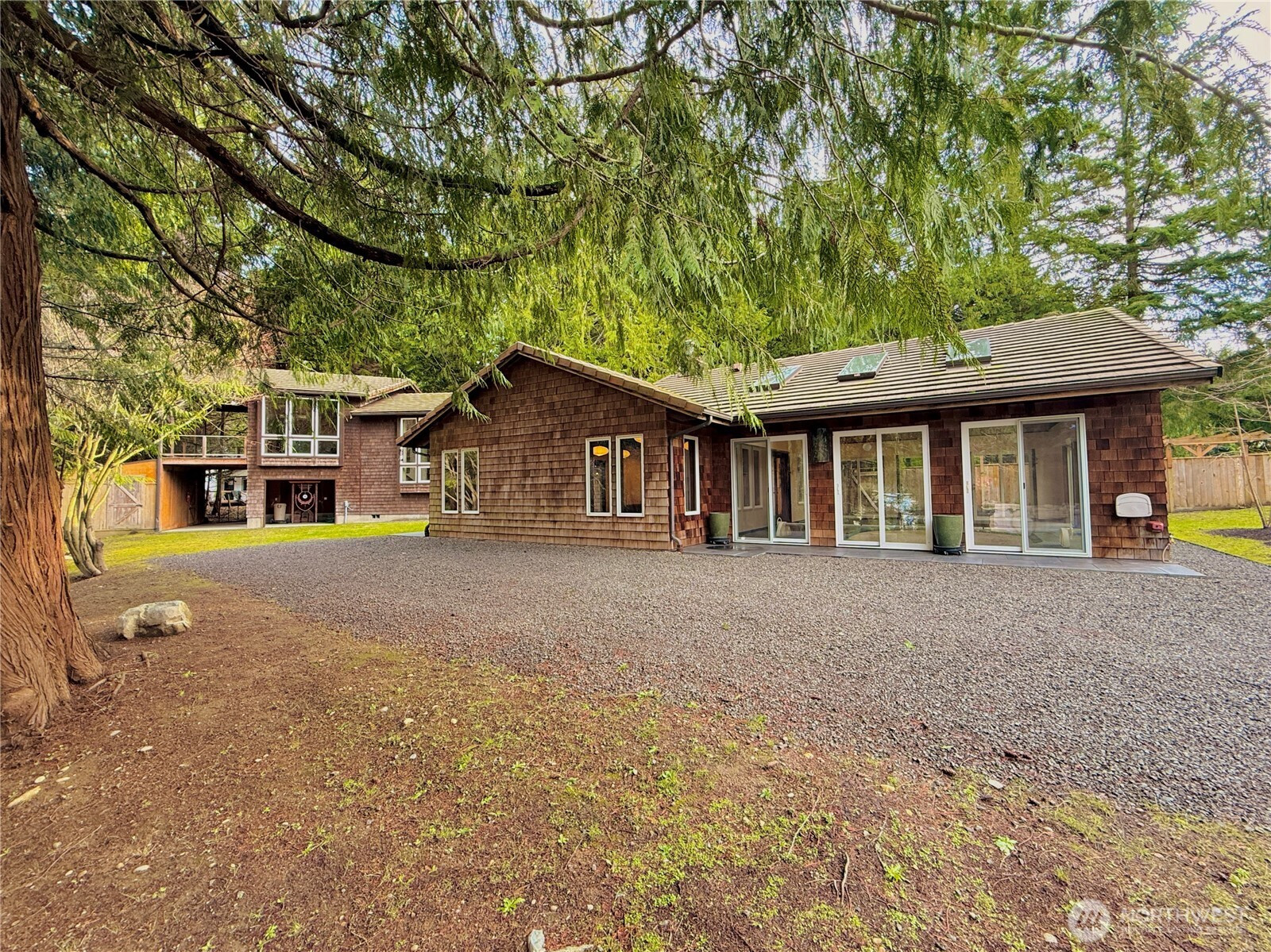 Sprawling custom home on 1.41 acres with indoor pool & guest house. The majority of the home's primary living spaces are located on the main level, complemented by an architecturally modern upper-level addition featuring a bedroom, bath, and family room with kitchenette & private balcony. The expansive covered indoor pool area showcases exposed beams, multiple skylights, and floor-to-ceiling windows and sliding doors, creating a strong indoor–outdoor connection with potential for conversion into additional living area. The large living room features hardwood parquet flooring, beamed ceiling, & fireplace, and the kitchen includes a walk-in pantry. The guest house can function as a self-contained efficiency unit with its own driveway & parking area, or it could serve as a hobby space or workshop. Cedar shake siding, tile roof, vinyl windows, geothermal heat pump, and numerous other custom, unique, and higher-end features. Multiple patio and courtyard spaces provide excellent outdoor living options. There's also a small barn and abundant storage. Very private setting - fenced, gated, & mostly treed with ample yard space. Situated at the end of a private road, approximately 10 minutes from both Kingston & Port Gamble. Truly a one-of-a-kind home.