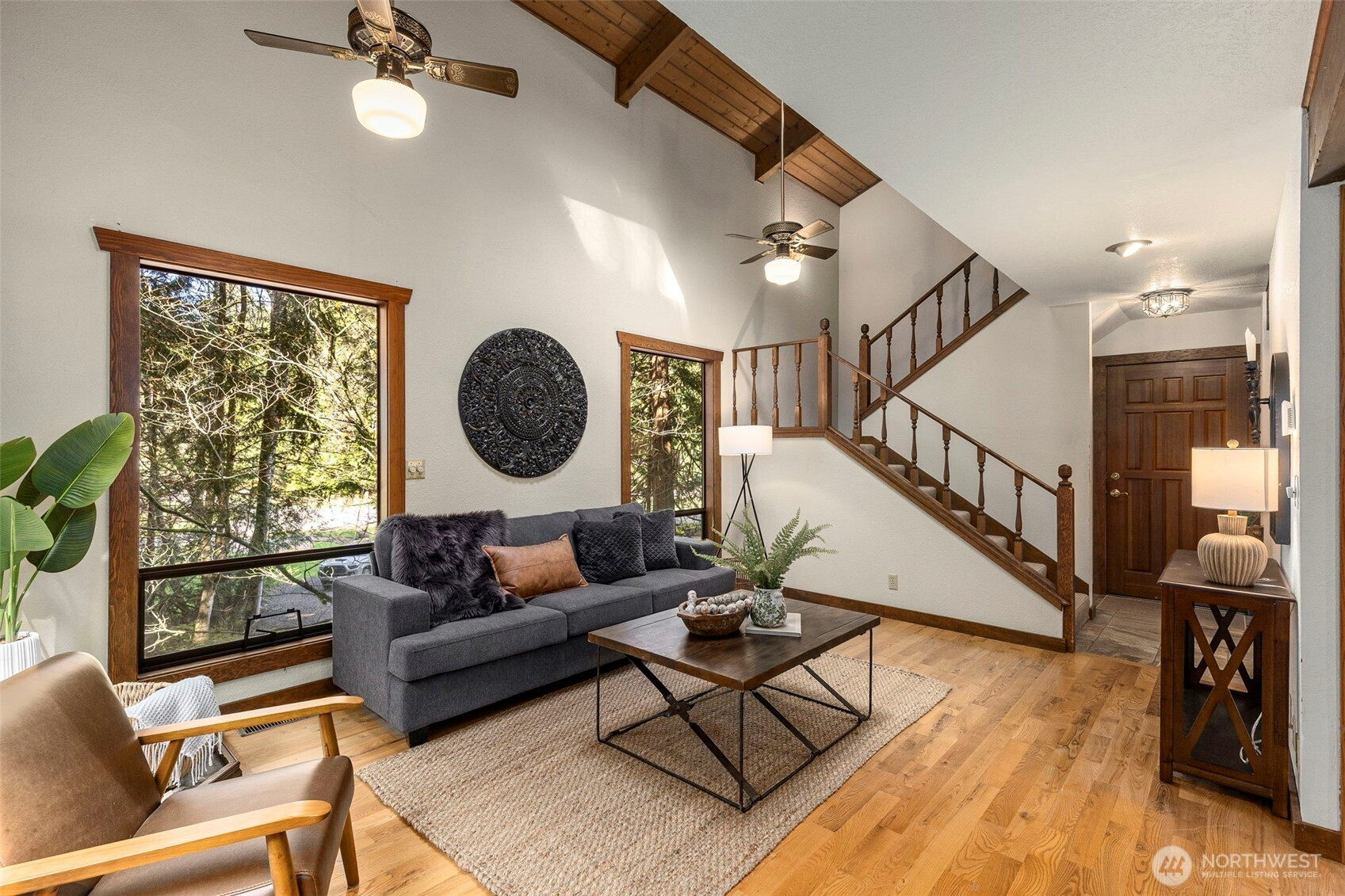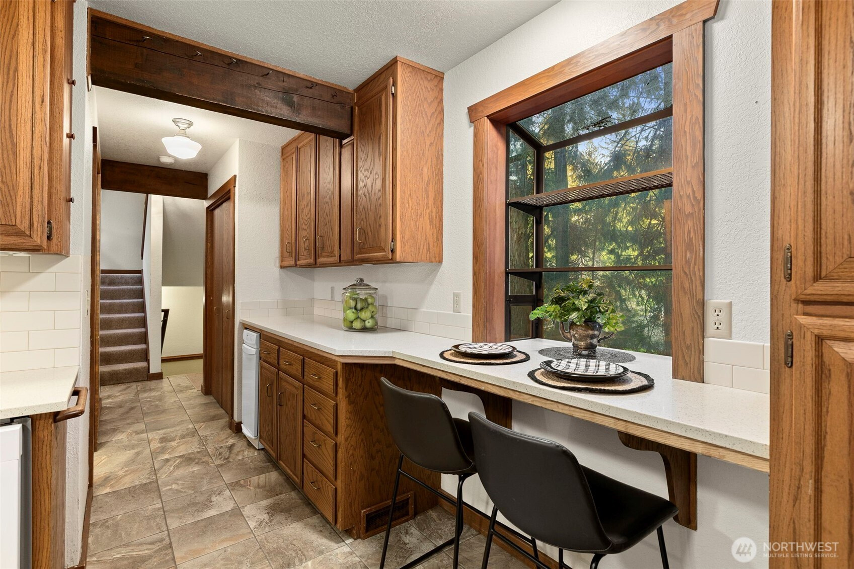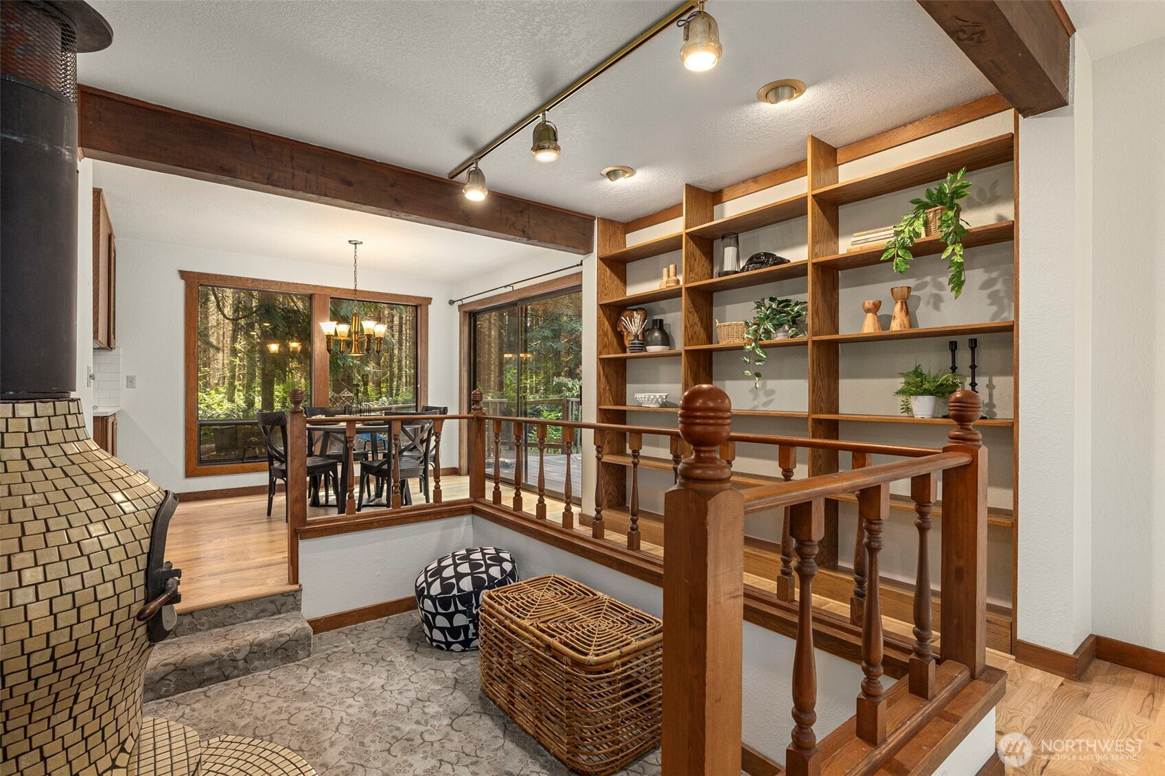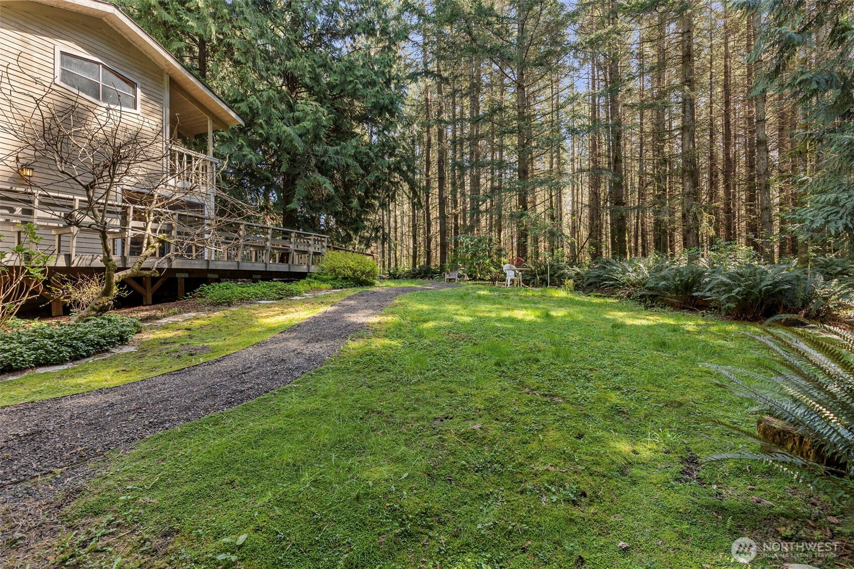 Looking to live in a cherished community along the Hood Canal? This lovingly maintained 3-bedroom, 1.75-bath home spans 2,057 sq ft in the Shore Woods community of Hansville. Built in 1981 and cared for by its original owners, this home showcases natural charm with cedar vaulted ceilings, exposed Doug Fir beams, and original hardwood flooring. The kitchen has been updated with quartz counters, subway tile backsplash, and ceramic tile flooring. A sunken portion of the living room features a Meridian Ceramic tile wood stove, creating a cozy and artsy space to enjoy conversation or get lost in a novel. Sliding doors open to the back deck and a peaceful wooded backdrop. Furnace, Heat Pump, and 30-year roof, just two years old. Enjoy the Hansville Greenway hiking trails in the area, trailheads are very close. Shore Woods amenities include a community pool, sports courts, a community center, and beach access, with impressive views of Hood Canal and the Olympic Mountains. The vacant lot next door is being sold as well, by the same owners. Purchase both to preserve more space, or build it out to fit your lifestyle. This Hansville home is a true gem.